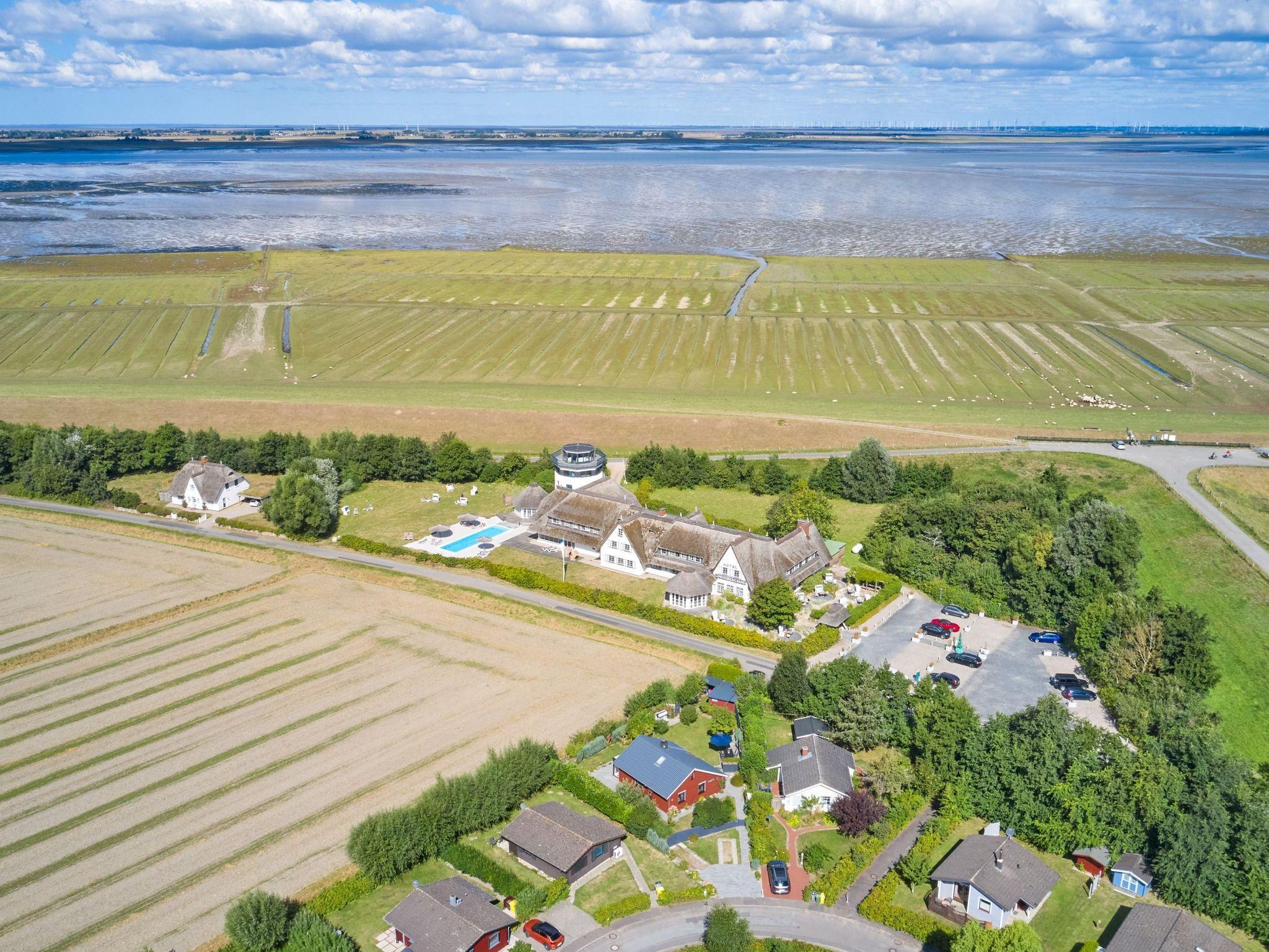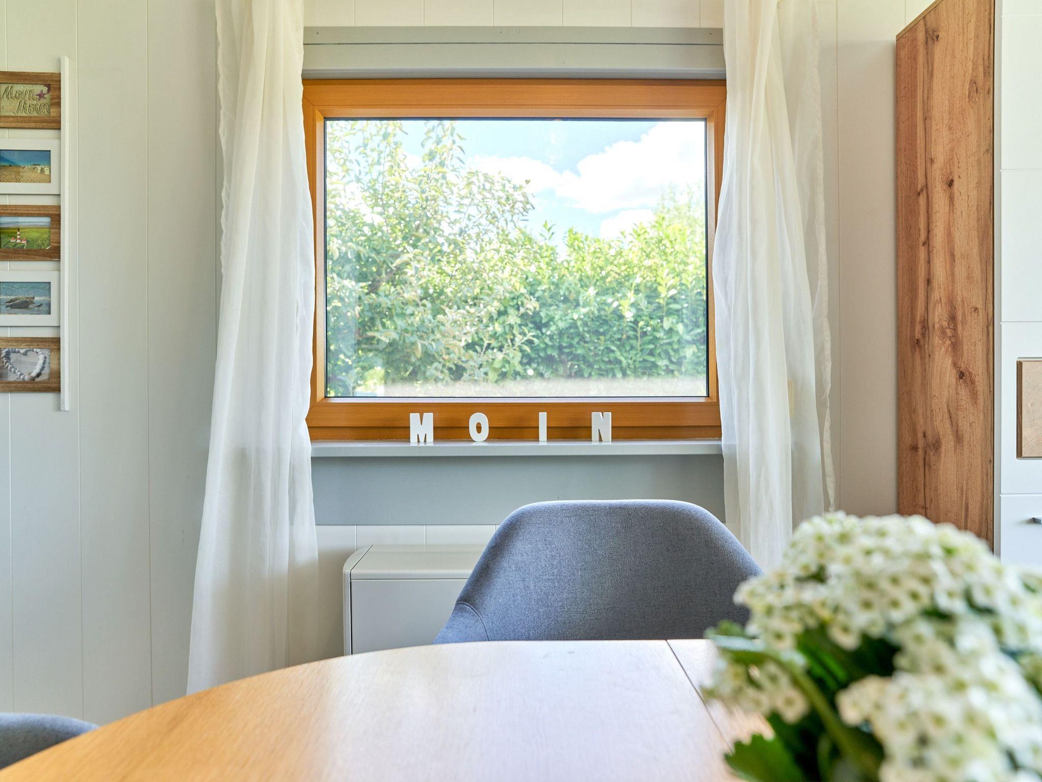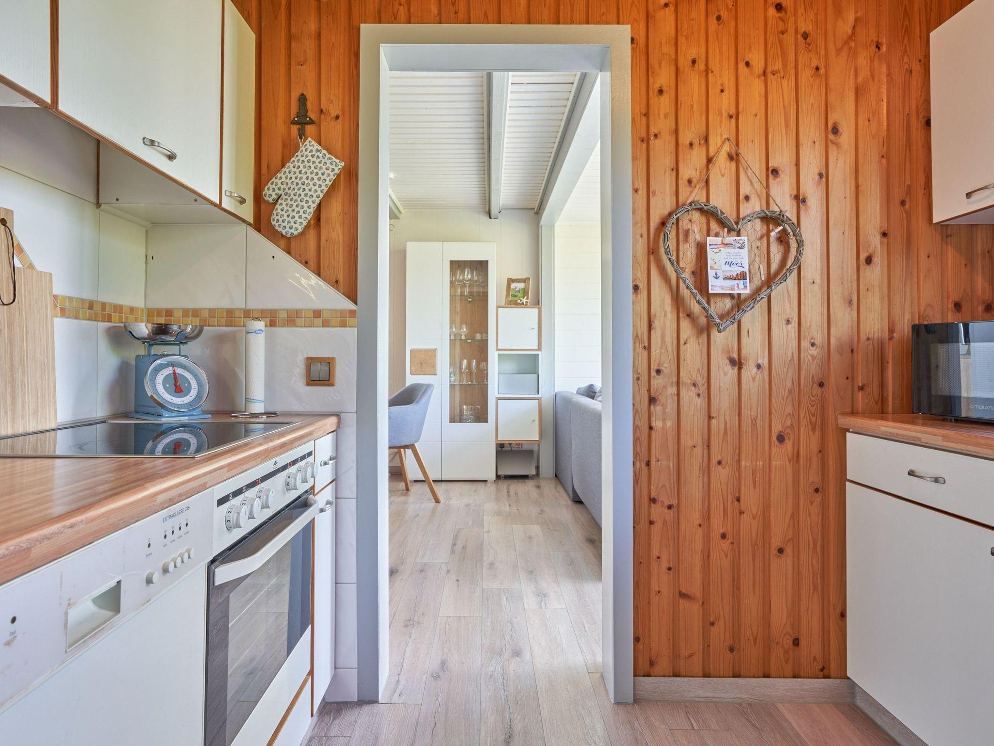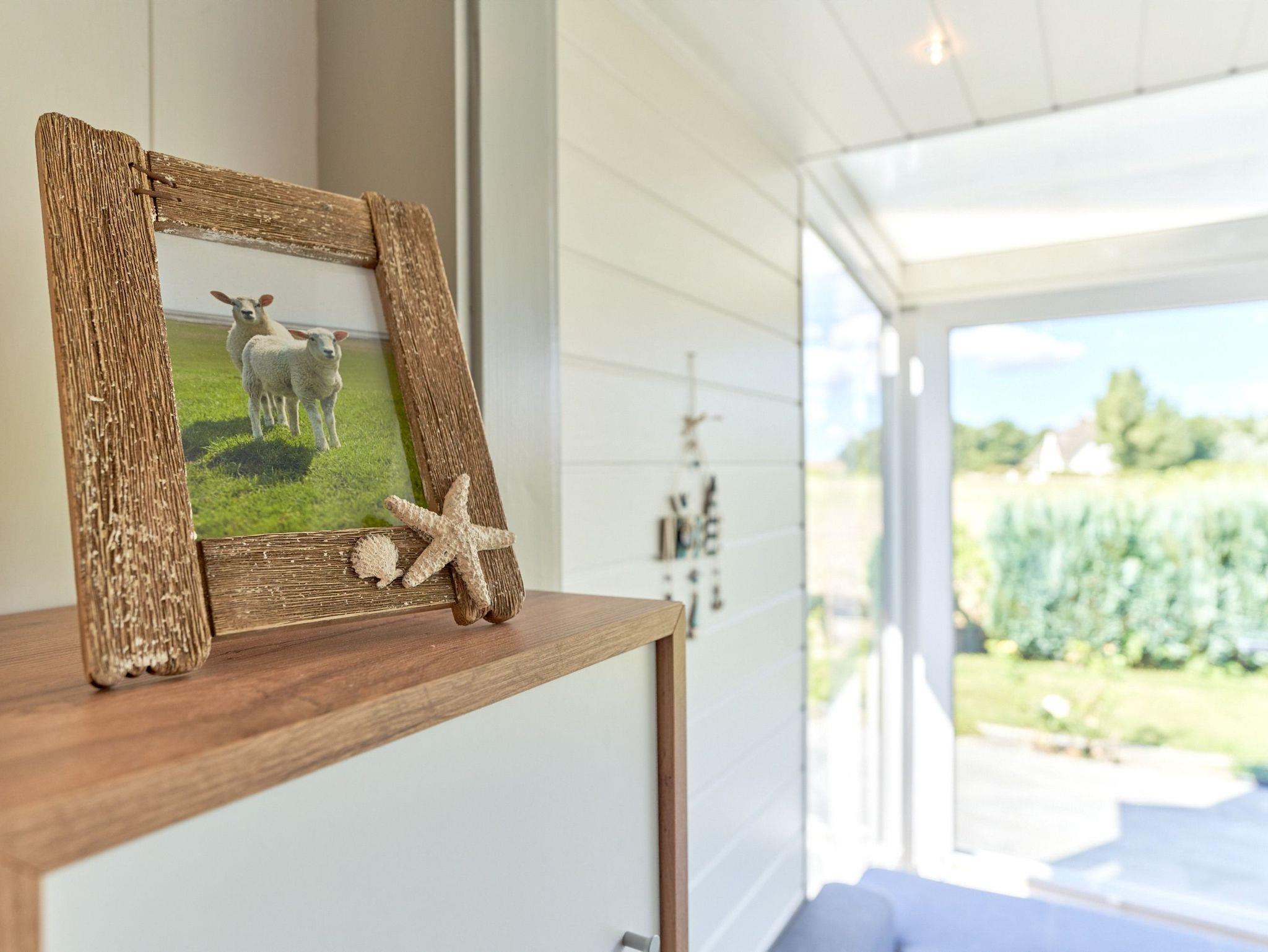 das Ferienhaus mit gemütlichem Wohn- /Esszimmer bietet einen herrlichen Deichblick direkt vom großzügigen Sofa und einen Kaminofen für kuschelige Stunden.