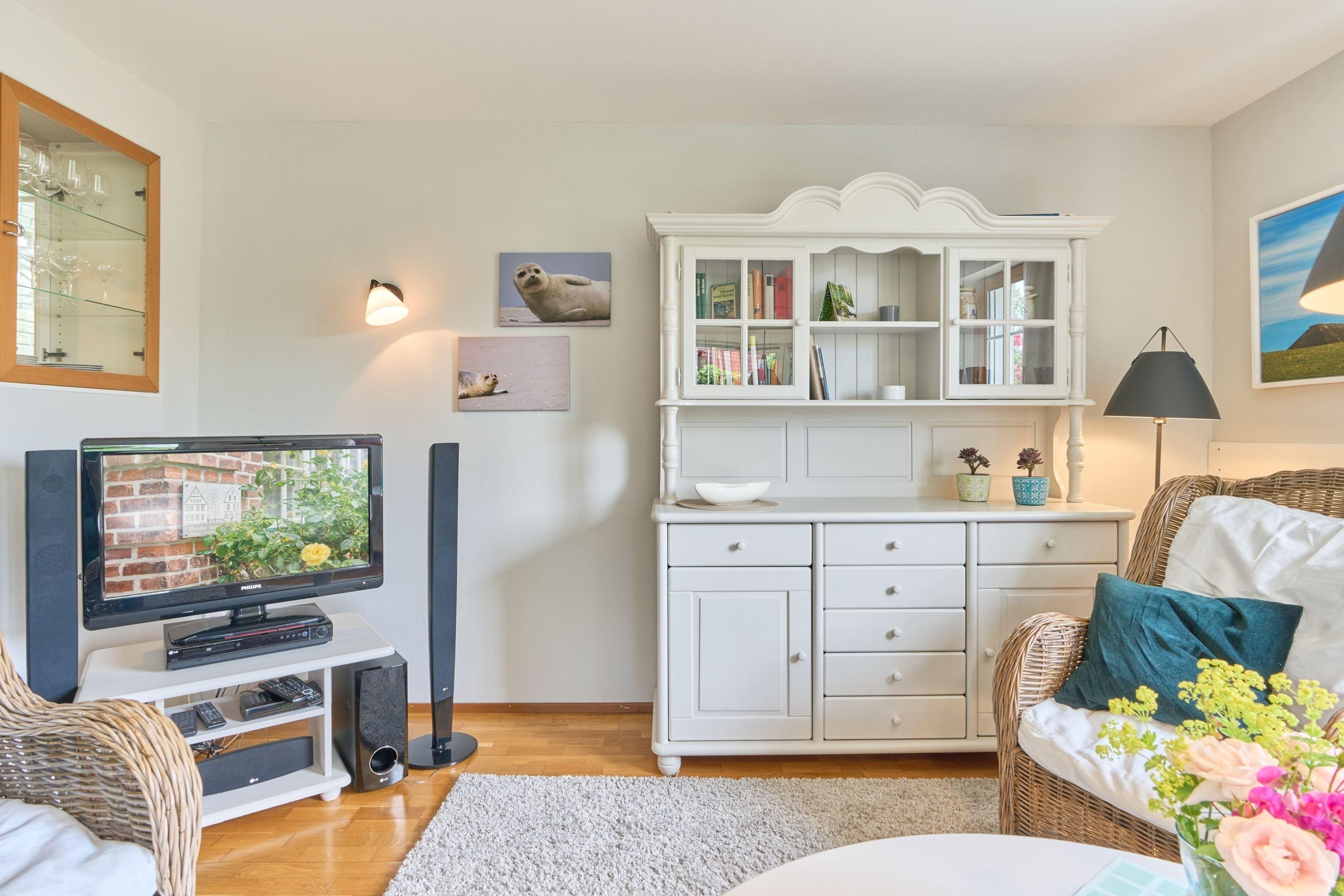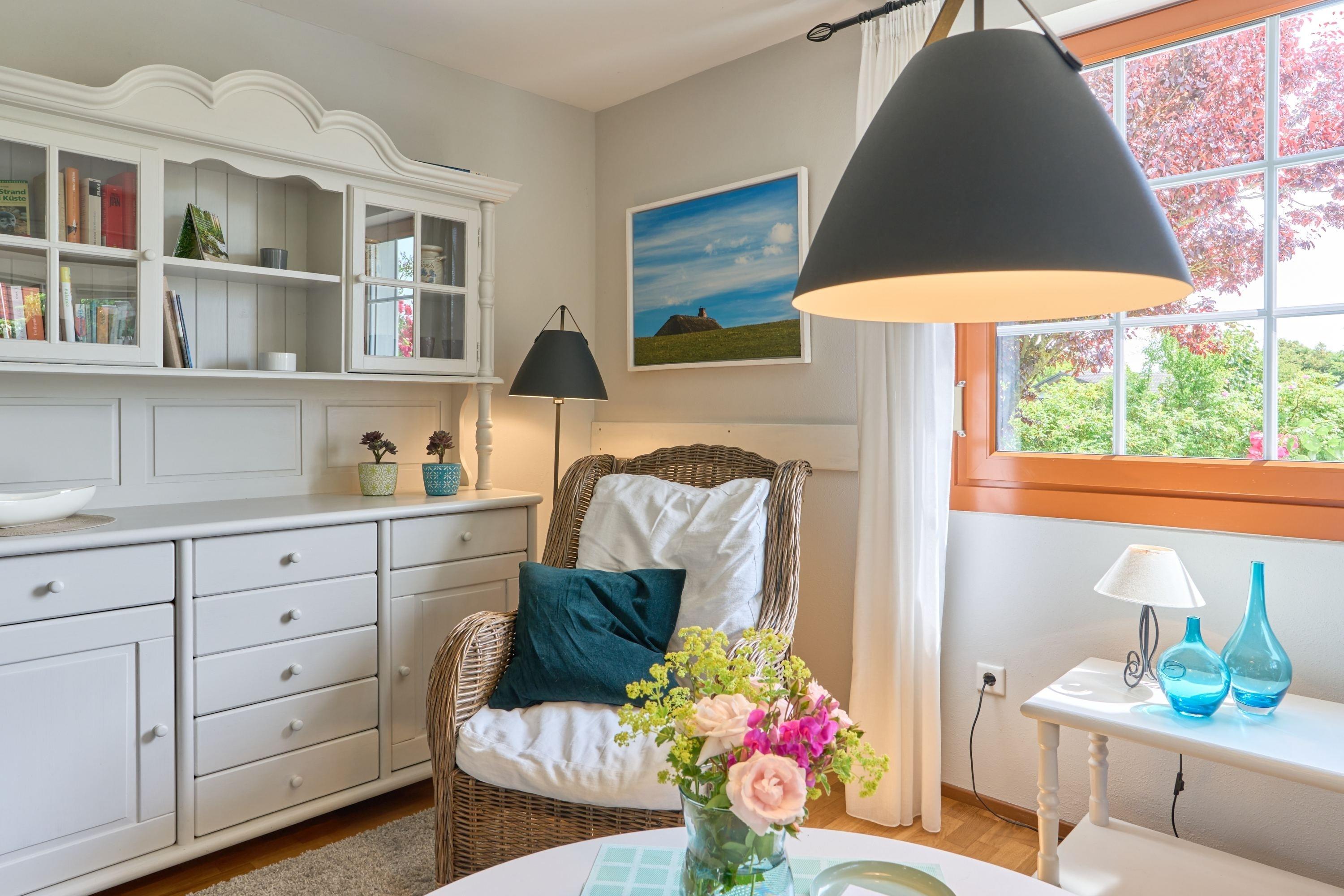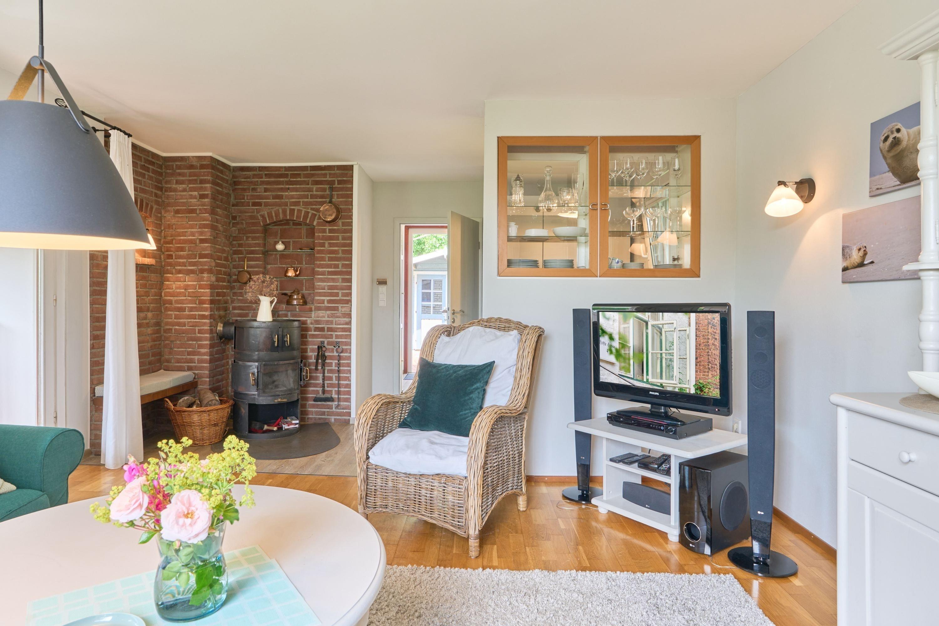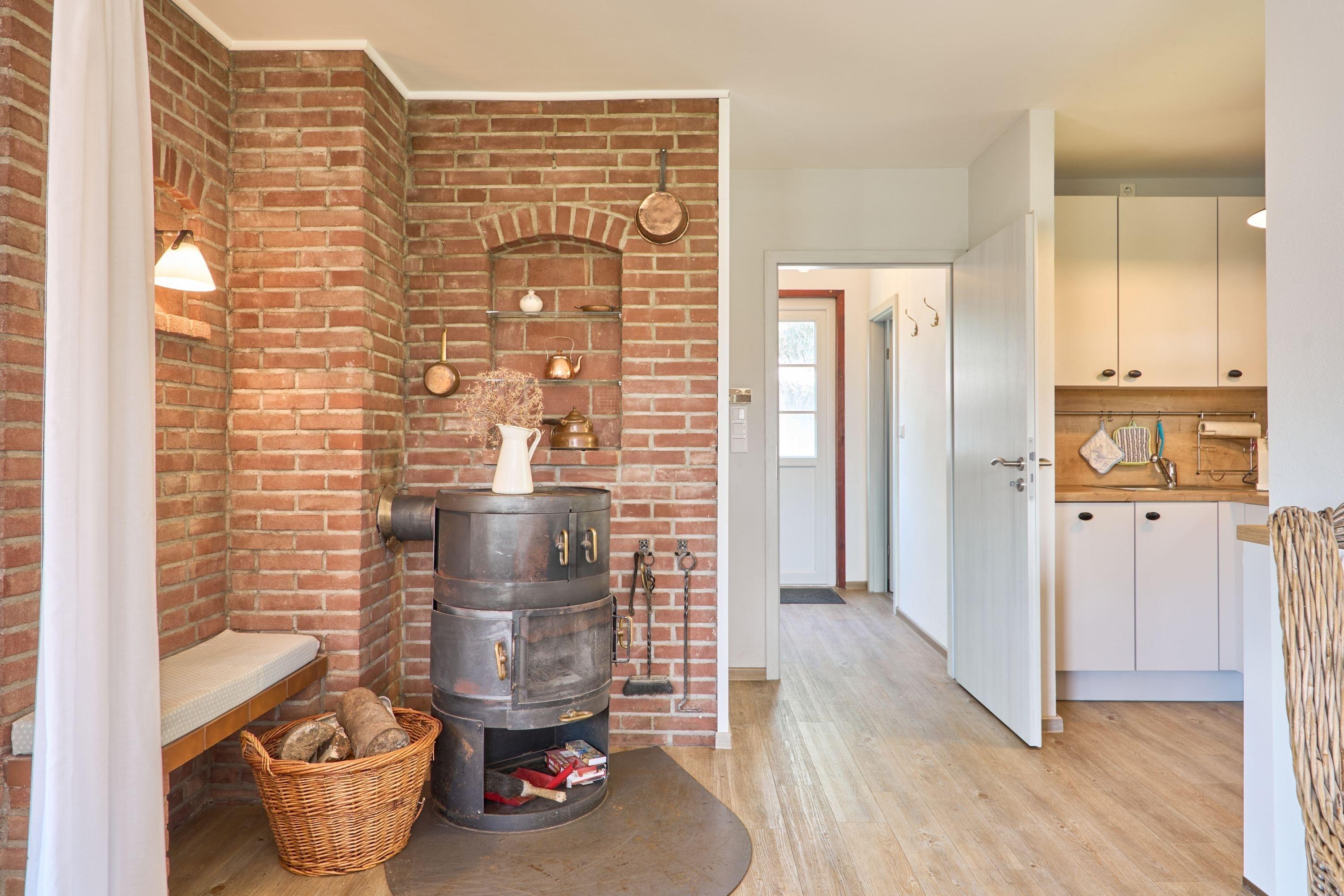 der Wind draußen einmal kräftiger weht oder die Nordsee stürmisch ist, lädt die kuschelige Ofenecke mit dänischem Kaminofen zu