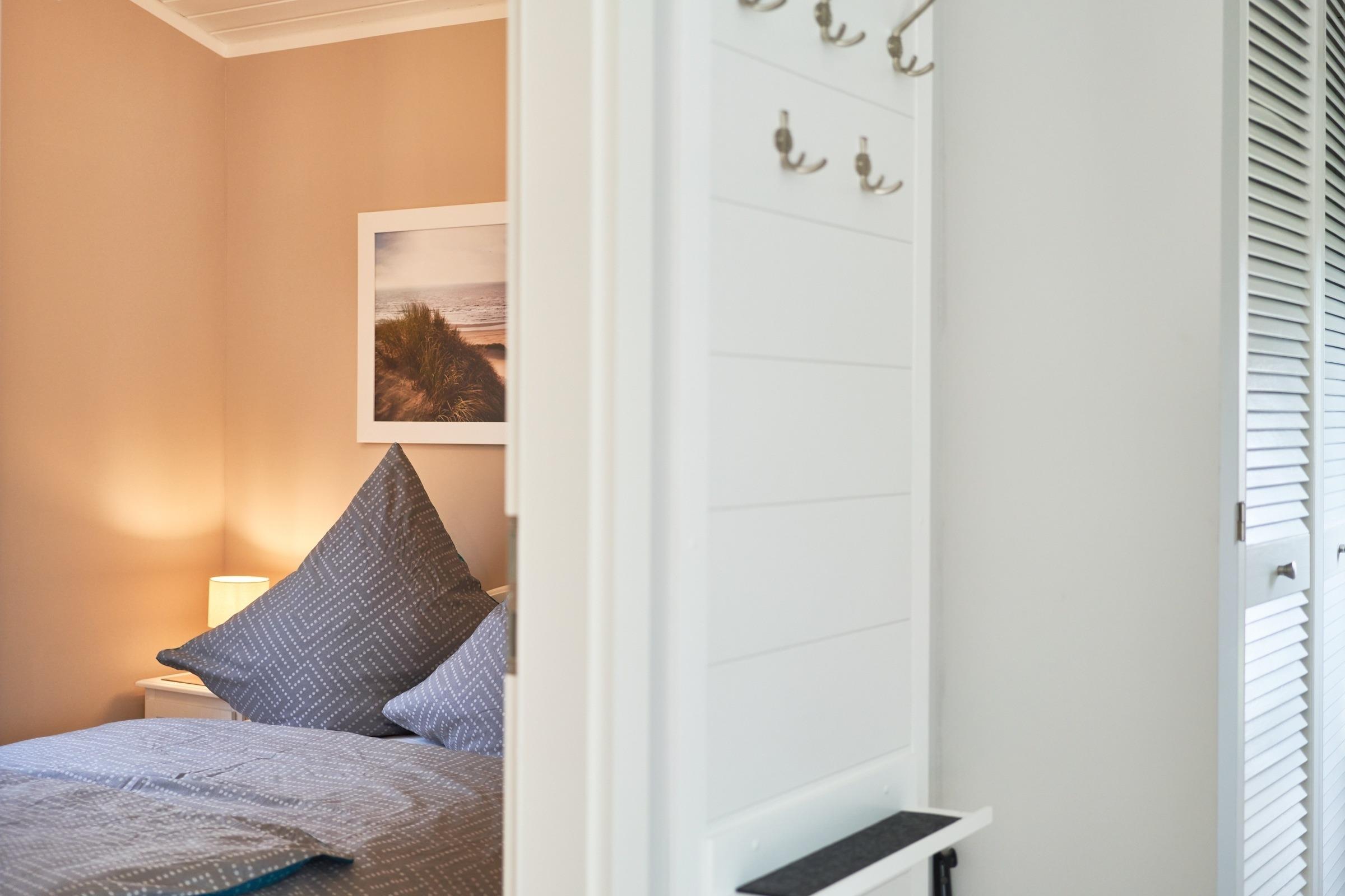 einem Bett (1,40 x 2,00 m) ausgestattet. Beide Räume verfügen über Nachtschränkchen, Nachtleuchten und Einbauschränke