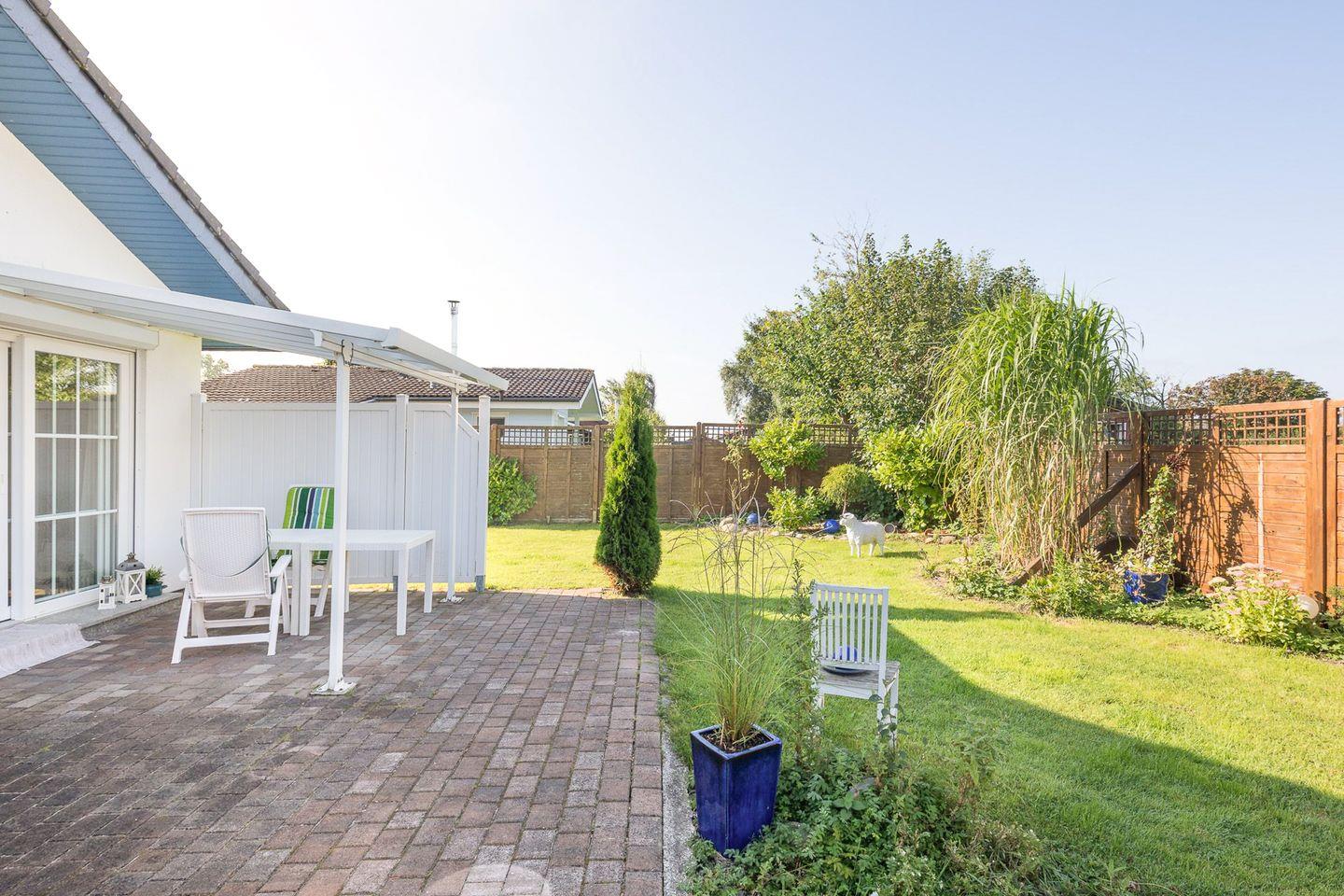 Auf der überdachten Terrasse mit den Gartenmöbeln und den Sonnenliegen können Sie den Tag gemütlich ausklingen lassen. In dem Anbau können Sie Ihre mitgebrachten Fahrräder abstellen.