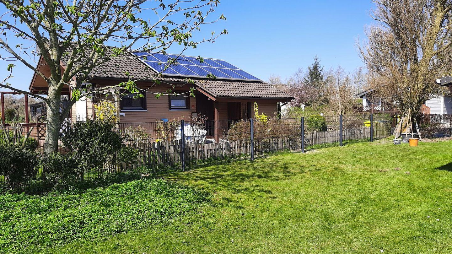 Das Ferienhaus hat eine Fläche von ca. 58m² und befindet sich auf einem 600m² großem Grundstück, das von einem Zaun und Toren umschlossen ist.