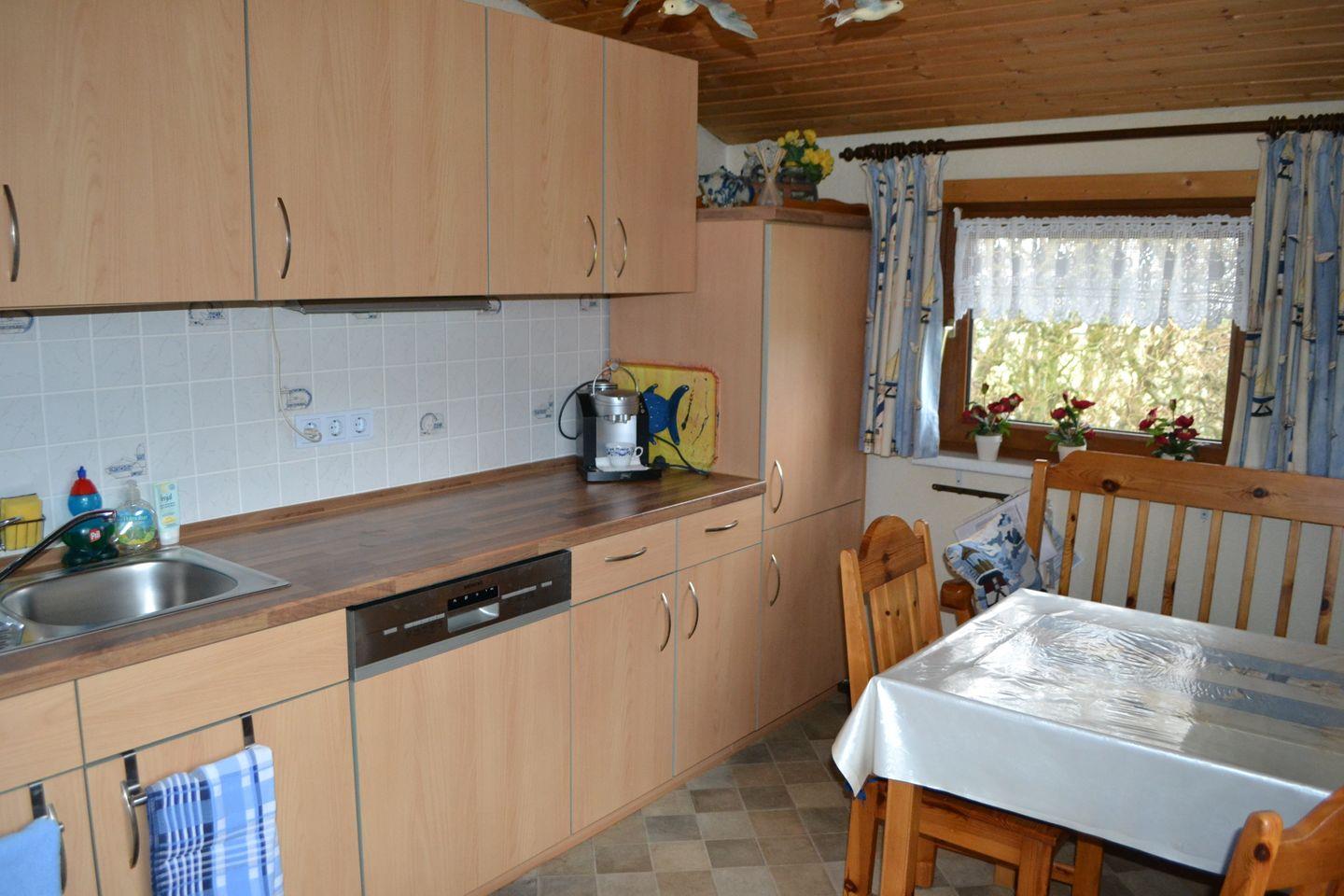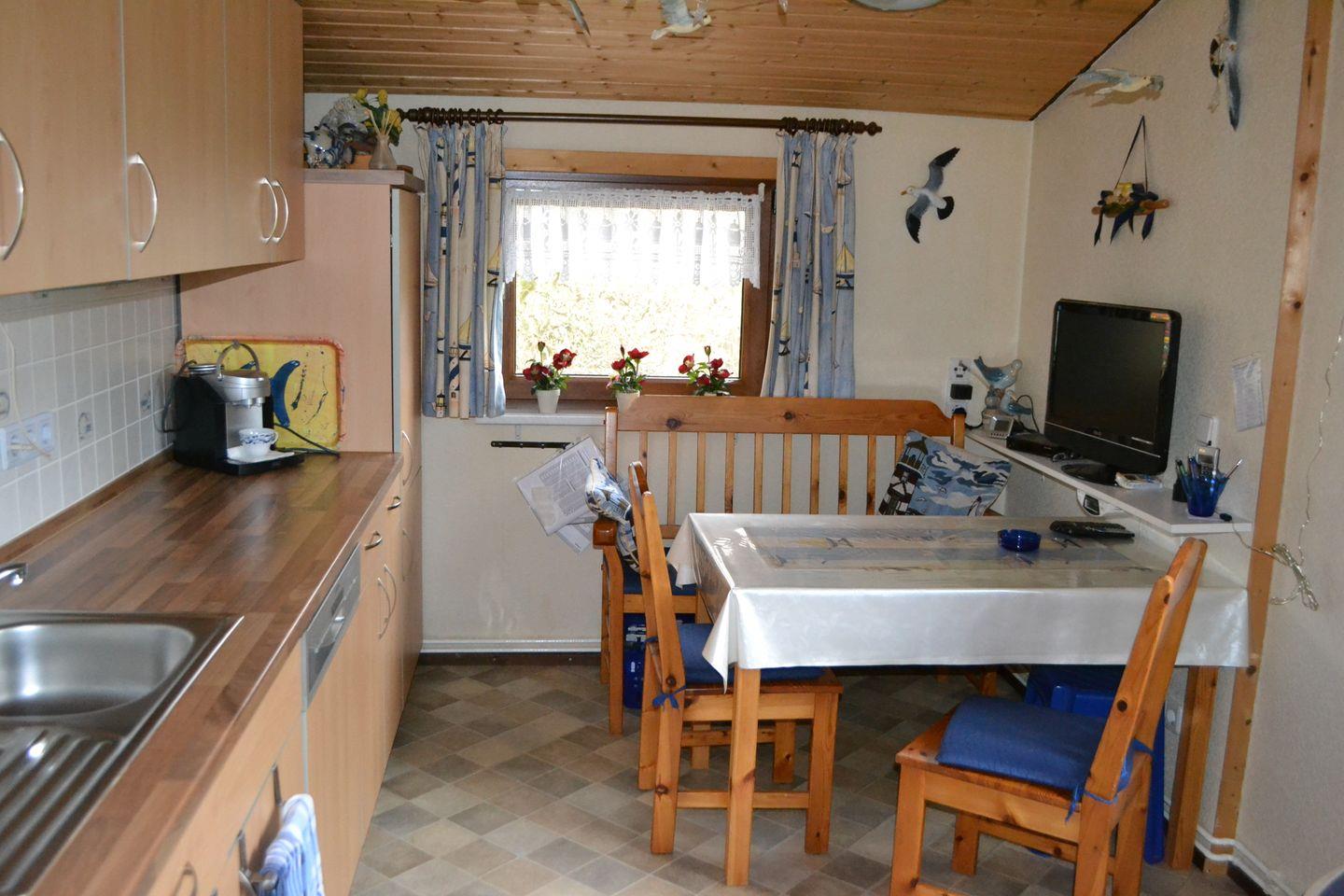 Küche mit Essbereich, SAT-TV, Küchenzeile mit Geschirrspülmaschine, Kaffeemaschine, Pad-Maschine, Kühl-Gefrierschrank, TV 24"