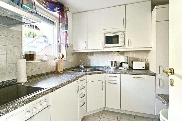 Die 2-Zimmer-Wohnung ist in einer ruhigen Umgebung gelegen und verfügt über eine helle und moderne Einrichtung. Das Wohnzimmer ist lichtdurchflutet und verfügt über eine ausziehbare Wohnlandschaft, die zusätzliche Schlafmöglichkeiten bietet. Im Wohnzimmer finden Sie einen Flachbild-Fernseher sowie einen Essplatz für vier Personen. Vom Wohnzimmer aus gelangen Sie direkt auf die großzügige Terrasse, die sich ideal für entspannte Stunden im Freien eignet. Die Küche ist vollständig ausgestattet mit Herd, Spülmaschine, Kaffeemaschine, Toaster, Wasserkocher und allen notwendigen Kochutensilien.