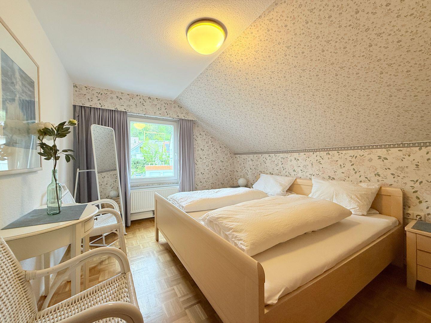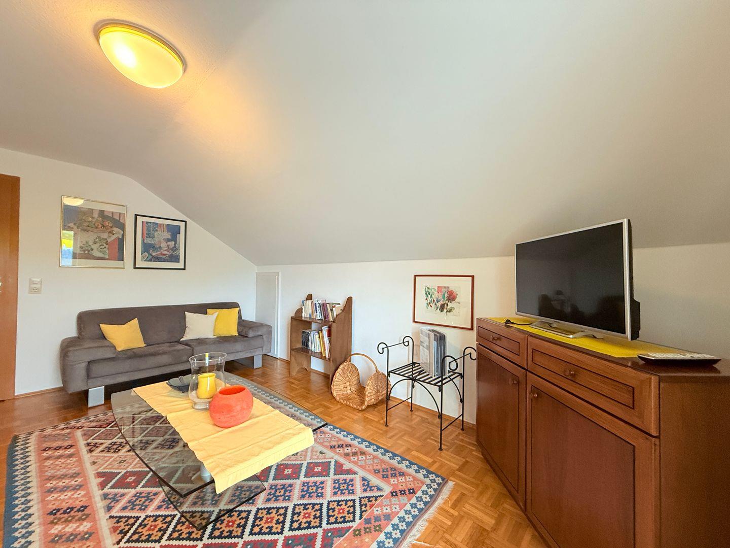 Das BELLEVUE verfügt über zwei Schlafzimmer, die Ihnen Ruhe und Erholung nach einem erlebnisreichen Tag garantieren. Ein separates Gäste-WC ist ebenfalls vorhanden, was den Aufenthalt für Ihre Familie oder Freunde besonders komfortabel macht. Das Wohnzimmer präsentiert sich in einer gemütlichen Parkettoptik, ausgestattet mit einer Sofaecke und einem Fernseher.