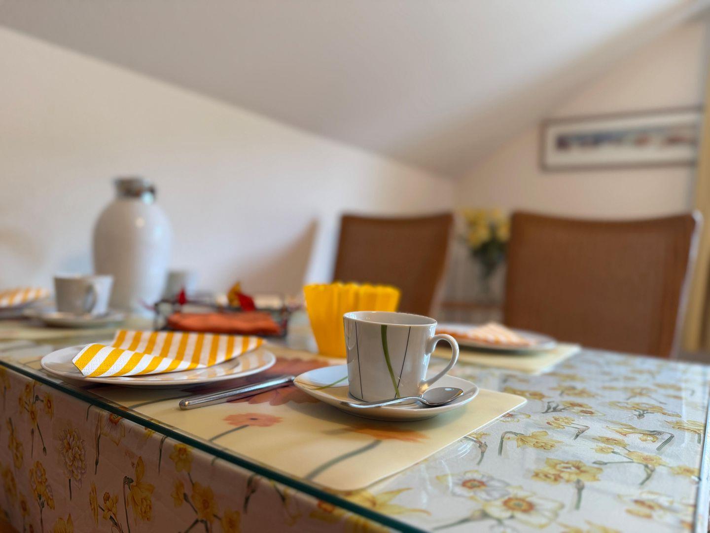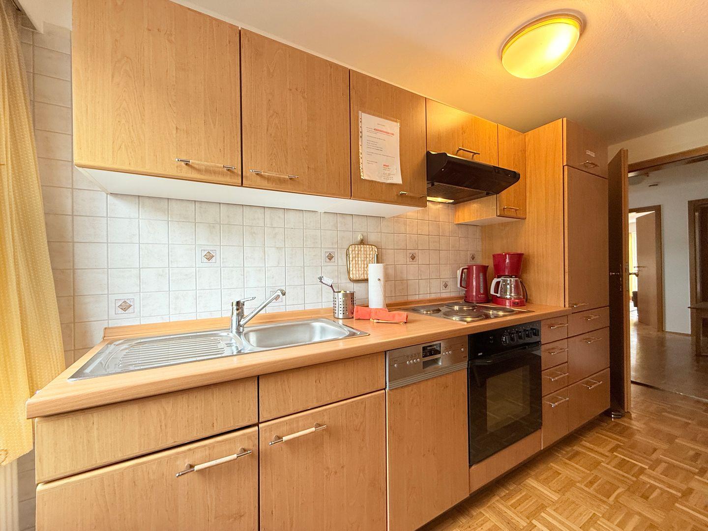 Die Küche ist geschlossen und voll ausgestattet, mit modernen Geräten wie einem Herd, einer Spülmaschine, einer Mikrowelle sowie einem Kühlschrank – hier können Sie kulinarische Köstlichkeiten zubereiten und beim gemeinsamen Essen Zeit mit Ihren Liebsten verbringen. Freuen Sie sich auch auf die Annehmlichkeiten, wie WLAN und eine Waschmaschine, die Ihren Aufenthalt angenehm gestalten.
