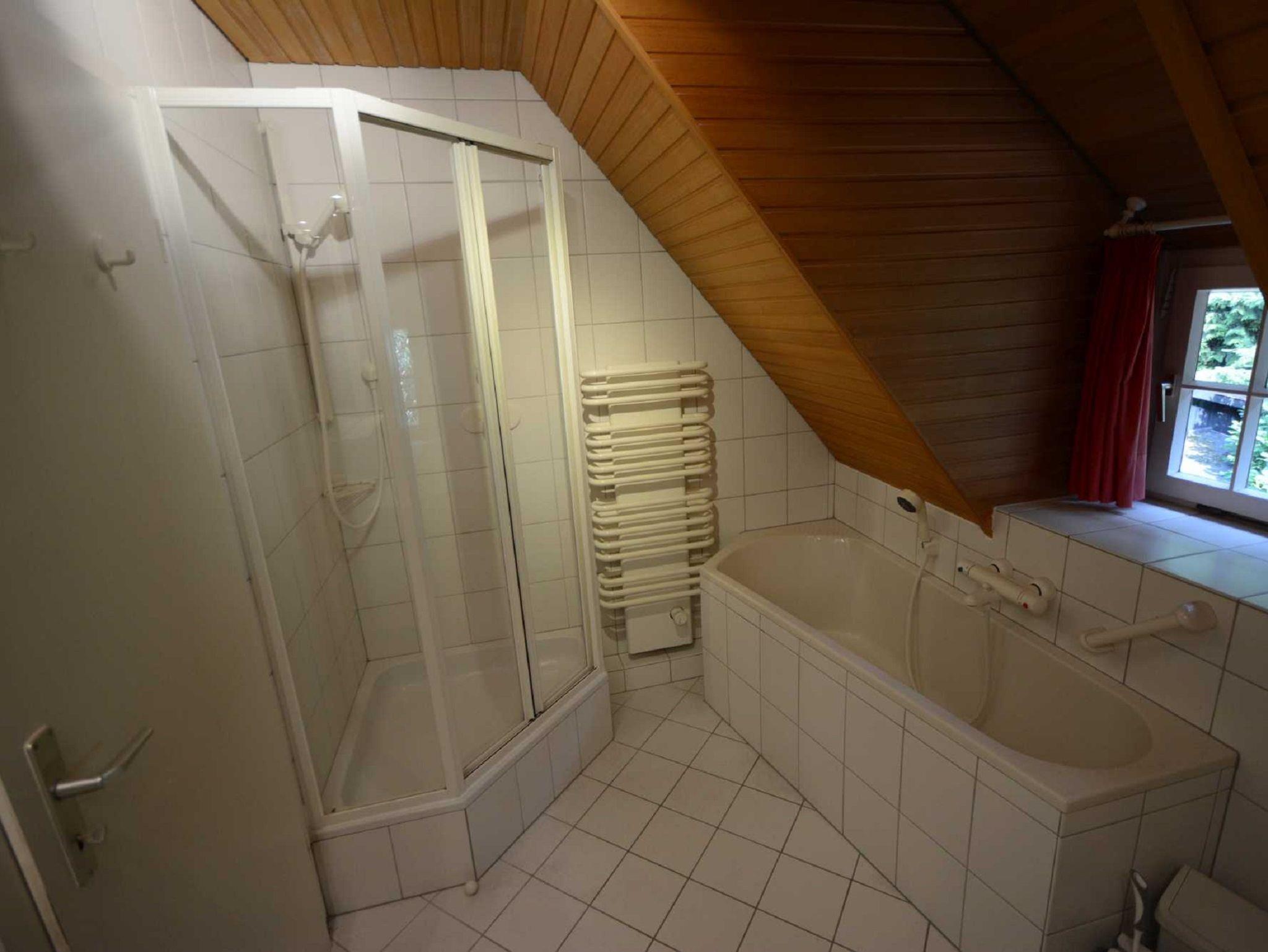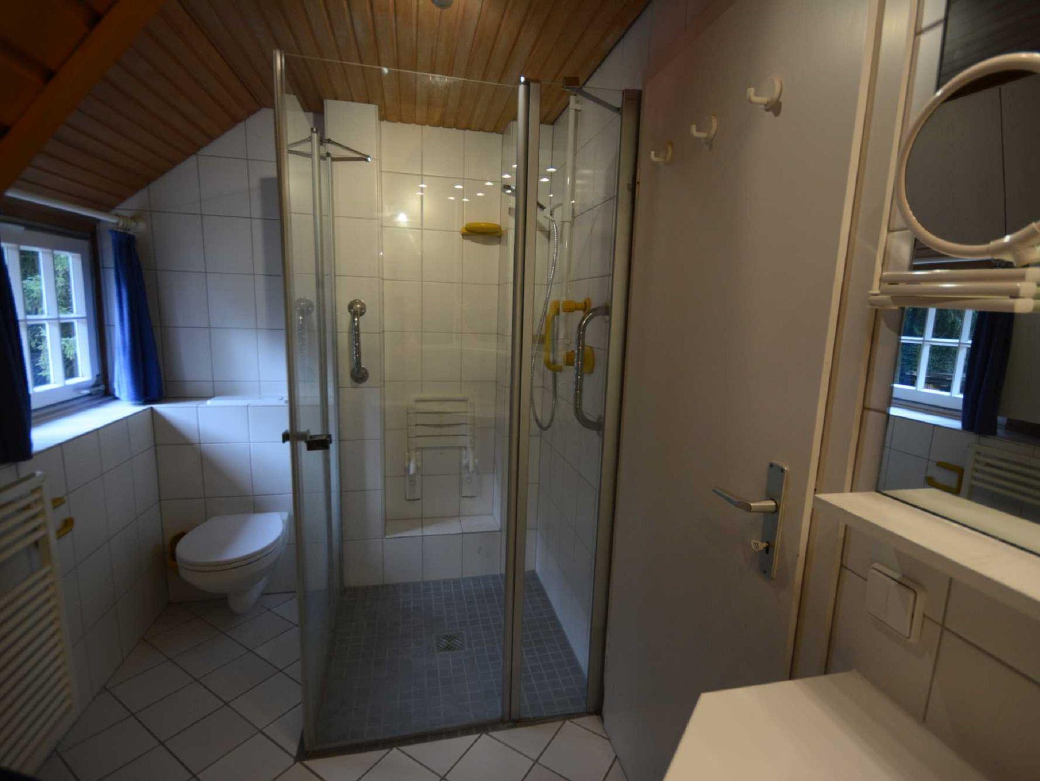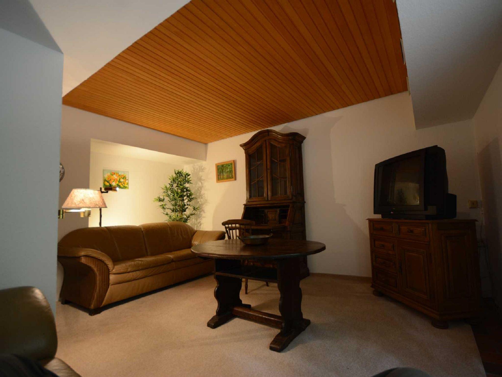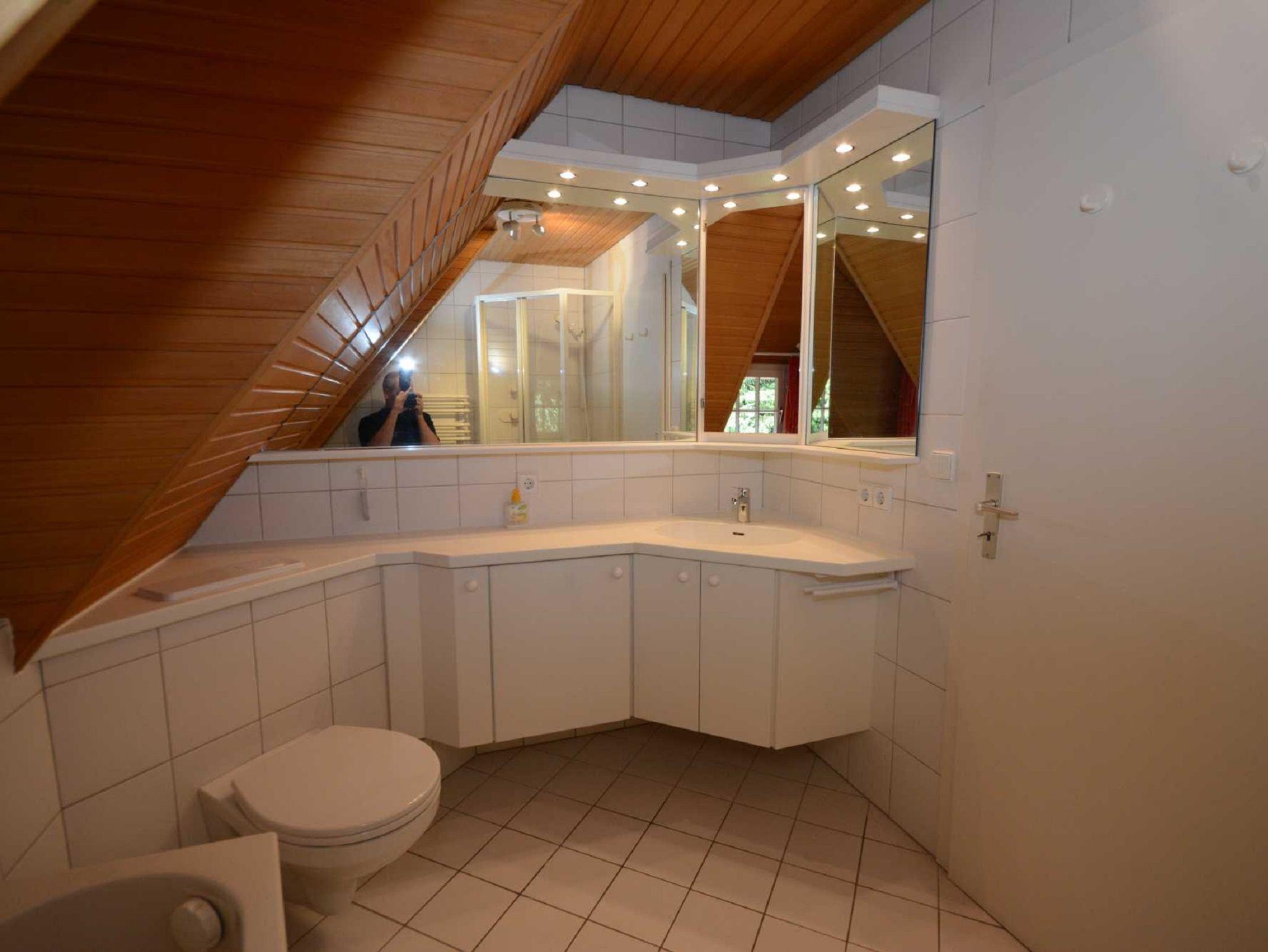 Im Erdgeschoss befindet sich das Wohnzimmer mit offenem Kamin, gemütlicher Couchgarnitur, Billiardtisch, Kicker, Schreibecke und einem Esstisch für 12 Personen. Zusätzlich ein Fernseh-bzw.Lesezimmer, ein extra WC, die Küche und der Hauswirtschaftsraum mit Waschmaschine und Trockner. Die Küche ist ausgestattet mit Backofen, Mikrowelle, Ceran-Kochfeld, Geschirrspüler und Kühlschrank. Im Obergeschoss sind vier Schlafzimmer und 2 Badezimmer.