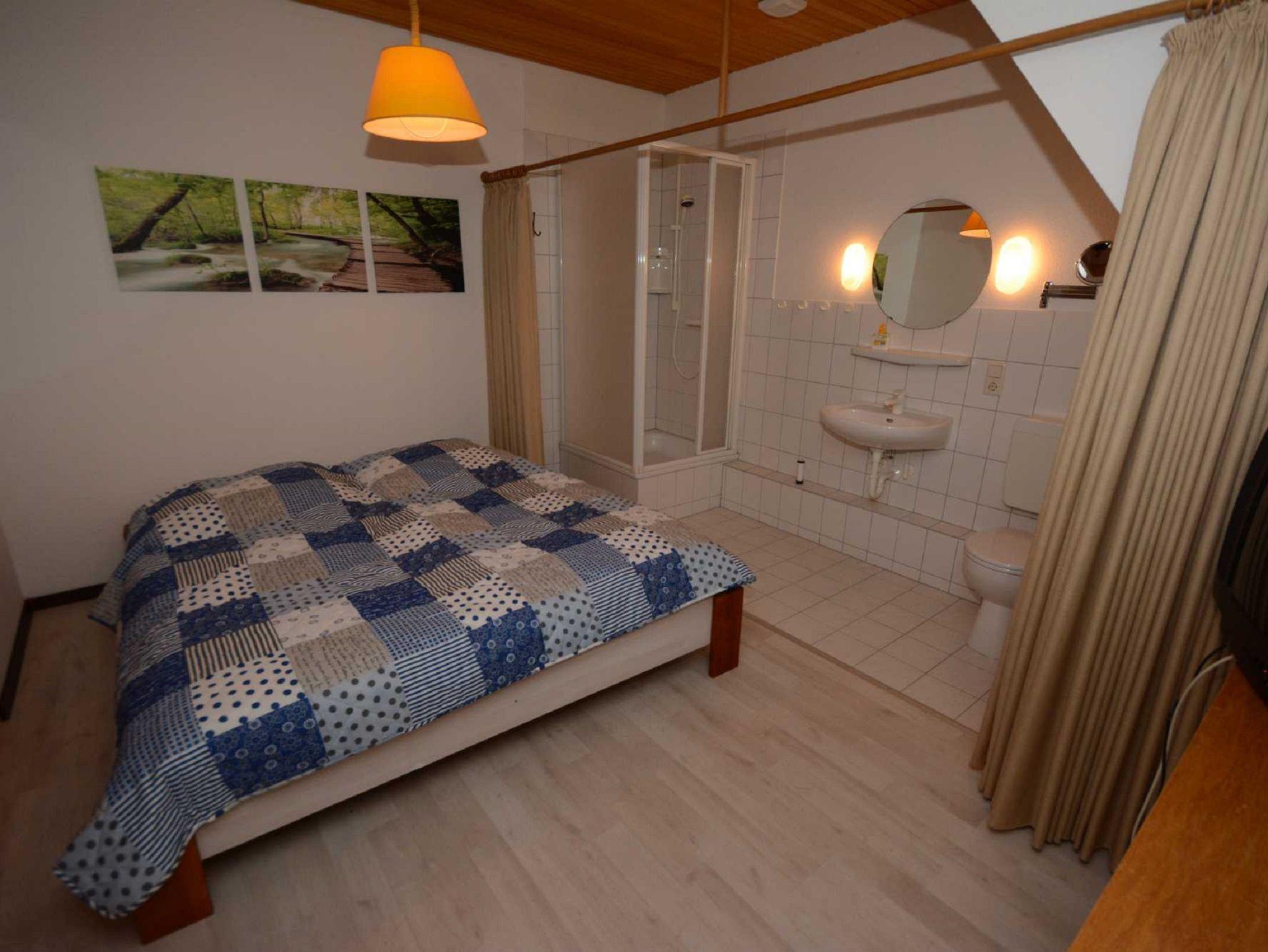 Schlafzimmer 4: ein Doppelbett und ein eingebautes Bett, mit Waschgelegenheit