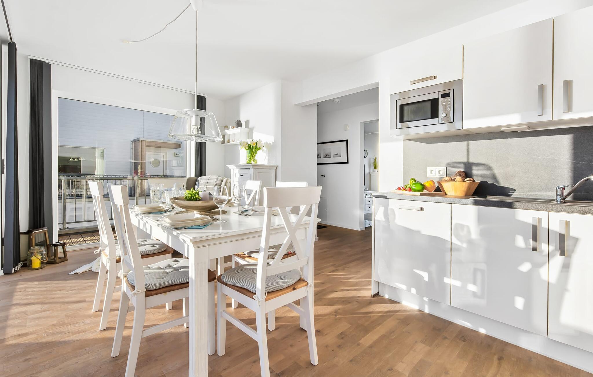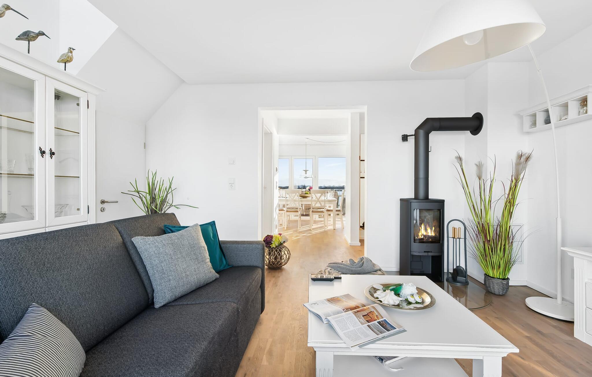 Uanset om en romantisk middag i levende lys eller en hyggelig grill eller havnebiograf er garanteret her. På ferien er der tid til kreativ madlavning, det fuldt udstyrede køkken-alrum lader intet tilbage at ønske. Stuen er hyggelig, da en hyggelig siddegruppe indbyder til en hyggelig aften ved pejsen selv på nordiske dårlige vejrdage.
