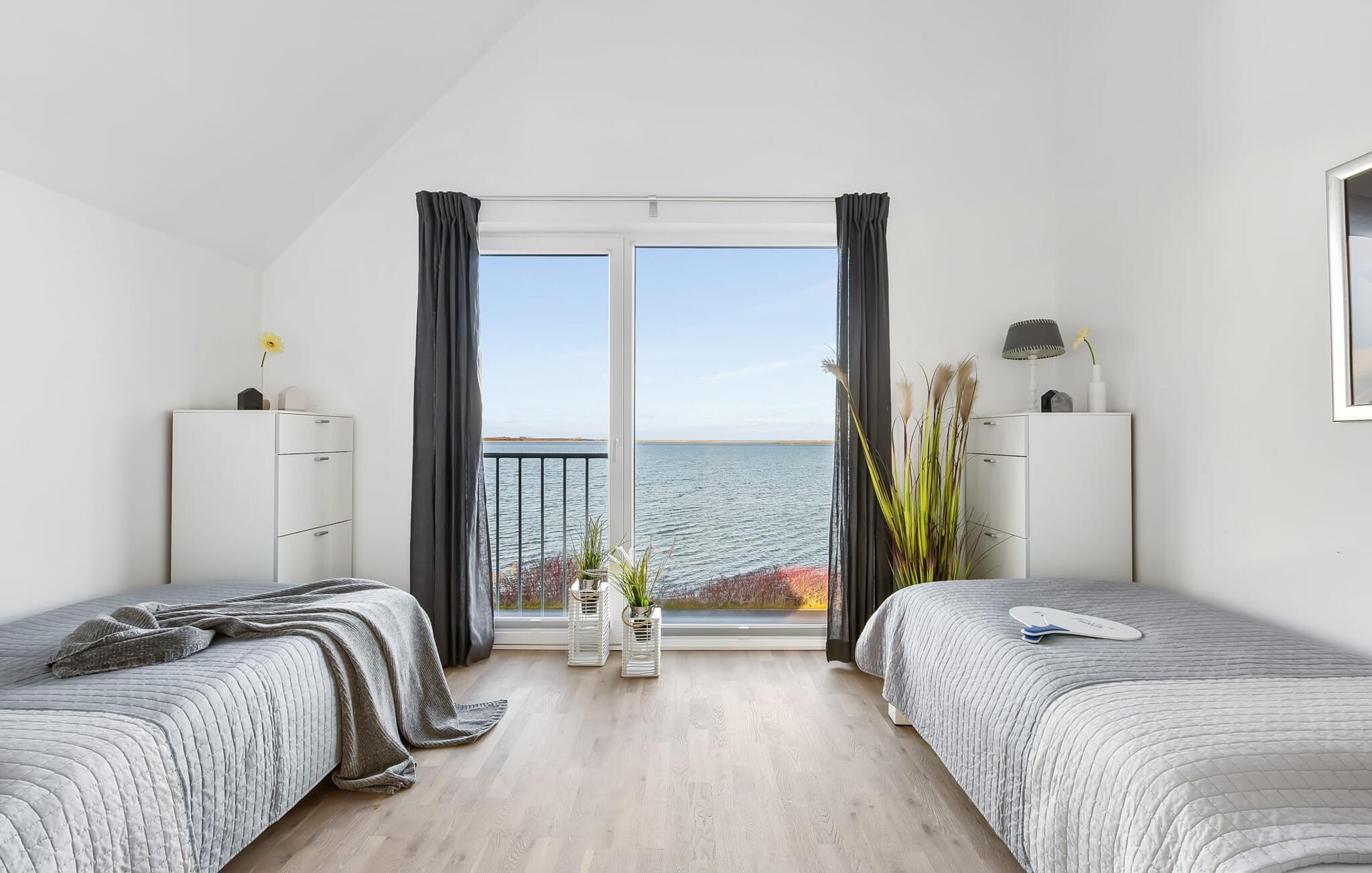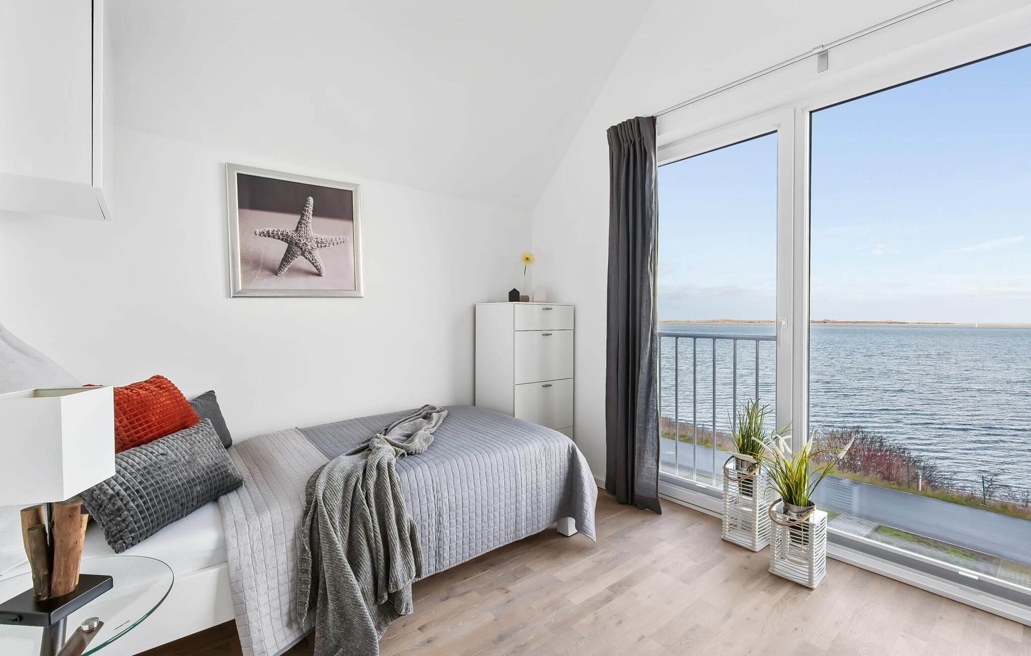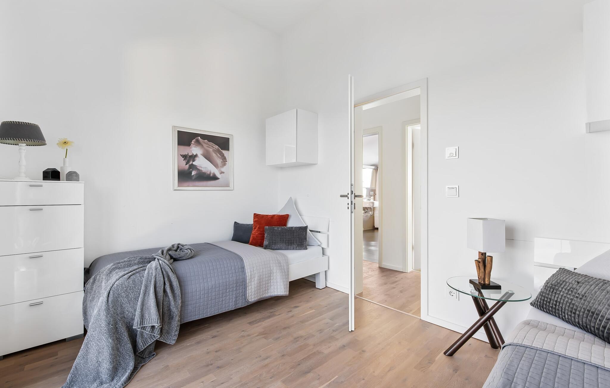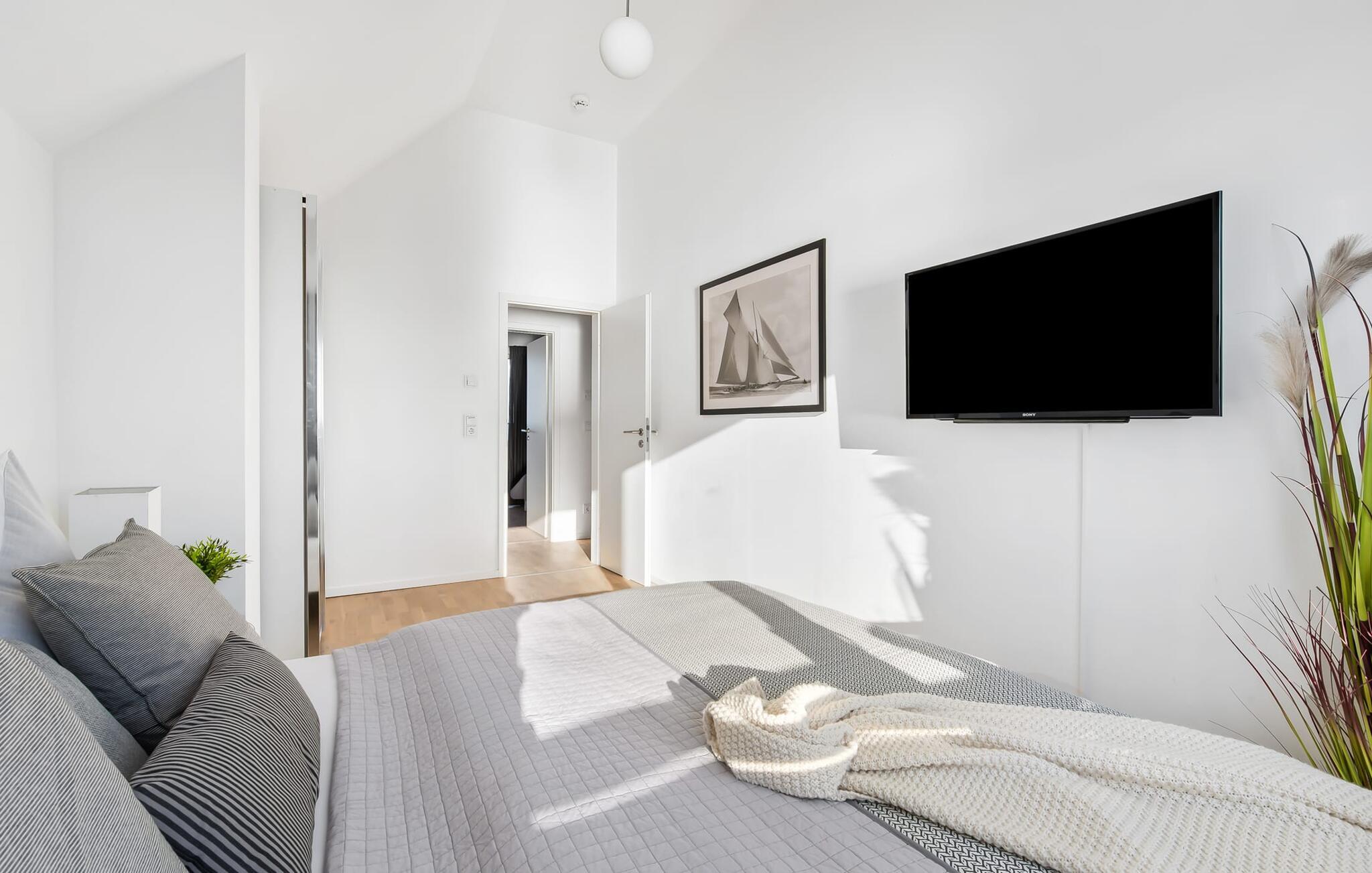 Afslapningsområdet er på første sal i lejligheden. Der er en fantastisk udsigt over havnen fra det store soveværelse. Fald i søvn under stjernerne, hvor et ovenlysvindue giver dig mulighed for at se ikke kun stjernehimlen, men også de vidunderlige skyformationer, der er så karakteristiske for norden. Det andet soveværelse har udsigt over Østersøfjorden Schlei.