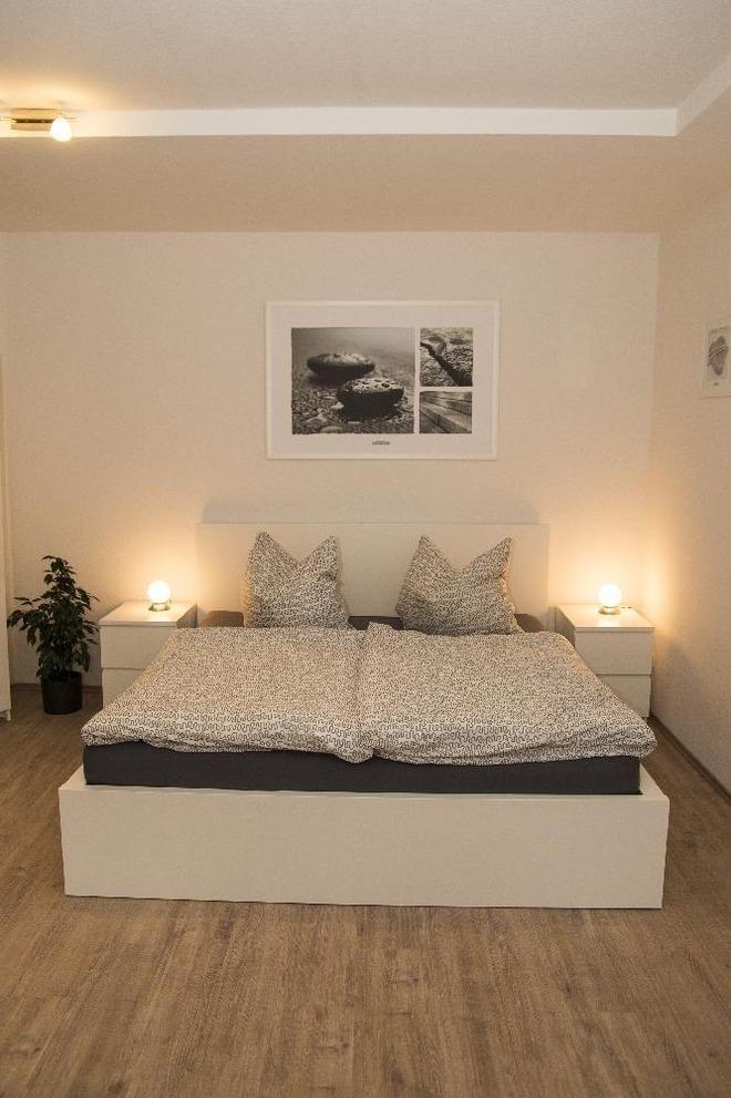 Die Einzimmerwohnung bietet neben einem Farbfernseher, einer Pantryküche mit 2 Herdplatten, einem Kühlschrank und kleinem Esstisch,