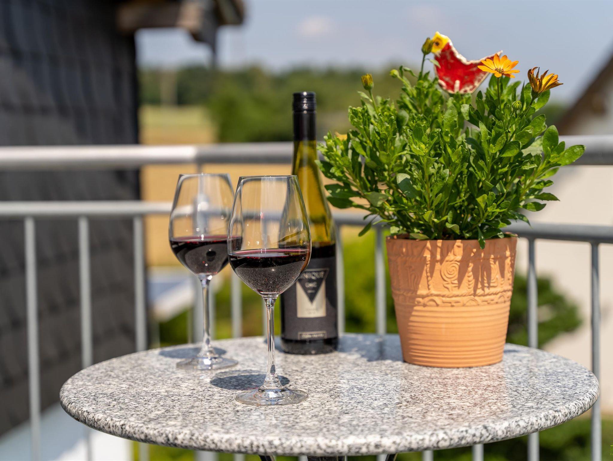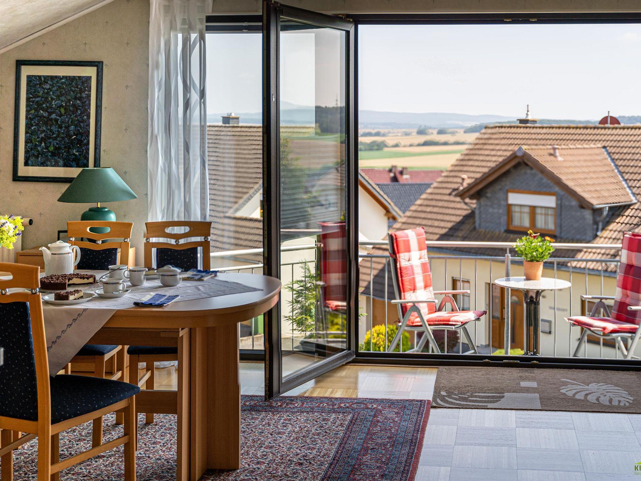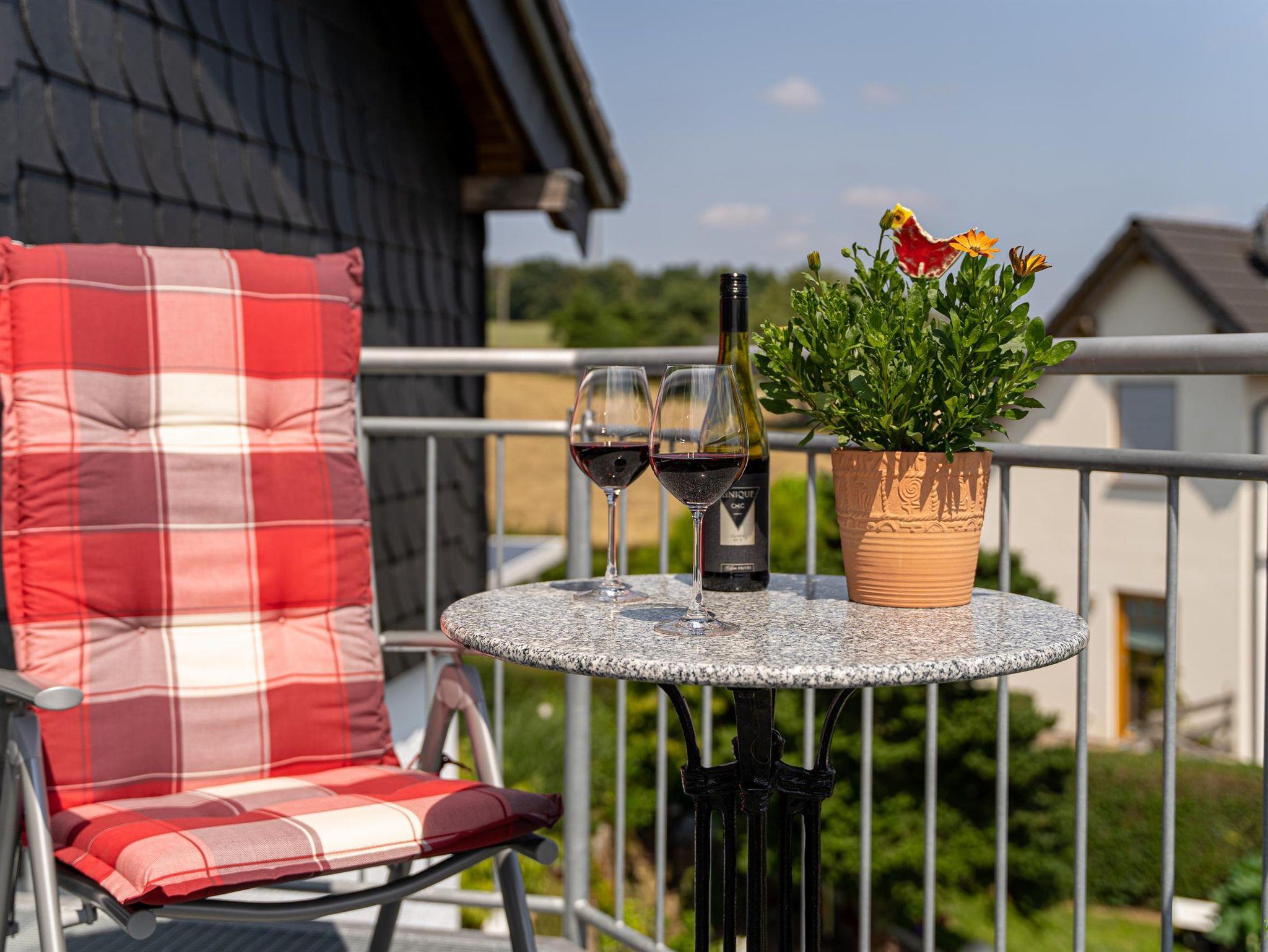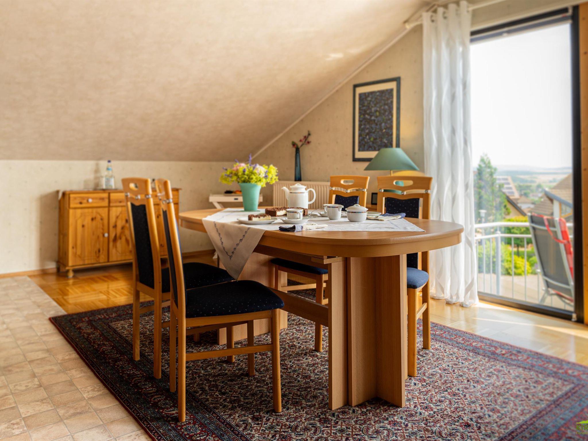 Der gemütliche, großzügig offene Wohn- und Essbereich lädt direkt zum Wohlfühlen ein. Die integrierte Küche ist mit Ceranfeld einem Backofen, Kühlschrank mit kleinem Gefrierfach, Kaffeemaschine, Mikrowelle, Toaster, Töpfen / Pfannen, Geschirr und Gläsern und vielem mehr, sehr gut ausgestattet. 1 Schlafzimmer mit 2mx2m Bett und getrennten Matratzen. 1 Tageslichtbad mit Dusche und Badewanne. Vom Balkon haben sie einen herrlichen Ausblick auf die Hunsrückhöhen, Wald und Wiesenlandschaft. Hier können sie die Sonne von morgens bis in die Nachmittagsstunden genießen und entspannen.