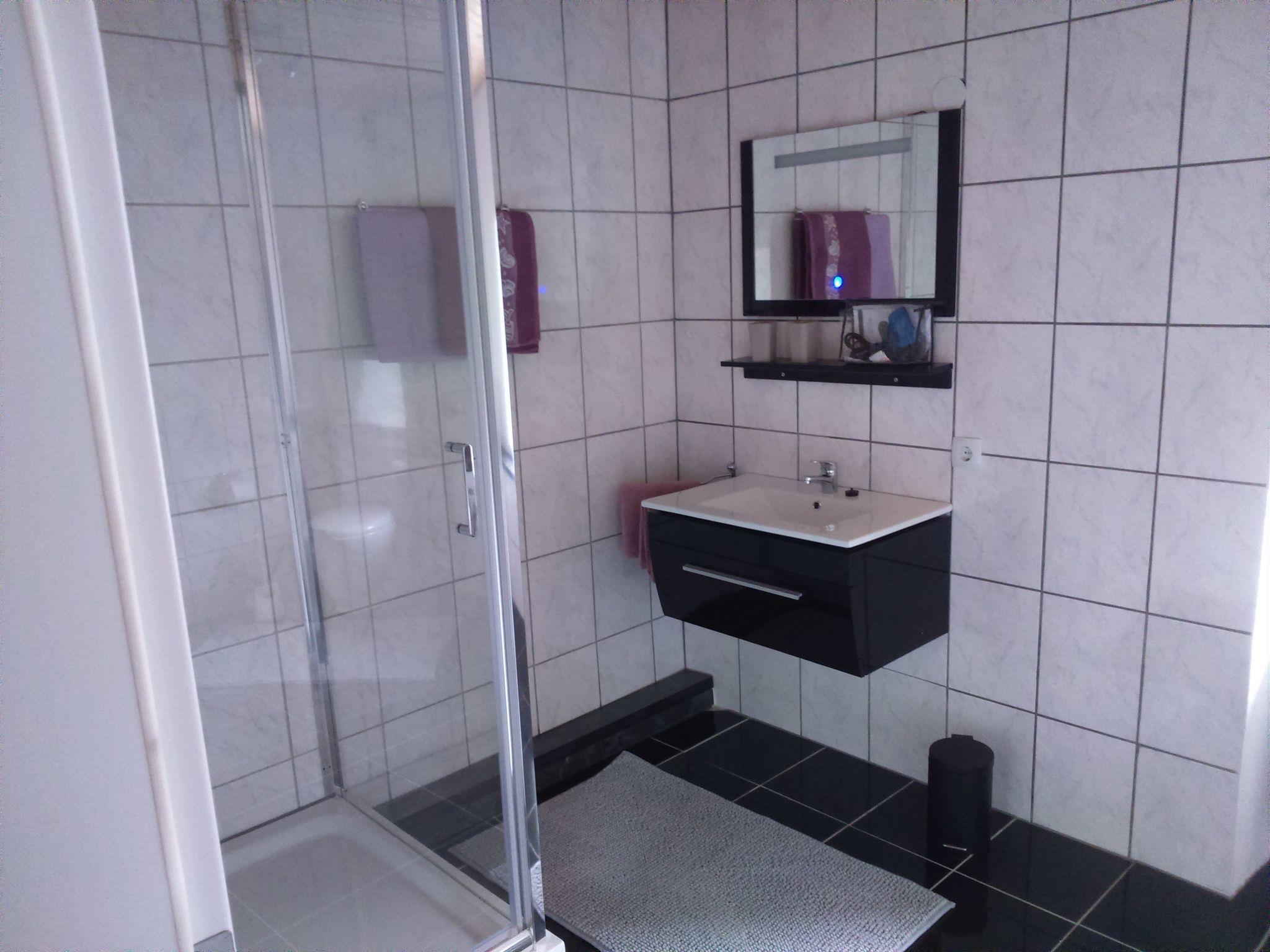 The flat is located on the upper floor and attic and offers space for 2 - up to max. 3 persons or 2 adults and 2 children up to 14 Open-plan living area on the entire upper floor. Living room (with sleeping accommodation, fold-out sofa 1.40 x 2.00 m) Soapstone stove in the living/dining area. Open fitted kitchen with kitchen bar. Bedroom with double bed 1.80 x 2.0 m, picture heating - infrared The bedroom can only be reached via a steep room-saving staircase, see pictures. Bathroom with shower, washing machine, electric underfloor heating Living area approx. 100 sqm.