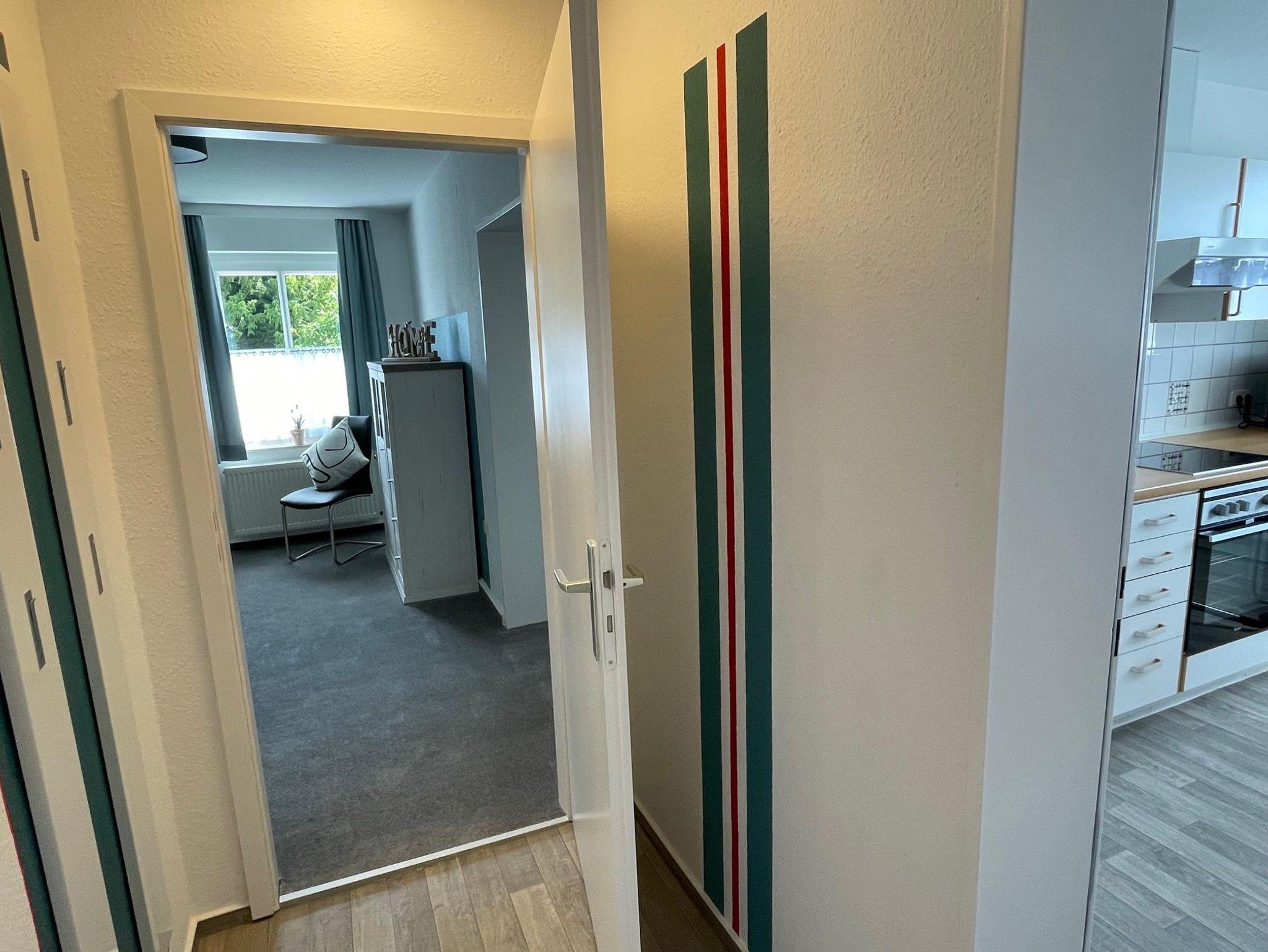 Über einen kleinen Flur kommen Sie in die Küche und ins Bad.