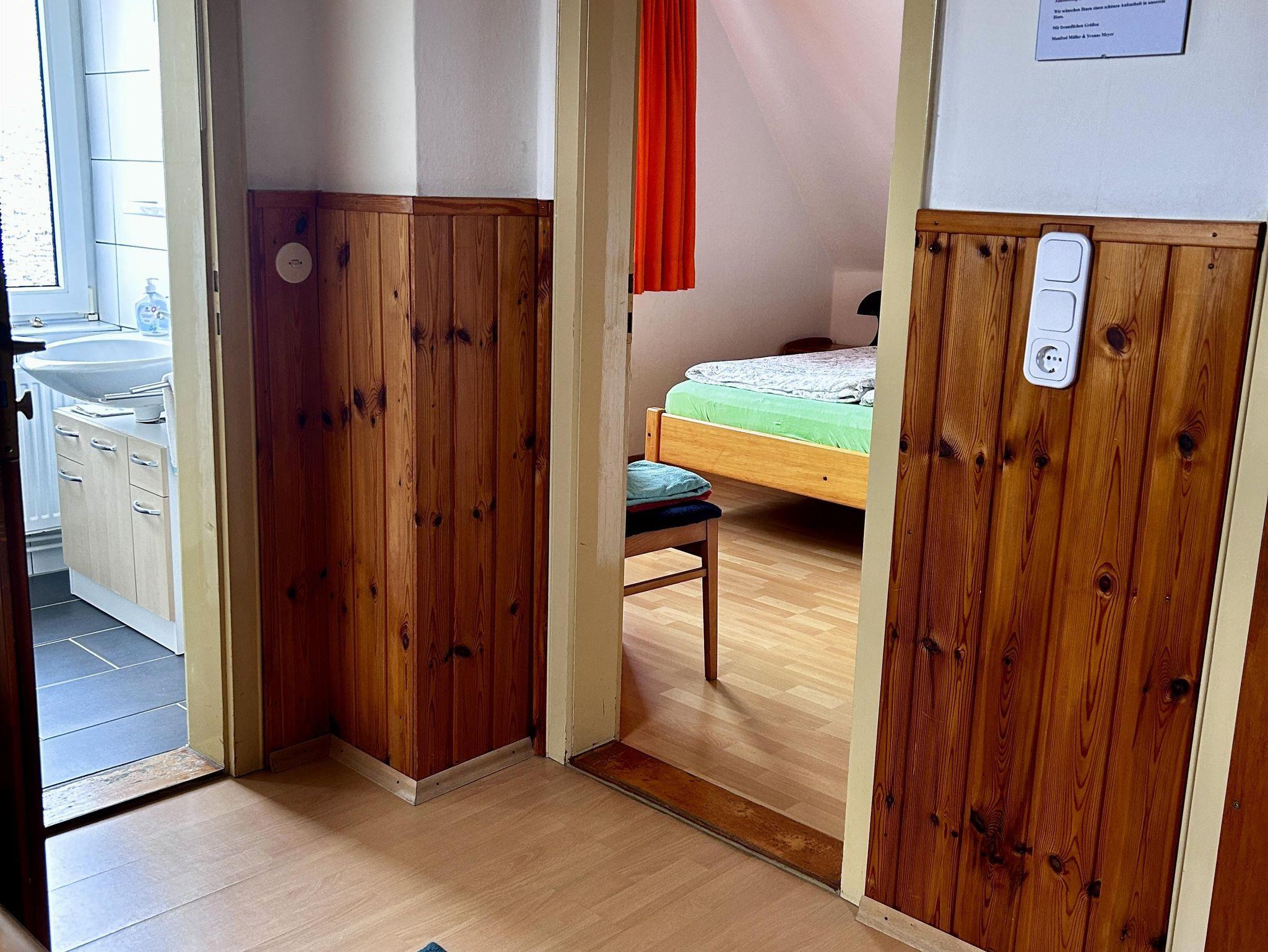 1. Schlafzimmer mit Bad im Obergeschoss.