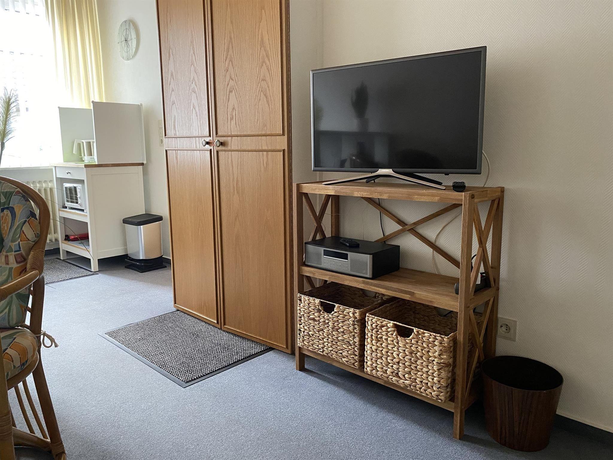 Wohnbereich mit Sofa, Flachbild- SAT- TV, DVD- Player, CD- Mikroanlage mit Radio, Radiowecker, MP3 und USB,
