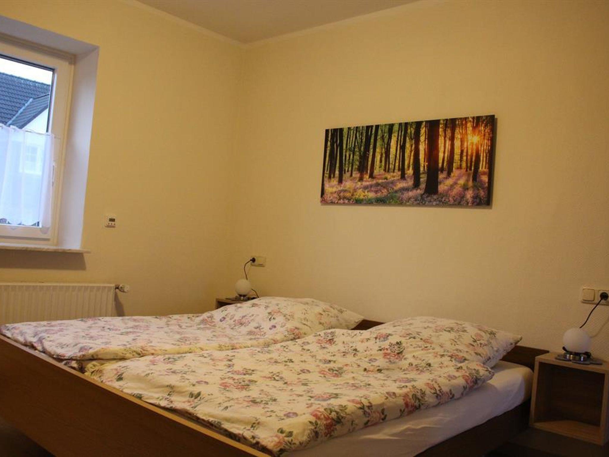 Unsere kleine Ferienwohnung ist optimal für 2 Personen, ca. 45 qm, 1 Schlafzimmer, kleine Küche, Wohnzimmer mit SAT-TV. Die Fenster sind schallisoliert. WLAN steht Ihnen kostenfrei zur Verfügung.