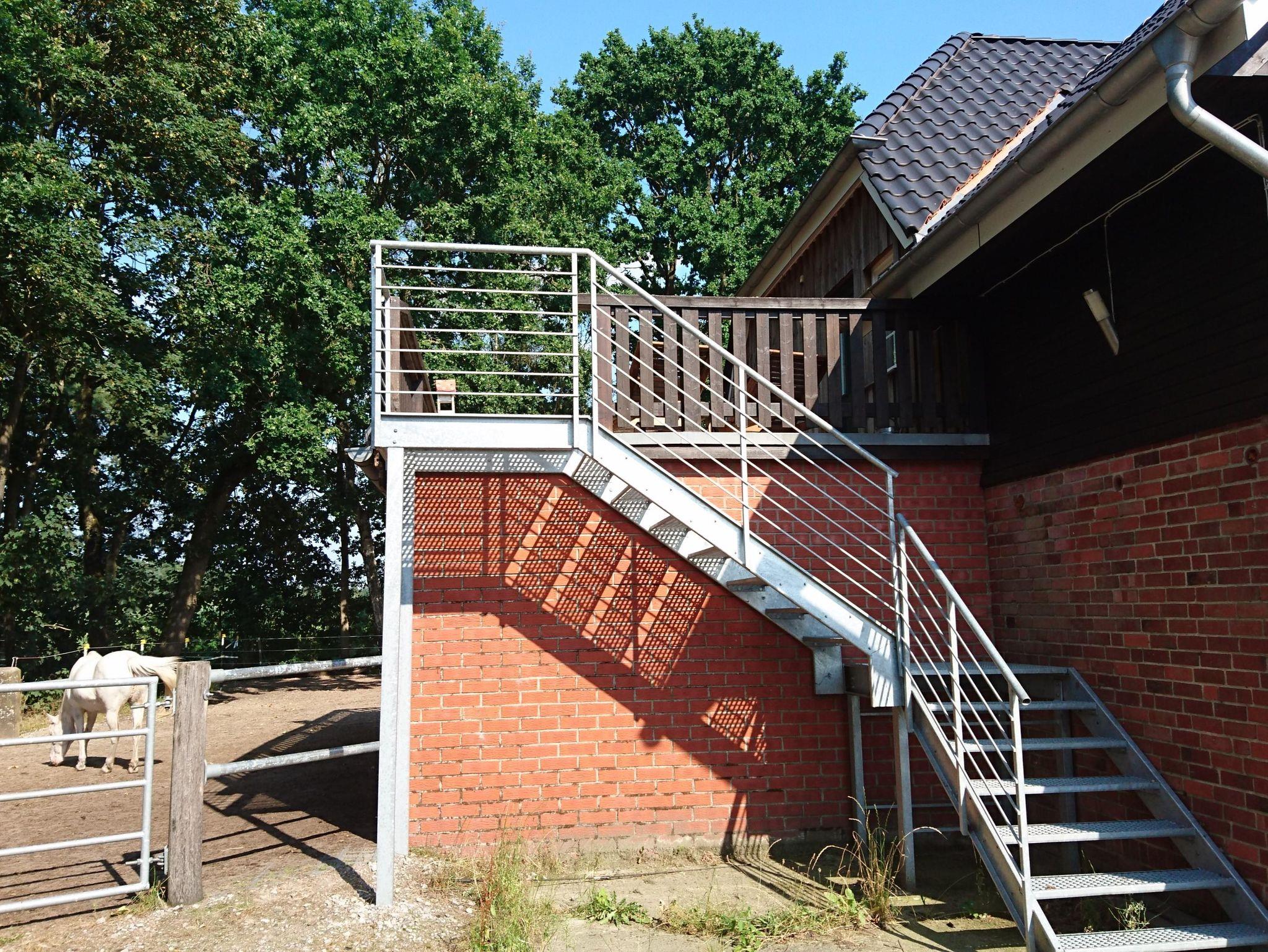 Die Ferienwohnung „Über dem Stutenstall“ mit 76 m² Wohnfläche wurde 2020 komplett renoviert und eingerichtet. Sie befindet sich in der ersten Etage des Haupthauses auf einer weitläufigen Anlage mit Pferdekoppeln und Stallanlagen. Sie verfügt über einen eigenen Eingang. Ein besonderes Highlight ist die große Dachterrasse, auf der Sie das Verhalten der Pferde unter ihnen studieren können. Ein überdachter Balkon an der Westseite bietet einen gemütlichen Platz sogar bei schlechtem Wetter.