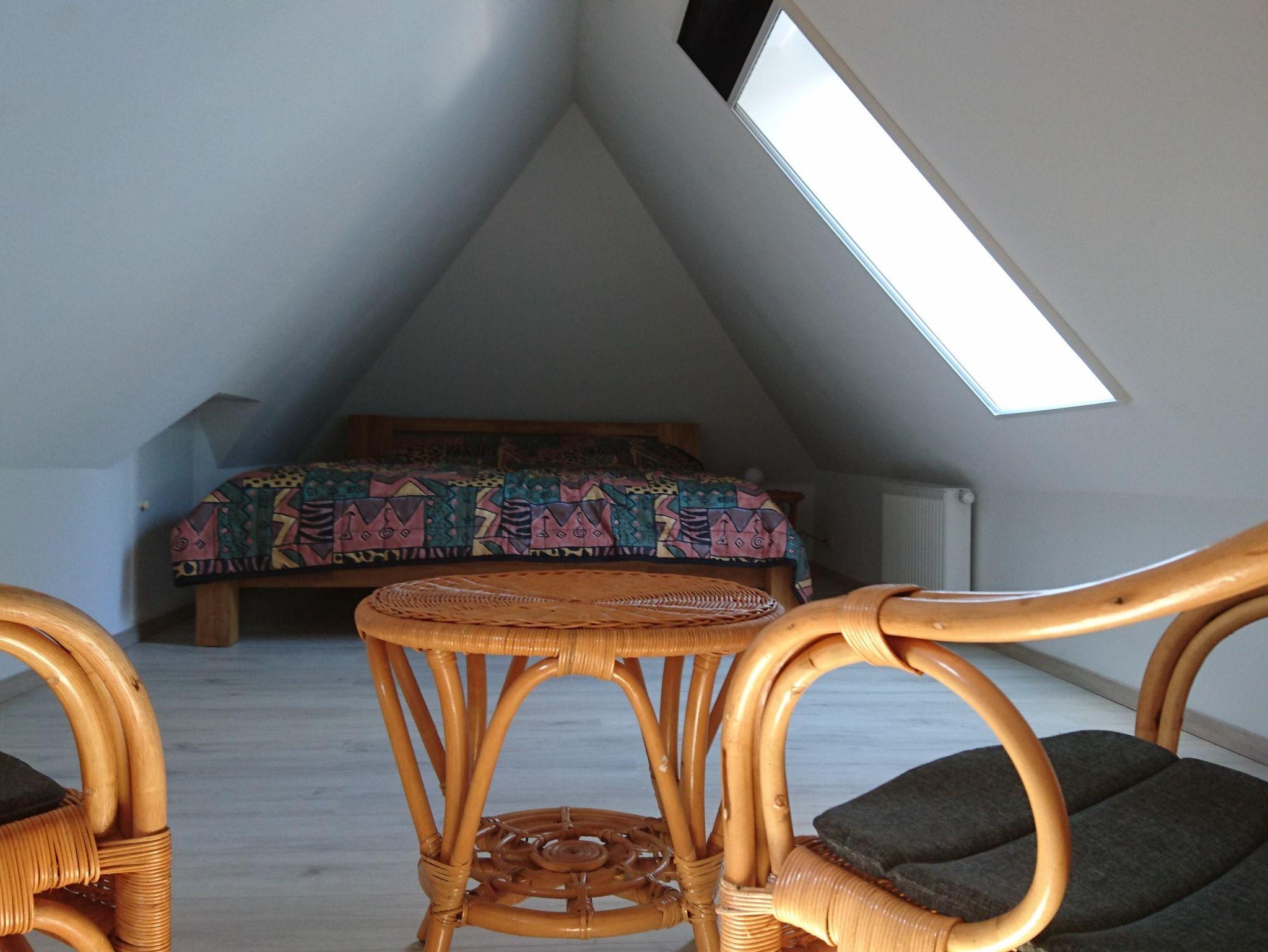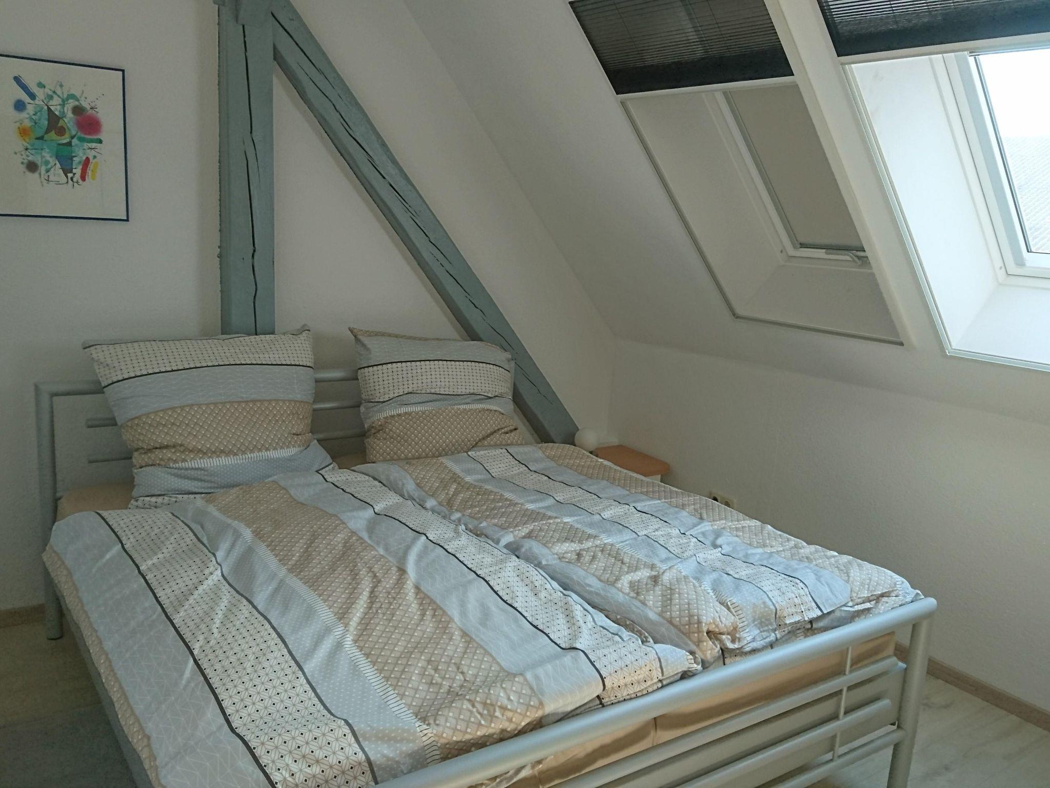 Es gibt 2 Schlafzimmer je mit Doppelbett. Das im Dachgeschoss erreichen Sie über einen Treppenzugang.