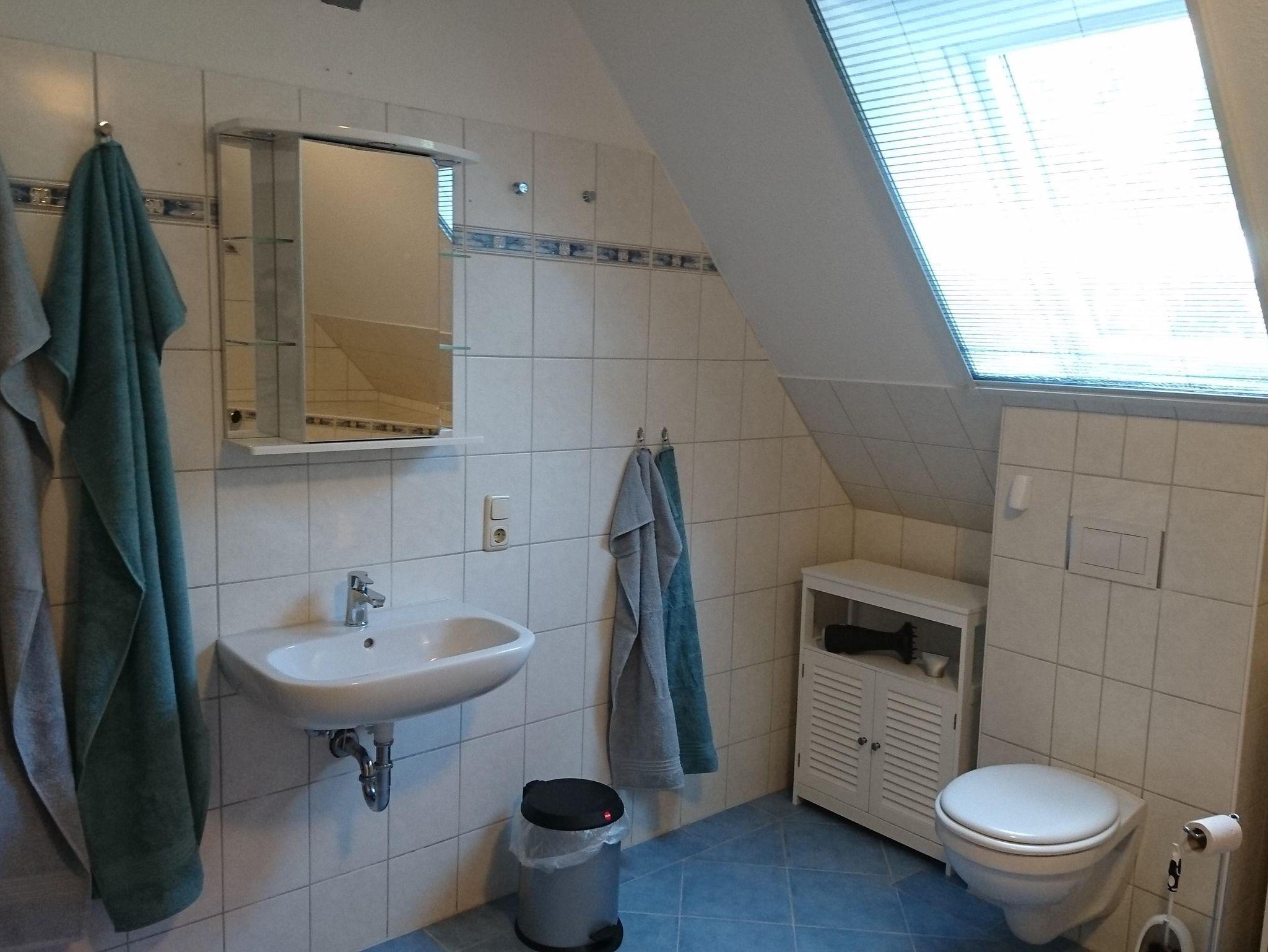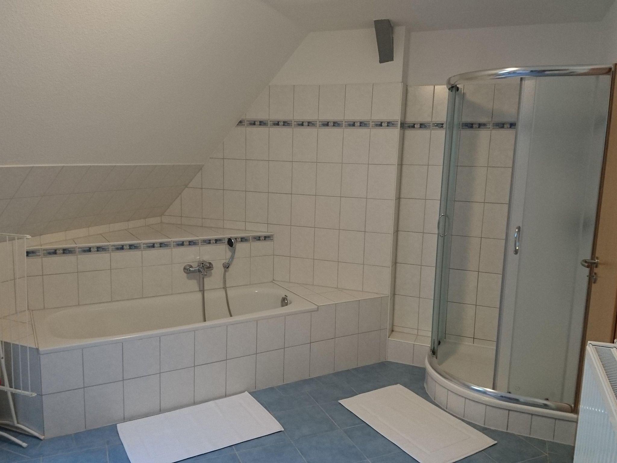 Die Ferienwohnung verfügt über ein sehr großes Tageslichtbad mit Dusche und Badewanne.