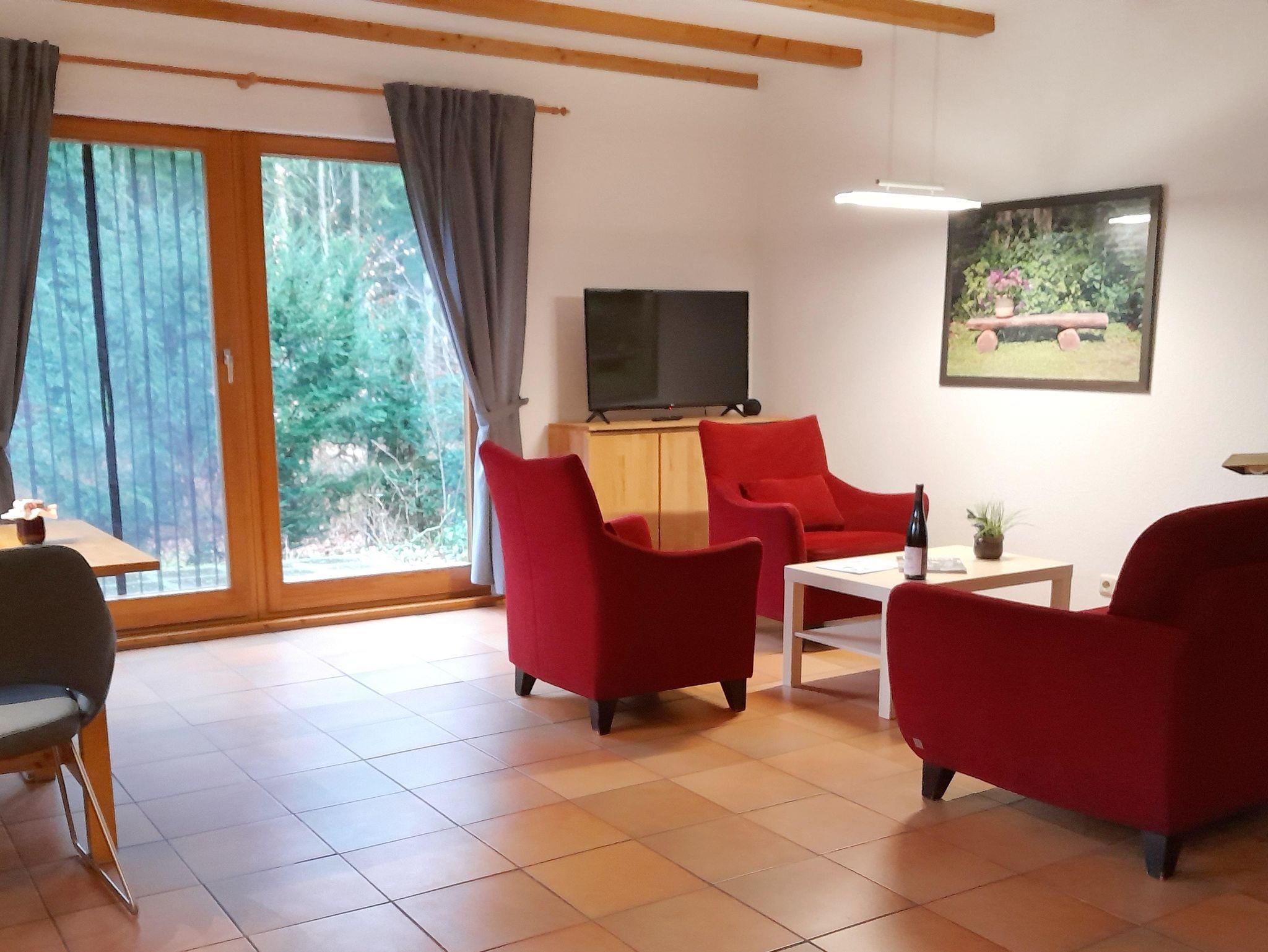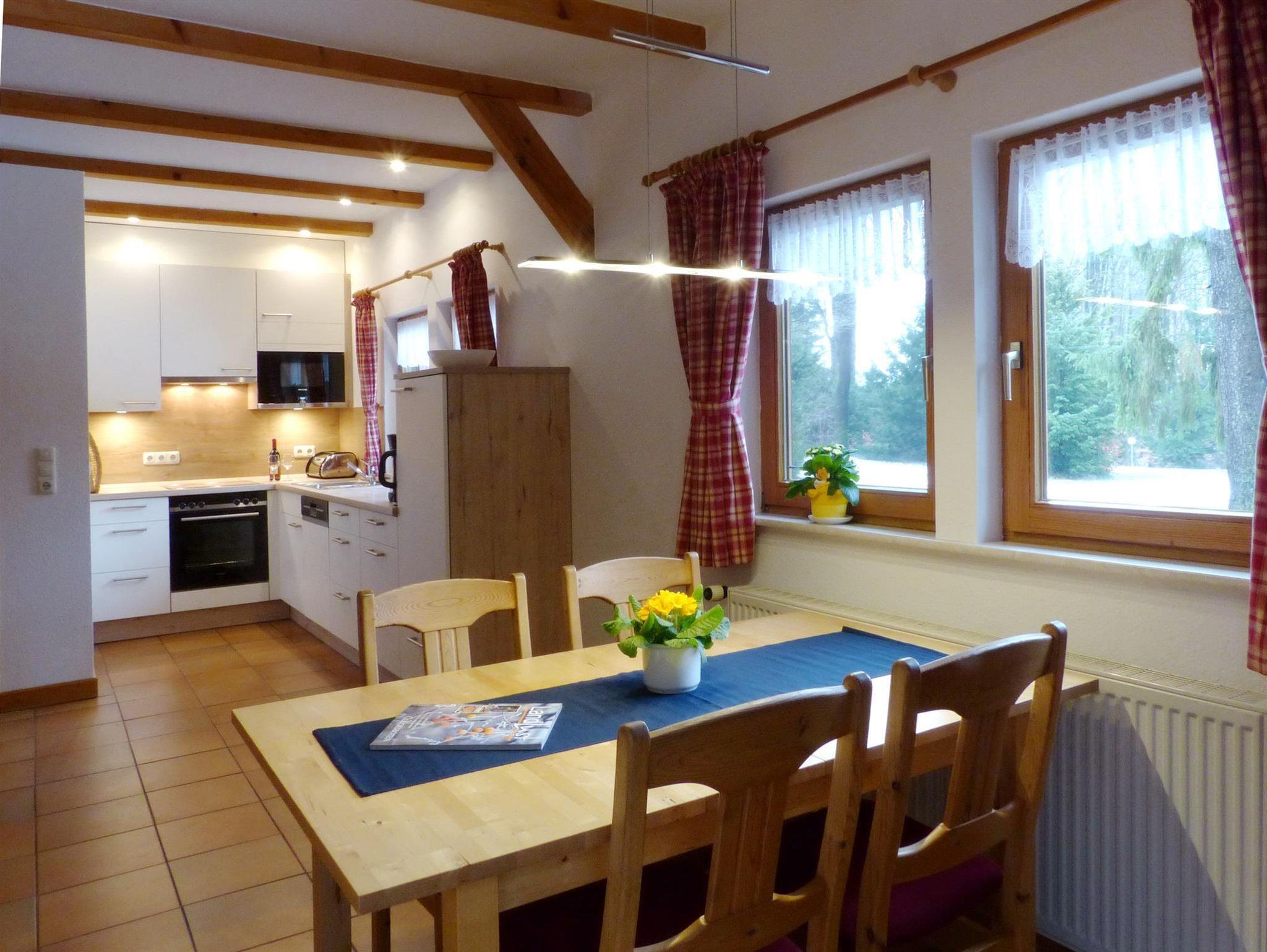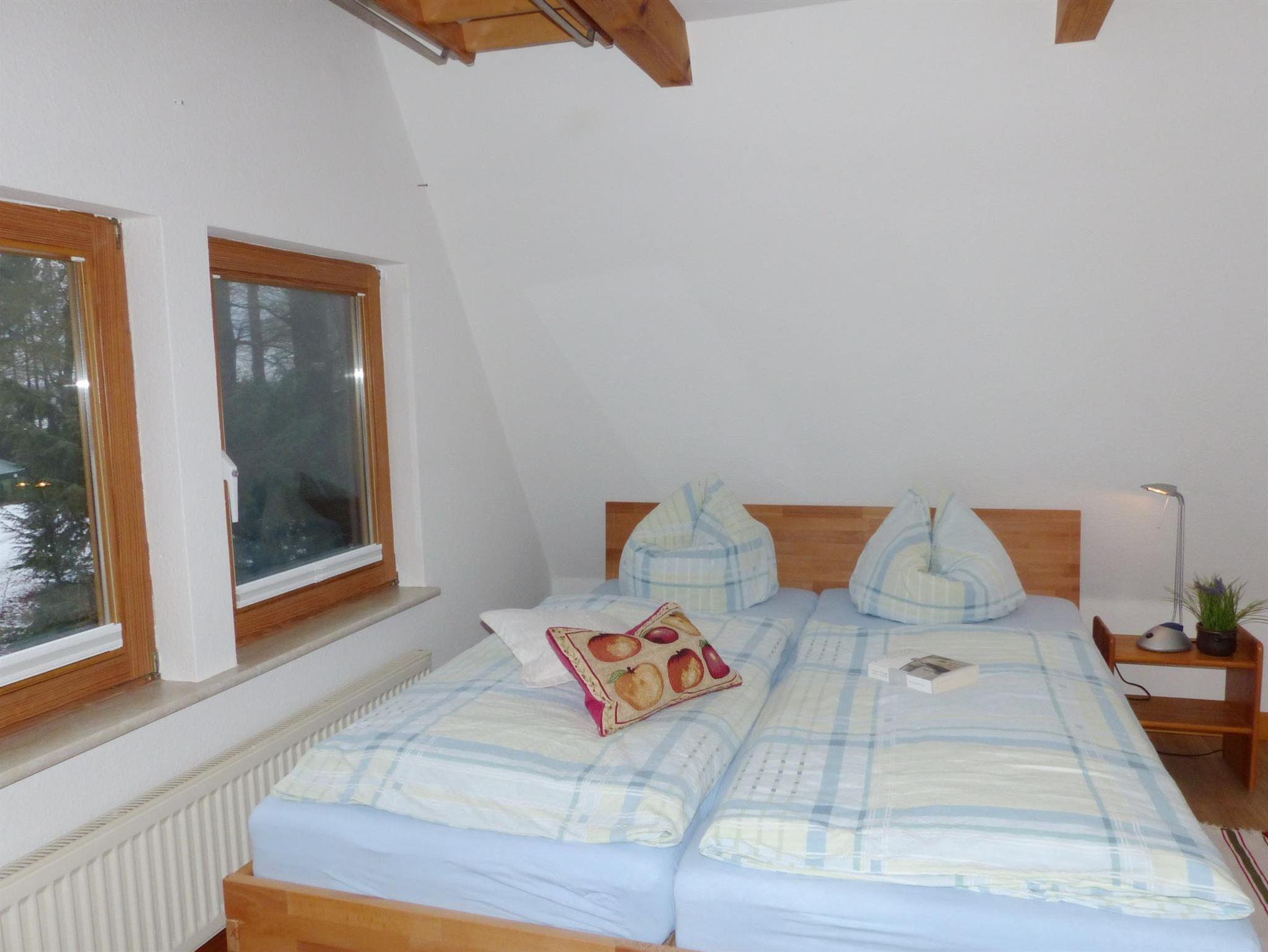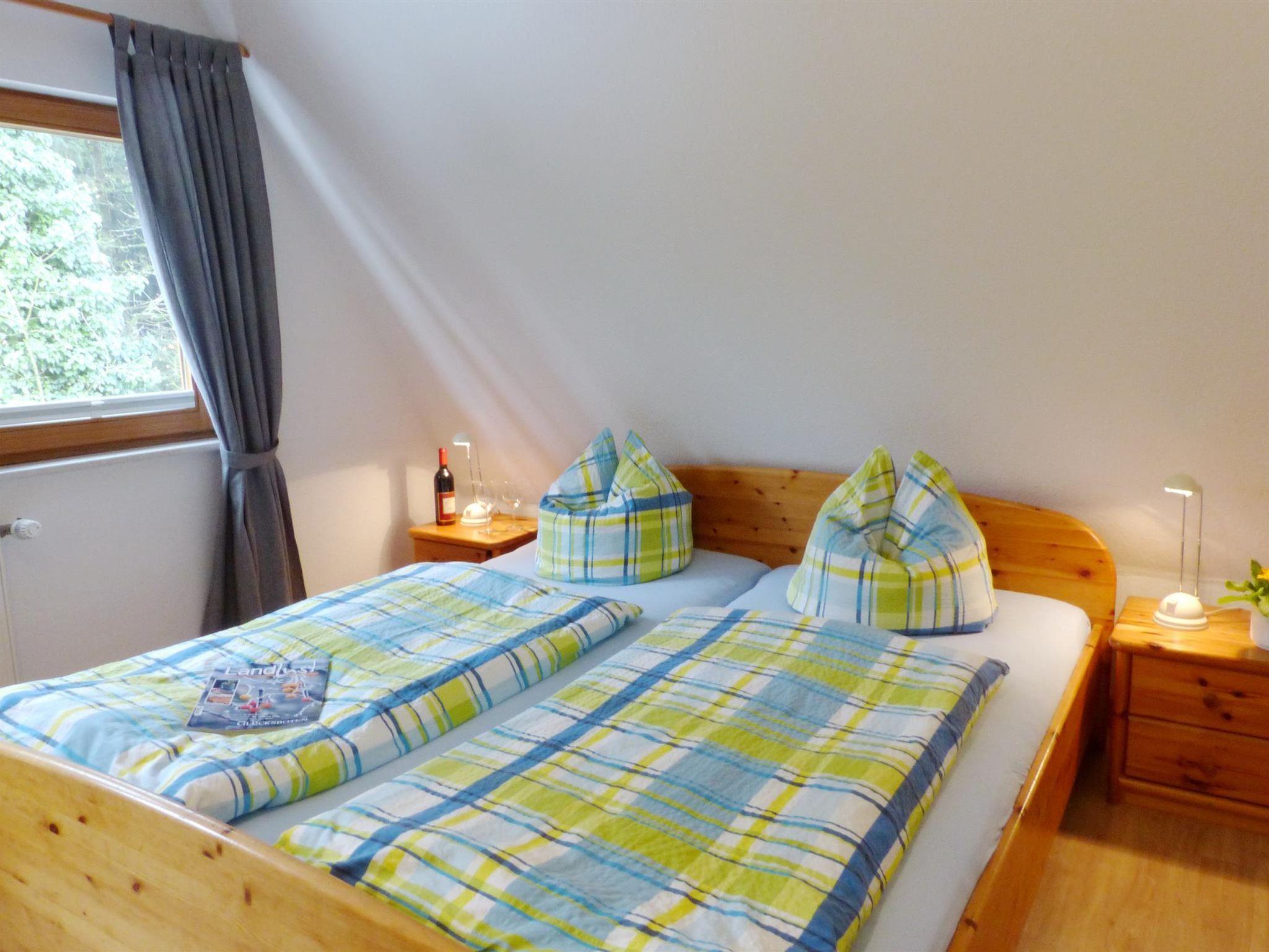 Für 2-4 Pers., 70 qm, 2019 komplett renoviert. 2 Schlafräume als Doppelzimmer, aus einem der Zimmer führt eine Treppe auf einen Schlafboden mit zwei zubuchbaren Betten 90 cm x 200 cm. Im OG ein WC, im EG Dusche/WC, gut ausgestattete Küche , Wohnzimmer mit Terrasse zum Wald, Fußbodenheizung, Frühstück (Zusatzleistung) zubuchbar.