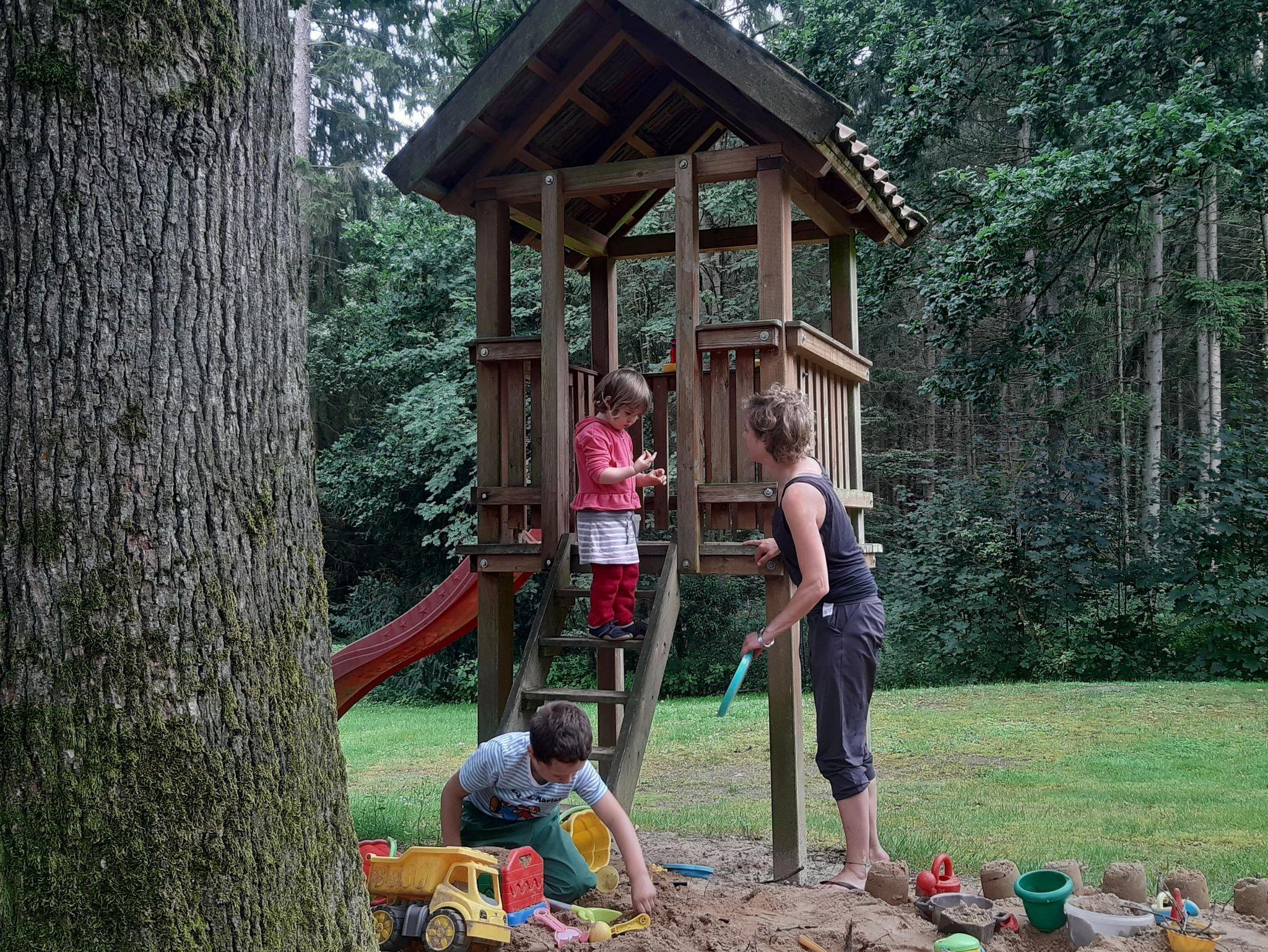 Parkartiger Garten, Streicheltiere, Spielplatz, Frühstücks- und Brötchenservice.