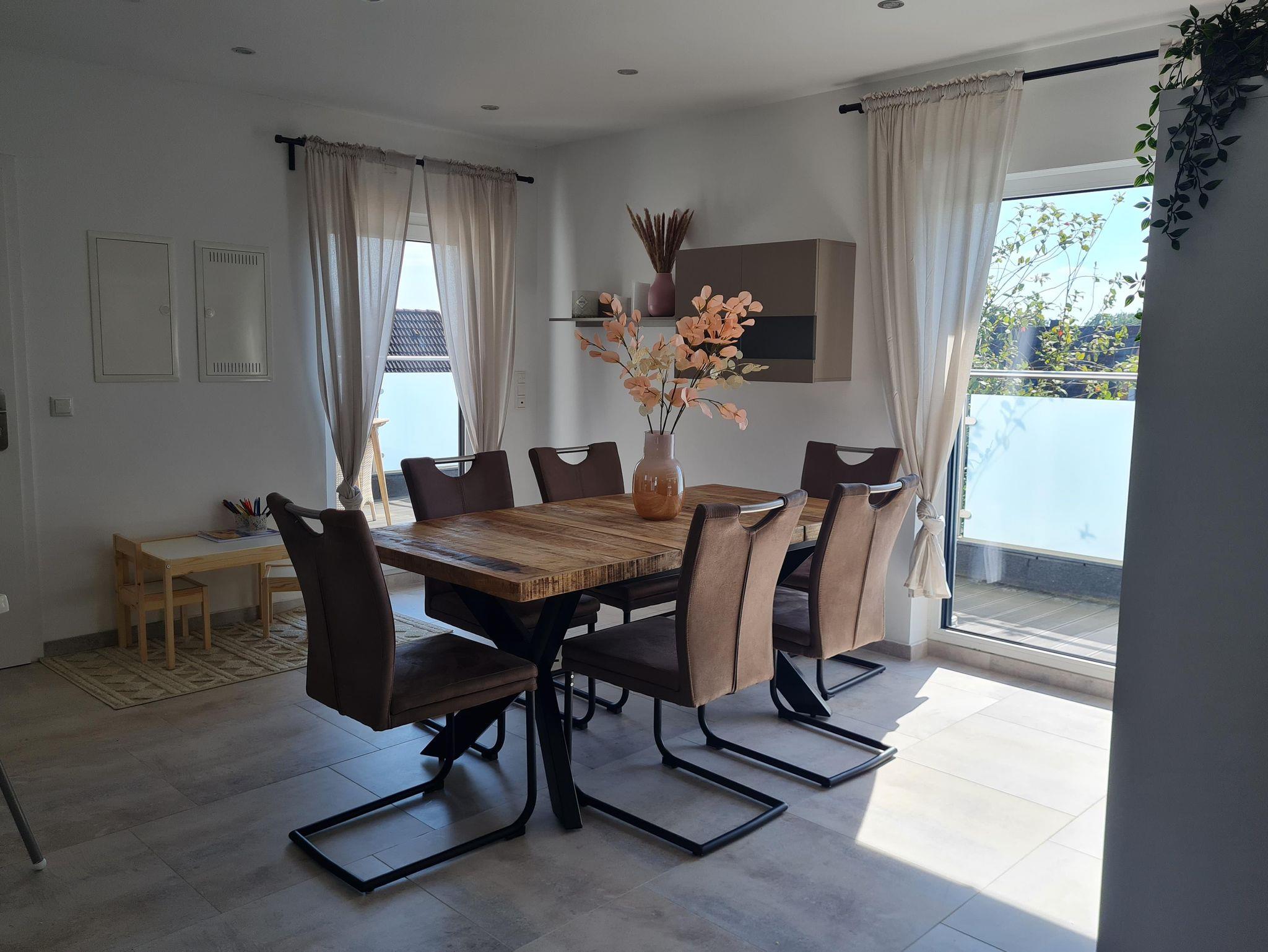 Die hochwertig eingerichtete Ferienwohnung lädt Sie zu erholsamen Tagen in der Heide ein. Die Einrichtung macht keine Unterschiede in der Generation: ein Doppelbett inkl. einem gemütlichen Schlafsofa für insgesamt 4 Personen und ein Reisebett. Eine vollausgestatte Küche mit (Kochfeld Backofen Kaffeemaschine Geschirrspüler Wasserkocher usw)WC/Bad mit einer Regendusche und ein Haarfön, ein großer Fernseher (55Zoll) mit kostenlosem Zugang zu Netflix und falls es mal ein Abend ohne Medien sein darf stellen wir Ihnen diverse Gesellschaftsspiele zur Verfügung.