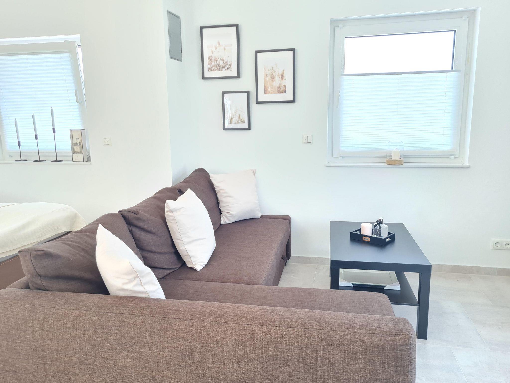 Das geräumige Ein-Zimmer-Appartement mit 50qm wurde im Jahr 2020 gebaut. Es beinhaltet eine 30qm große Dachterrasse, welche sich auf der Ost- und Westseite des Hauses verteilt.