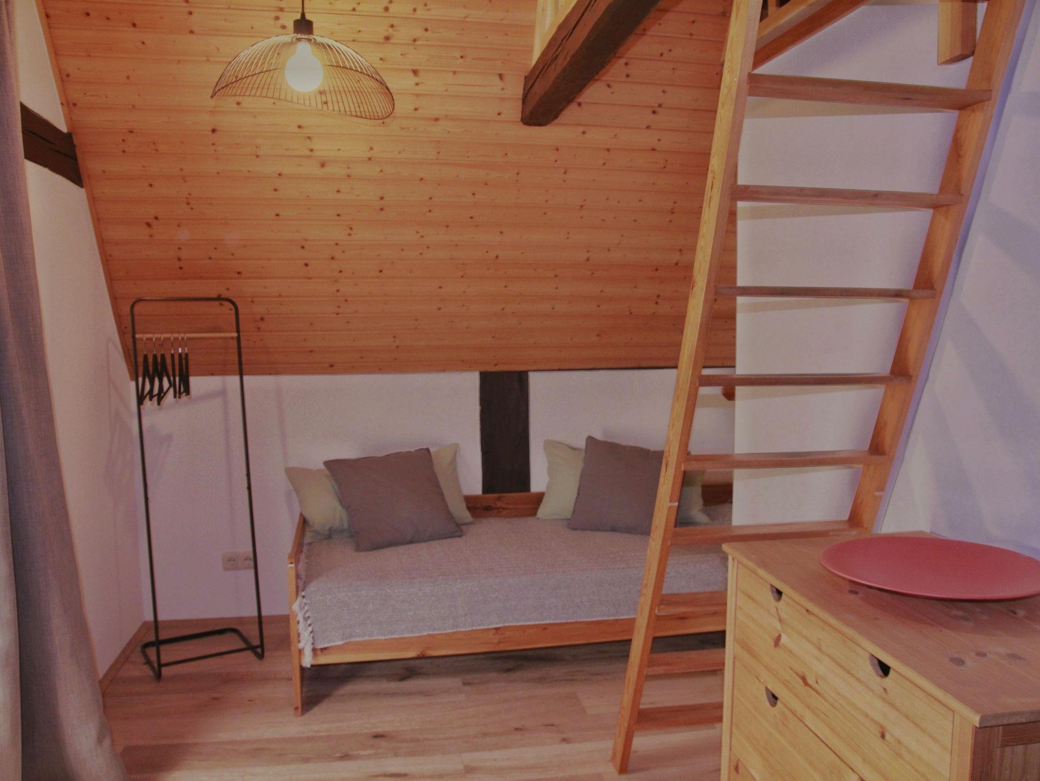 • 1 Schlafzimmer mit Einzelbett (90 x 200 cm) und Aufgang zum integrierten Schlafboden