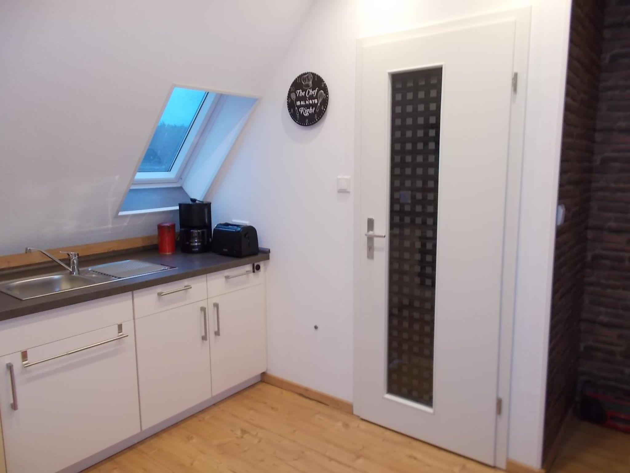 Neuwertige Ferienwohnung 35 m² mit einem Wohn-Schlafraum (Doppelbett 1,80 x 2m) und separater Küche mit Sitzecke, Duschbad, Sat TV, W-Lan
