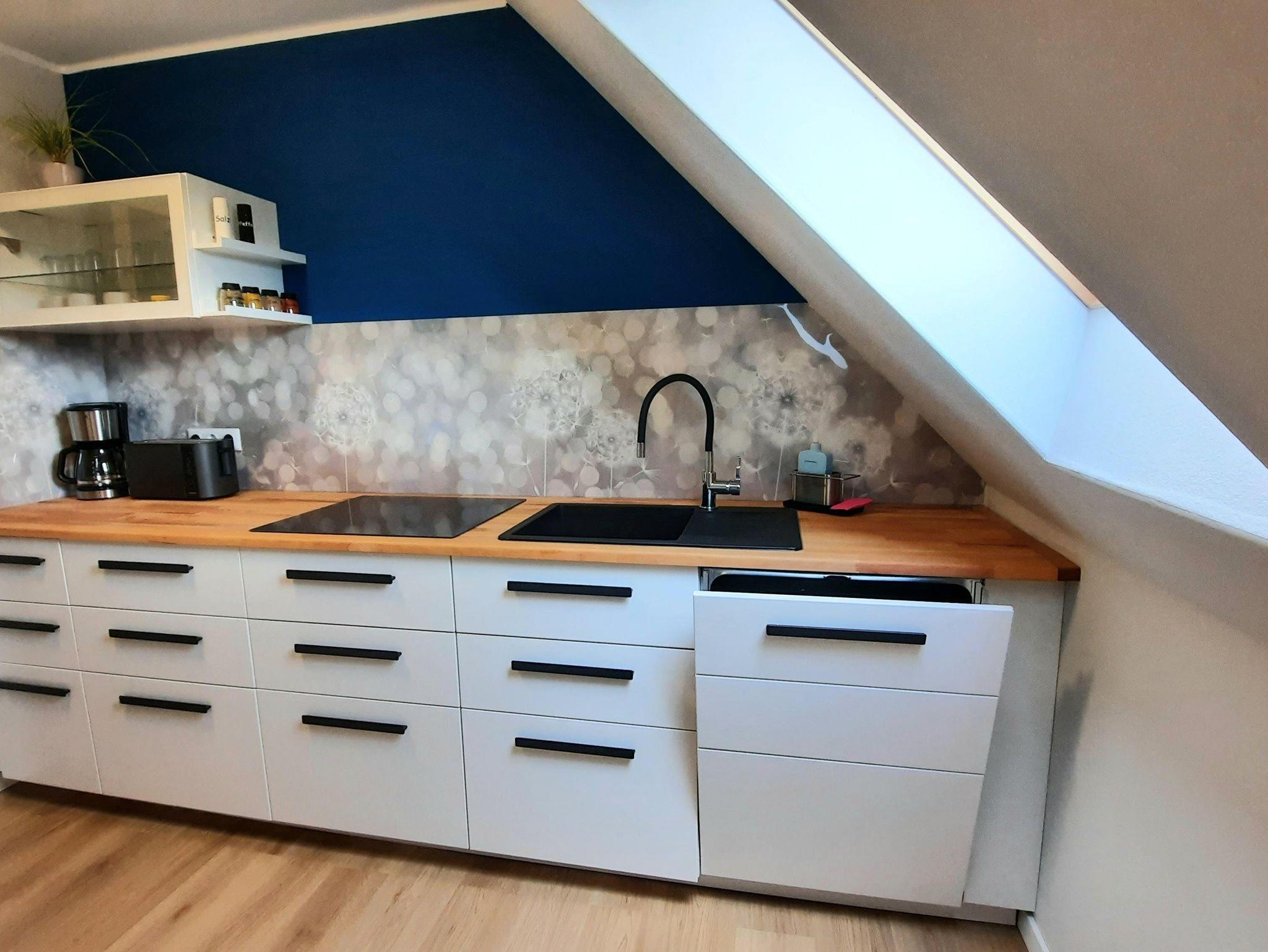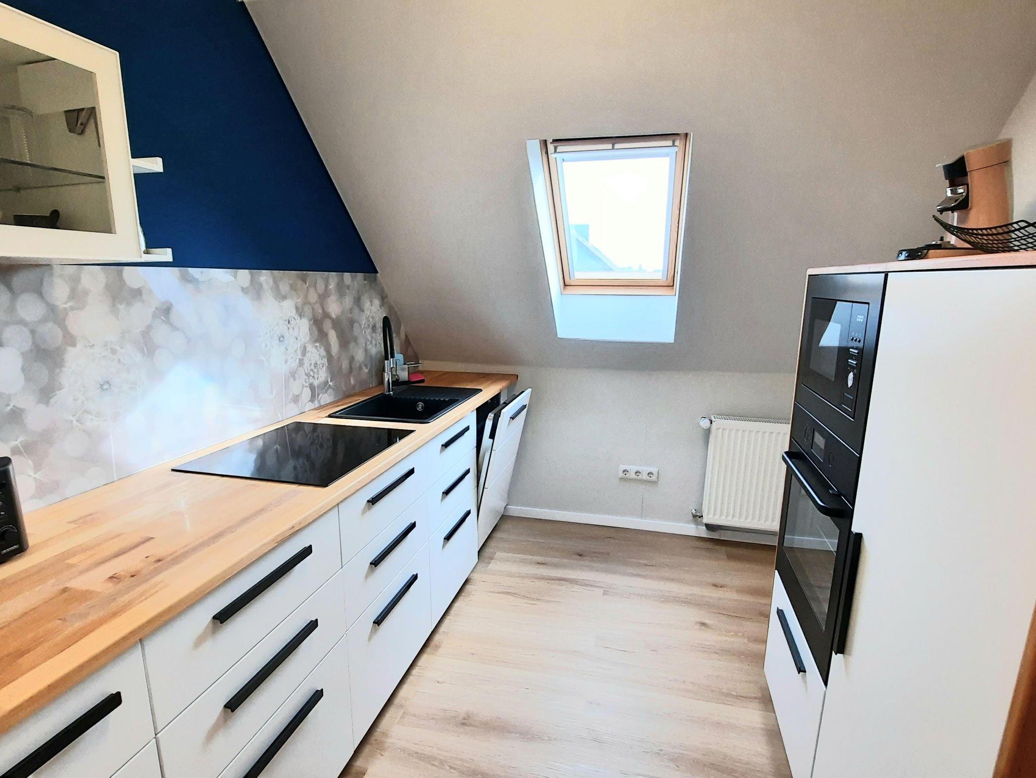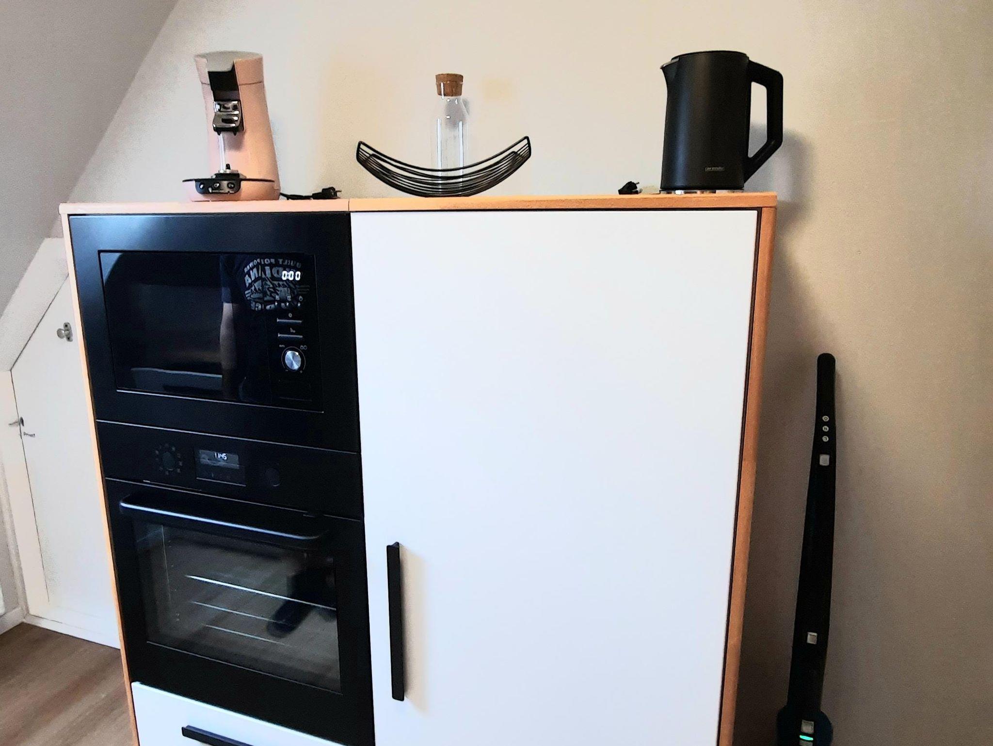 Die Küche bietet alles, was Gäste brauchen: Induktionskochfeld, Ofen, Mikrowelle, Kaffeemaschine und vieles mehr.
