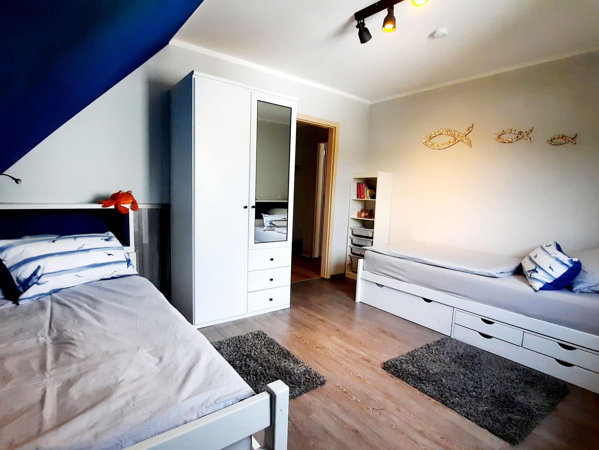 Im 1. Schlafzimmer ist ein Doppelbett und im 2. Schlafzimmer zwei Einzelbetten.