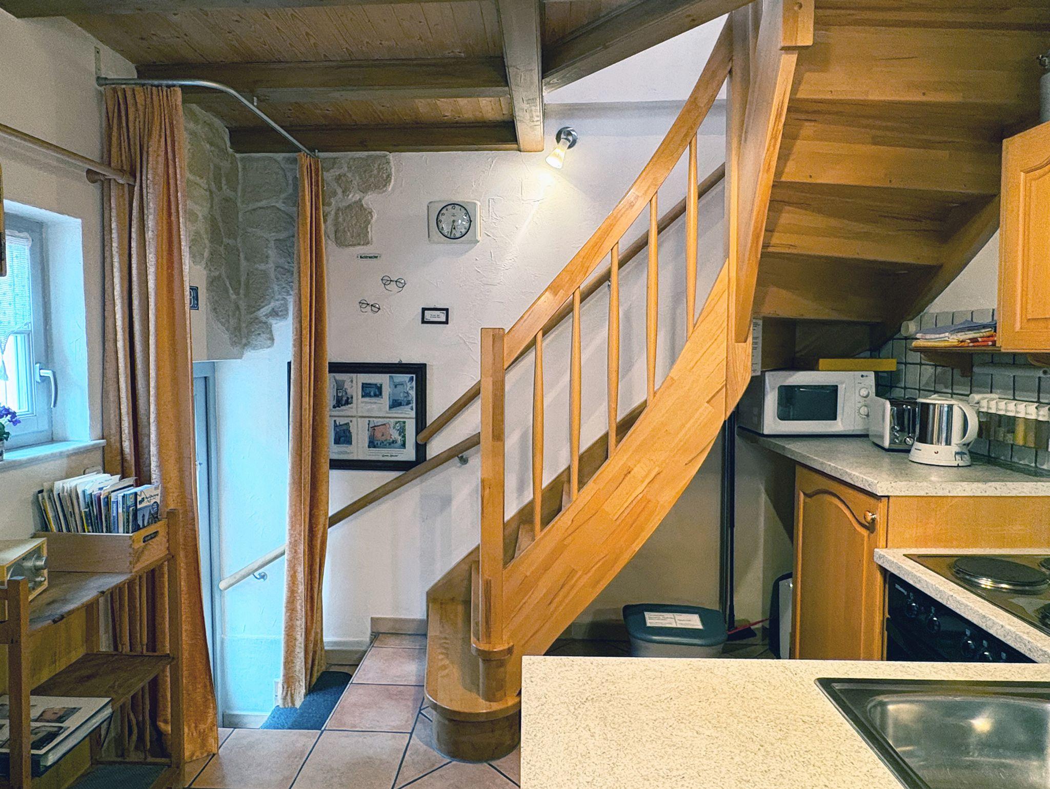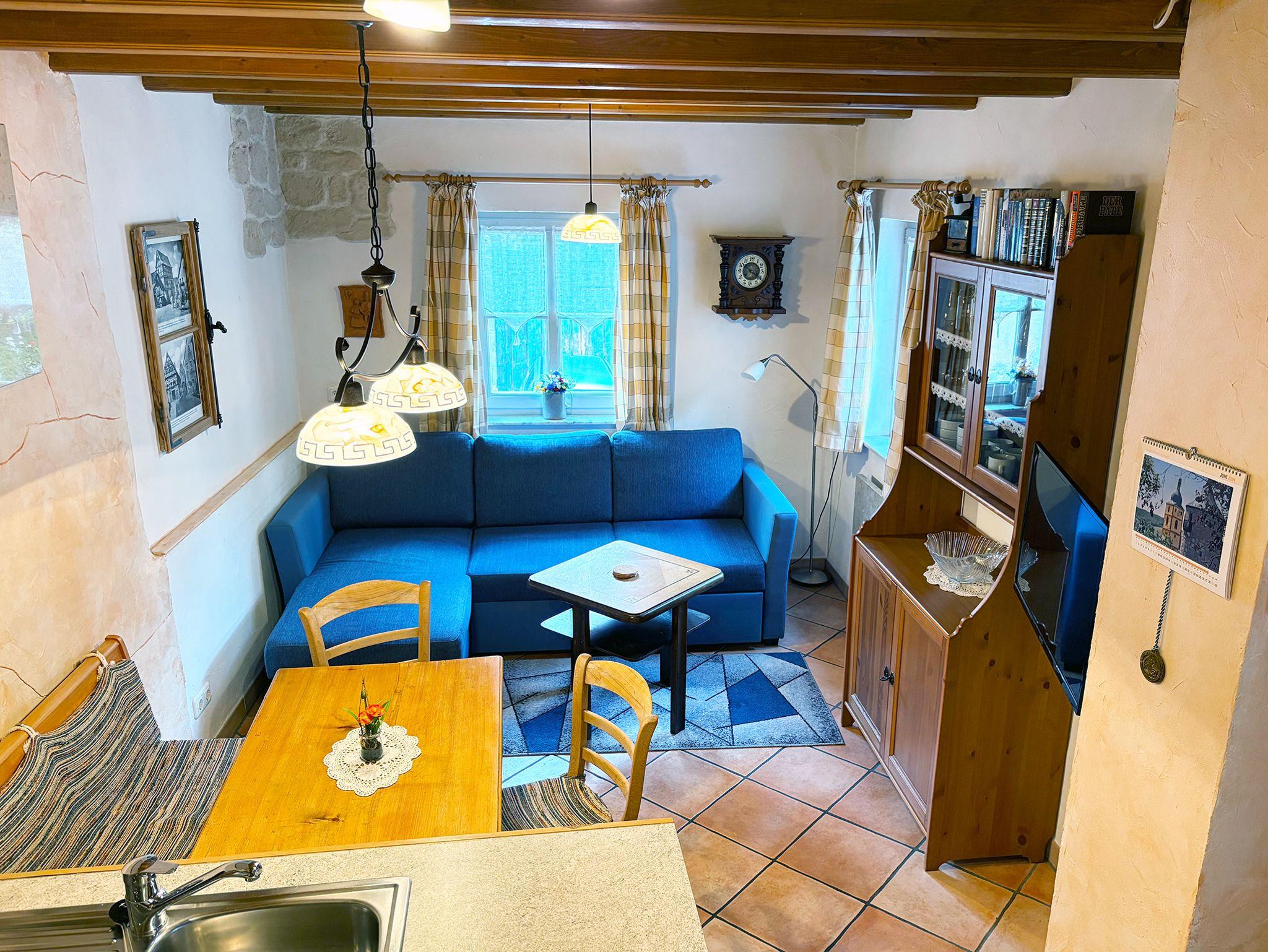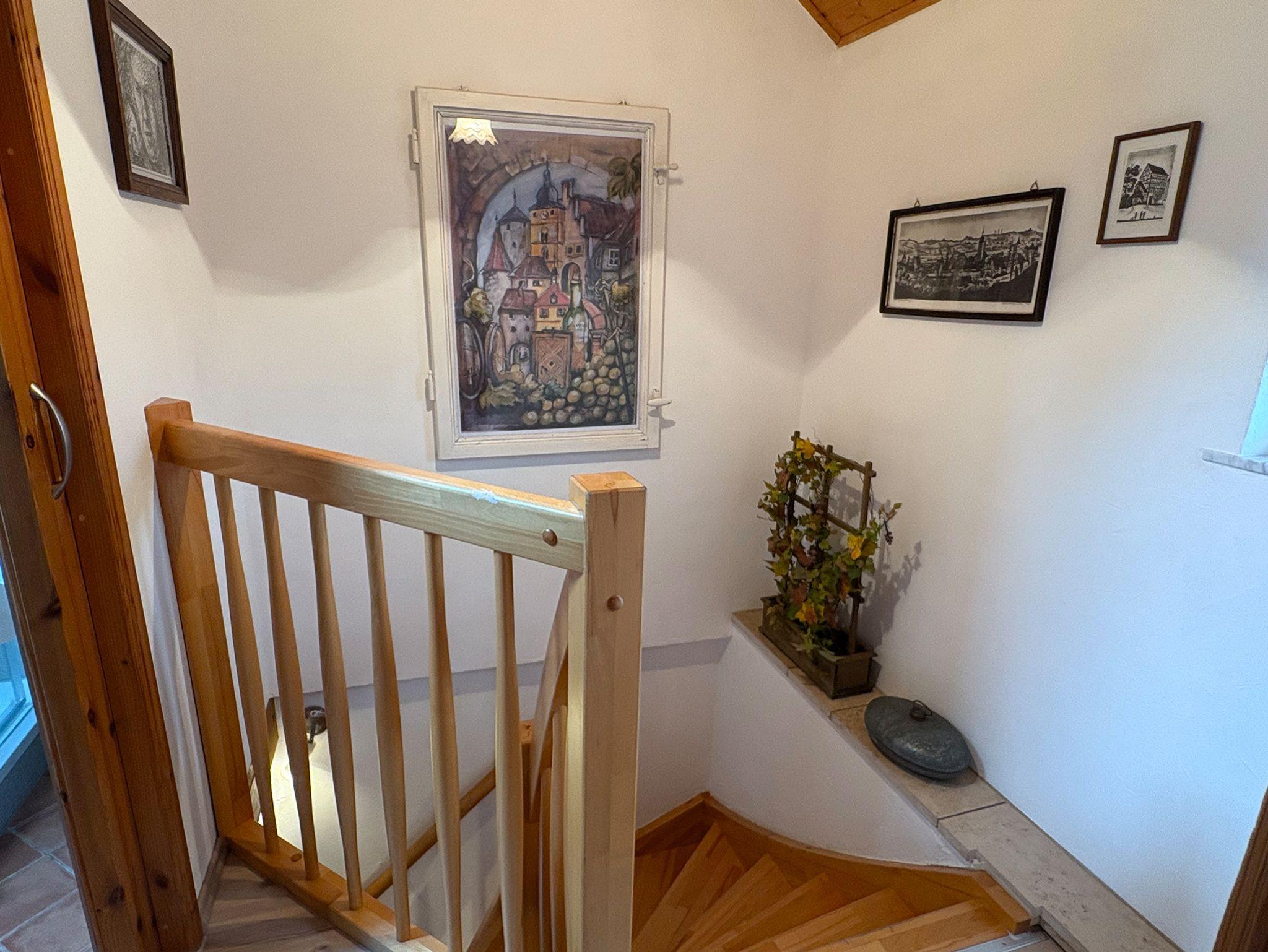 Das Emma Häusle bietet auf zwei liebevoll gestalteten Etagen alles, was Sie für einen entspannten Aufenthalt benötigen: Im ersten Stock erwartet Sie eine charmante Kochecke mit Mikrowelle, 4-Platten-Herd, Backofen, Kaffeemaschine samt Filtern, Toaster, Wasserkocher, einer feinen Gewürzgalerie sowie Spülmittel – ideal für genussvolle Kochmomente. Der angrenzende Wohn- und Essbereich lädt mit gemütlichem Schlafsofa, LED-TV, Radio, einer kleinen Bibliothek, Spielesammlung sowie praktischen Extras wie Hausapotheke, Nähset, Schuhputzzeug und Wäscheständer zum Verweilen ein. Im zweiten Stock befindet sich das behagliche Schlafzimmer mit komfortablem Bett und verstellbarem Lattenrost für Kopf- und Fußteil sowie ein kleines, aber feines Bad mit Dusche, WC, Dachfenster, Fön, Seifenspender und Kosmetiktüchern – perfekt für Ihre persönliche Auszeit im Herzen von Sommerhausen. Im Preis inbegriffen sind Bettwäsche, Hand- und Küchentücher, die Endreinigung sowie sämtliche Nebenkosten.