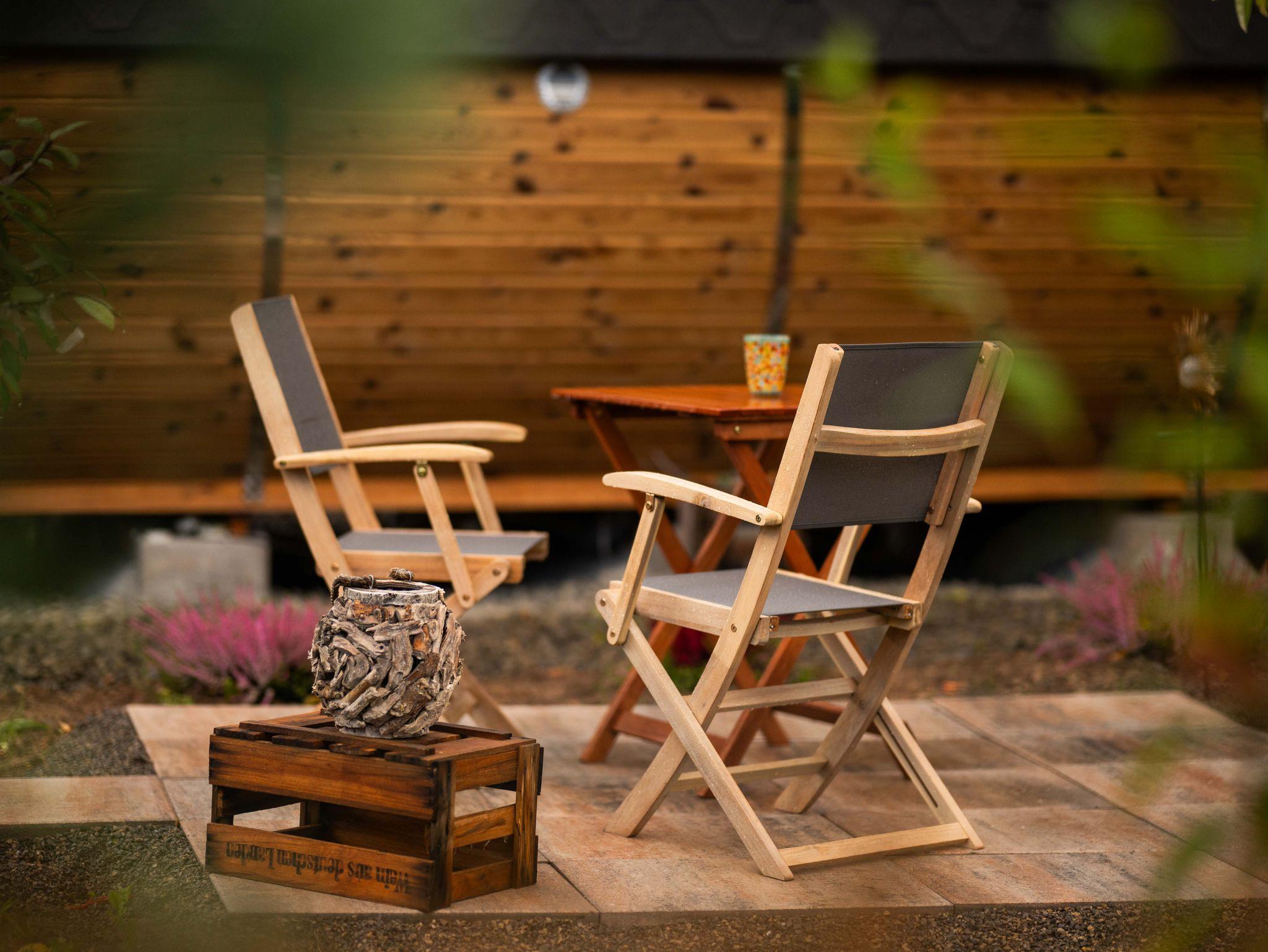Unsere gemütliche Terrasse lädt mit einem Tisch und Stühlen zum Verweilen im Freien ein. Für angenehme Temperaturen sorgen sowohl ein Ventilator als auch eine Heizung, je nach Jahreszeit. Entspannen Sie sich in der komfortablen Sitzecke und genießen Sie die Ruhe.