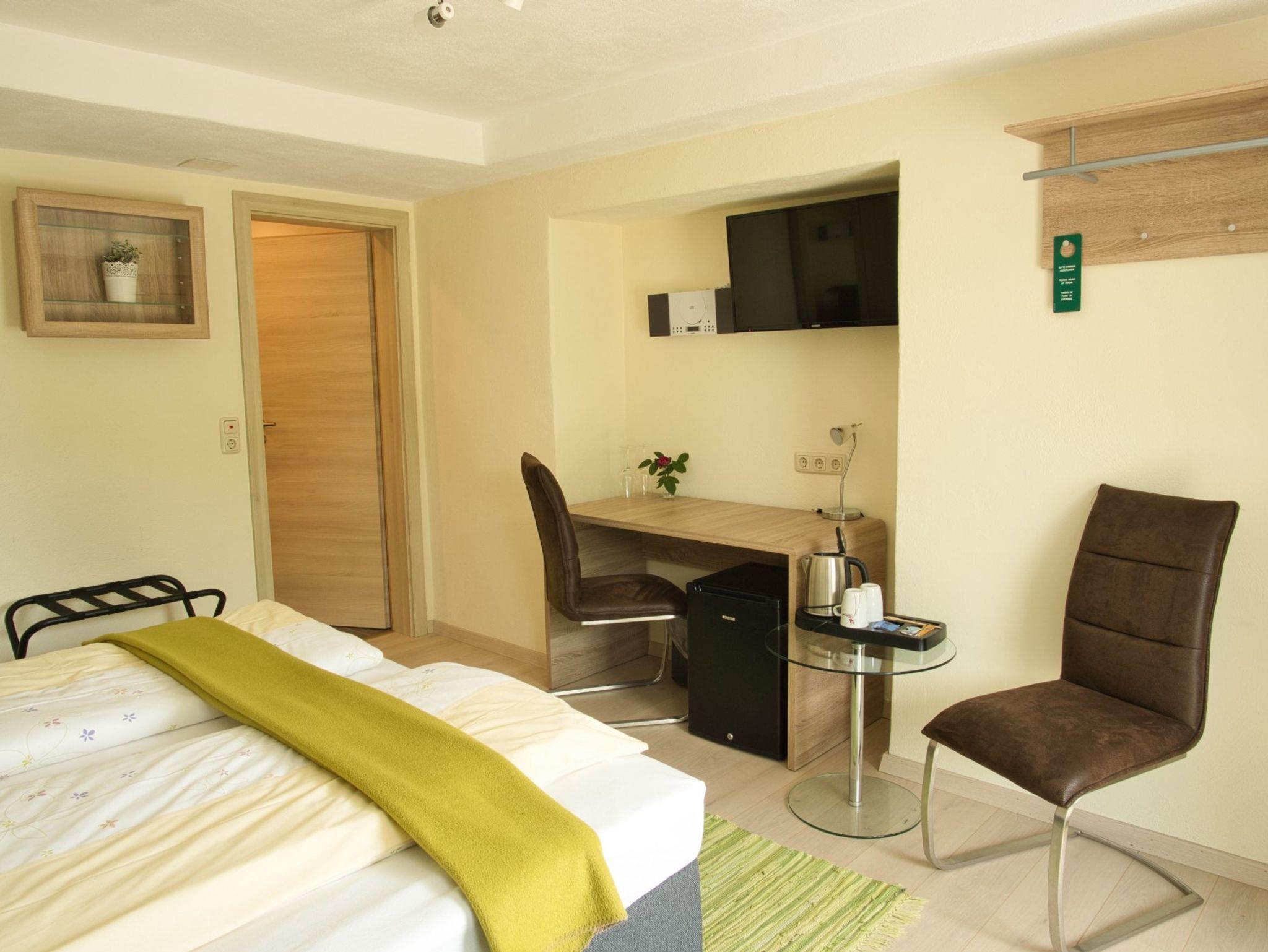 Das Doppelzimmer ist für max.2 Personen mit ca. 28m²: Schlafraum mit 1,80m Doppelbett. Ausgestattet ist es wie folgt: