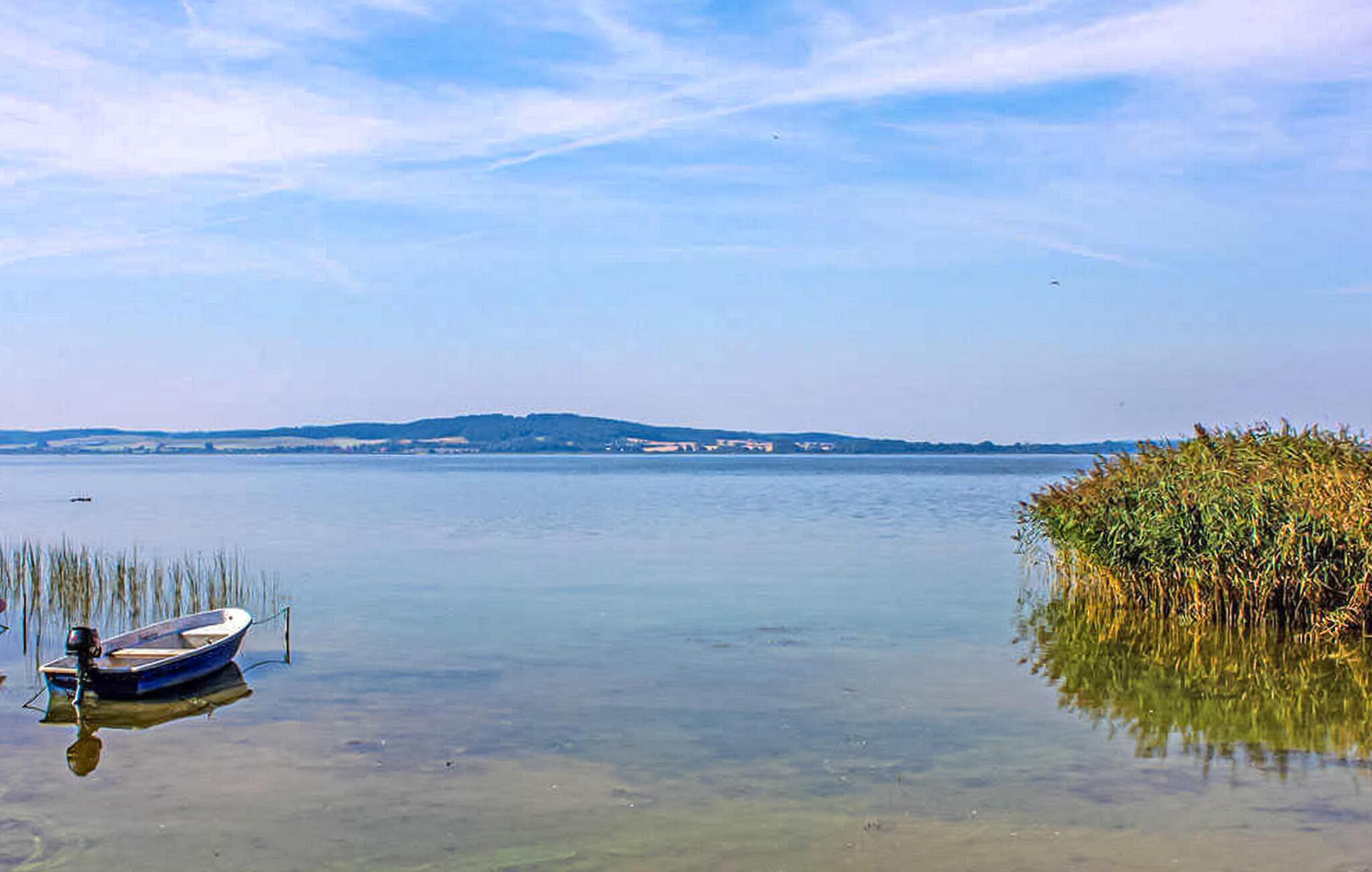 Feriekomplekset har 10 separate ferielejligheder i forskellige størrelser i rækkehusstil. Kun en lille adgangsvej adskiller komplekset fra bredden af søen Kummerow, som ligger omkring 35 meter væk, og den naturlige strand. På et samlet areal på 7.500 kvadratmeter er der forskellige siddepladser med siddepladser, liggestole og solmøbler, et bordtennisbord, bordfodbold, en grillplads, en lille legeplads med gynger, sandkasse, klatrestativ, trampolin samt som cykelrum, parkeringspladser og direkte adgang til søen Badeplads (naturstrand) og fiskemuligheder. Udlejning af cykler samt ro- og motorbåde efter aftale (mod betaling). En kanoudlejning og en surfskole ligger omkring 600 meter derfra. Der kan også vaskes i det fælles bryggers. Betales på stedet: vand og energi efter forbrug. Du kan medbringe dit eget sengetøj eller leje det på stedet mod et gebyr. Håndklæder skal medbringes. WiFi 2 EUR/dag. Kæledyr: Et kæledyr er tilladt i denne ejendom. Udstyr med: stue (polstrede møbler, fladskærms-tv, radio, cd), åbent køkken-alrum (keramisk komfur, køleskab med fryser, spisebord, diverse køkkenmaskiner), soveafdeling (adskilt fra stuen v.h.t. et gardin, dobbeltseng), lille børneværelse (køjeseng), bruser/toilet, elvarme. En fodskammel, en barneseng og en høj stol er til rådighed for børn. Der er også et privat, indhegnet område med udendørs opholdsområde og liggestole. Brug af vaskemaskine i fælles bryggers. Sommersdorf er en landlig by på den østlige bred af søen Kummerow, beliggende mellem Reuterstadt Stavenhagen og hansestaden Demmin. Restaurant og strand i byen. Regionen er særlig attraktiv for cyklister, vandrere og vandvandrere på grund af det unikke landskab i Mecklenburg Lake District og Lake Kummerow.