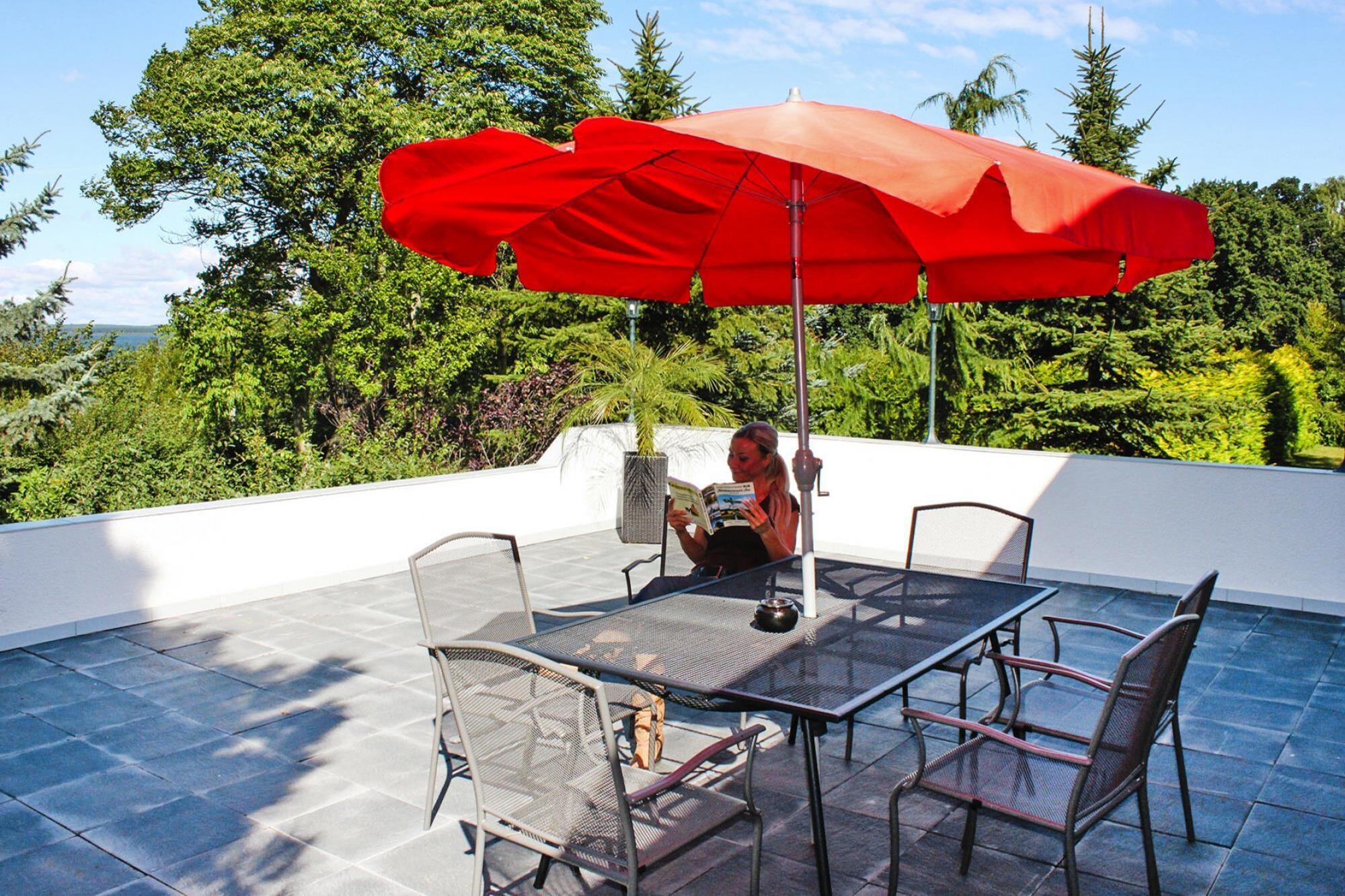 Beliggende i et familievenligt feriekompleks, kun 50 meter fra den naturlige strand, venter dette kærligt renoverede rækkehus på afslappende dage. Takket være sin generøse planløsning og åbne planløsning kan op til seks voksne og to børn føle sig helt hjemme. Det rummelige køkken-alrum tilbyder også mange praktiske redskaber, der gør det til en fornøjelse at lave mad sammen. Den hyggelige pejs inviterer også til romantiske aftener. Tre soveværelser og to badeværelser garanterer behagelig privatliv. En legeplads med gynger, gyngedyr, trampolin, bordtennis, bordfodbold, volleyballbane, sandkasse og klatrestativ giver masser af underholdning for de yngste feriegæster. Kaninindhegningen, hvor man kan fodre og kæle med, er også et højdepunkt for de yngre gæster. Vores tip til lystfiskere og udflugtselskende gæster: Både – med og uden motor – ligger fortøjet lige ved vandet og kan lejes på stedet for at udforske søen. Jeres ferieregion – Mecklenburgs søendistrikt – er et idyllisk miljø, der ikke kun er en sand fryd for øjnene, men også byder på et væld af sports- og fritidsmuligheder for aktive feriegæster. Kummerow-søen ligger mellem byerne Malchin, Dargun og Demmin. Det er den fjerdestørste sø i Mecklenburg-Vorpommern og den ottendestørste i Tyskland. Landsbyen Kummerow ligger godt fem kilometer væk, og byen Malchin med sin fremragende infrastruktur ligger omkring tolv kilometer væk. Aktiviteter i nærheden: Du kan leje cykler direkte fra komplekset (mod betaling) og for eksempel tage på en fire timers cykeltur rundt om Kummerow-søen. Du vil ikke kun opdage charmen ved det blidt bølgende landskab i Mecklenburg-Schweiz, men sørg også for at tage en pause i Malchin (omkring tolv kilometer væk). Ud over den smukke markedsplads og den naturskønne Deutsche Allée venter der dig adskillige monumenter, kirker og et museum. Kano- og kajakfans bør tage en afstikker til Peene-floden, hvor enhver feriegæst vil være begejstret for at udforske den stort set uberørte natur fra vandet.