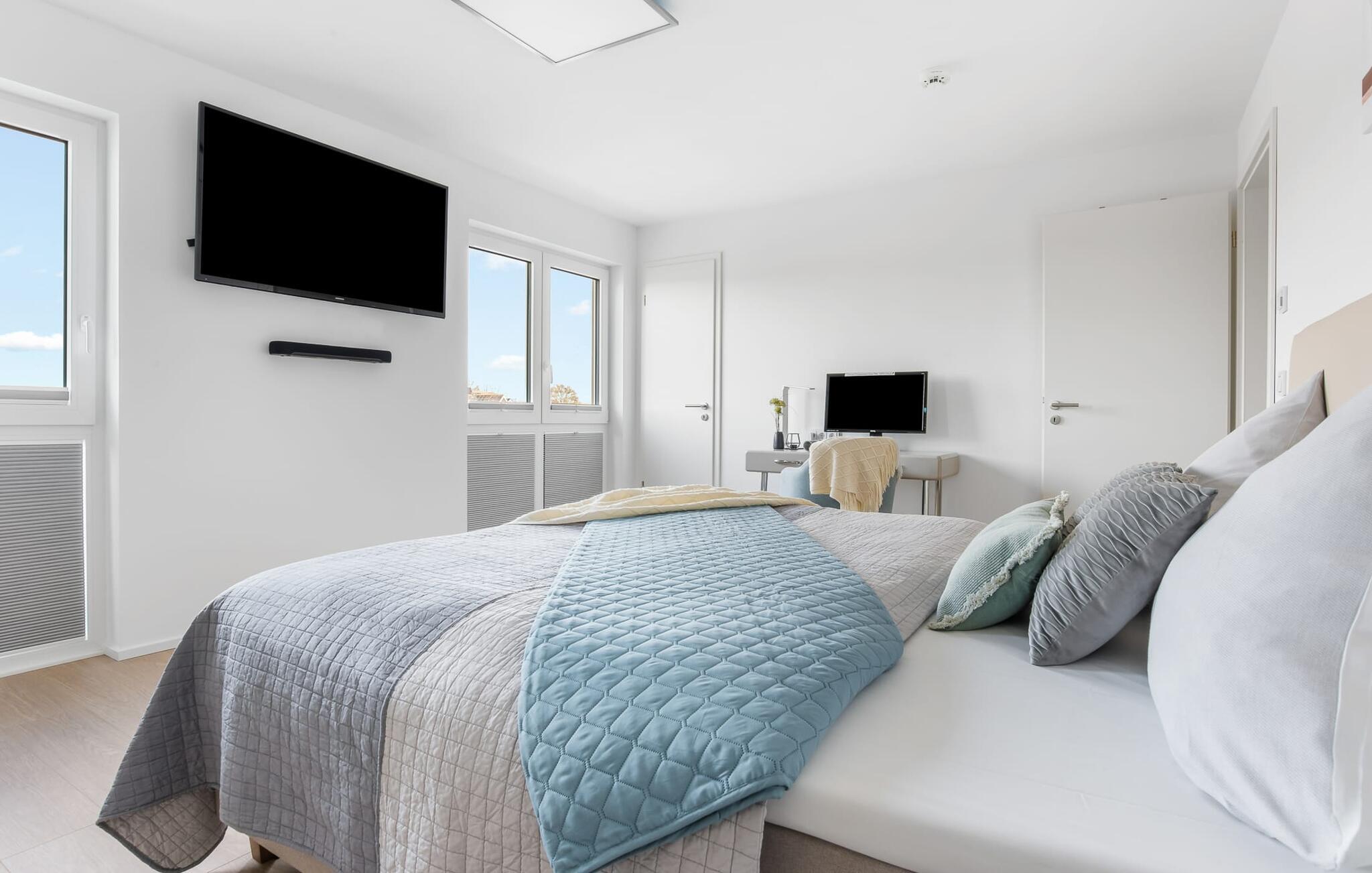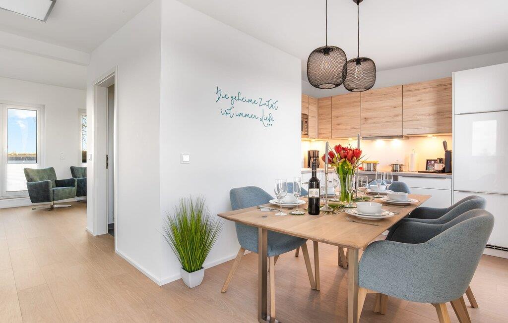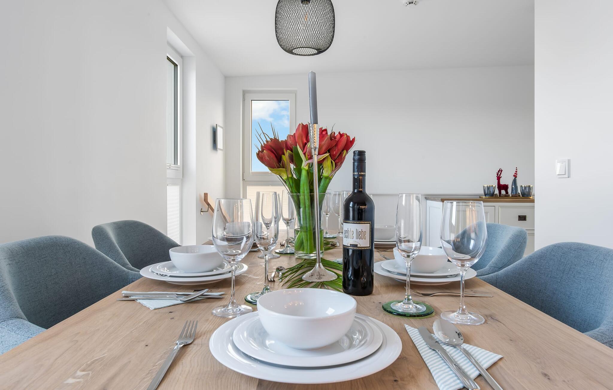 SOMMERWIND er en rummelig og rummelig maisonette ferielejlighed på 1. og 2. sal med direkte udsigt til de naturbevarende strandenge og marker. Sandstranden Weidefelder med kiosk, restaurant og strandstole ligger i gåafstand og er et attraktivt rejsemål på alle tider af året. Minigolfbanen med maritimt tema ligger også i umiddelbar nærhed og glæder både store og små. Når I træder ind i ferielejligheden på første sal, begynder nedbremsningen fra allerførste øjeblik. I er direkte i afslapningsområdet i SOMMERWIND. Lejlighedens tre soveværelser er placeret på denne etage. Uanset hvilket soveværelse I vælger, kan I være sikker på en afslappende søvn. Hvert af soveværelserne er udstyret med et fjernsyn. I det store soveværelse inviterer en stor dobbeltseng til at drømme. Skal I arbejde på en eller to småting, mens I er på ferie, er det nemt muligt her, da I finder et stort skrivebord med en ekstra skærm. Der er også et soveværelse med en lille dobbeltseng til rådighed. Det tredje soveværelse inviterer jer til at sove godt med to enkeltsenge. På denne etage er der også et veludstyret badeværelse med bruser i gulvniveau og infrarød sauna. En oase af velvære, der sikrer afslapning i hver sæson. En gang på anden sal lever SOMMERWIND op til sit navn. Her bydes I velkommen af gulv-til-loft vinduesfronten med den tilstødende terrasse med strandstol og udsigt til de naturbeskyttede strandenge. At komme ind og straks føle sig hjemme er én ting. At slappe af i den hyggelige opholdsstue, nyde naturens fred og ro ud af vinduet eller se tv er ren afslapning og afslapning! Der er også en in-house Netflix-adgang og en Bluetooth-boks til jeres underholdning. I den kolde årstid giver pejsen hyggelige timer. Med få enkle trin kan opholdsrummet omdannes til et ekstra soveplads (1,40 mx 2 m). Takket være den højkvalitets lamelramme kan I sove her, som I er på cloud nine. Det integrerede køkken er perfekt udstyret, og det er sjovt at lave mad sammen. Så nyd de færdige lækkerier på terrassen eller start en hyggelig grillaften... Det er ren ferie. Direkte fra opholdsområdet kommer man ind på den store terrasse med syd-vest orientering. Vender mod bagsiden med udsigt til de naturbevarende strandenge, marker og havet, er hyggelige timer garanteret. Et andet komplet badeværelse med badekar runder ideelt set hele pakken af til en afslappende ferie. Foran ferielejligheden finder I jeres egen parkeringsplads. Vores foretrukne sted: at se ud over markerne på terrassen og nyde SOMMERVINDEN... Bemærk venligst: OstseeResort Olpenitz er meget populært, og der bygges fortsat i parken. Ikke desto mindre kan I se frem til en 5-stjernet standard og et førsteklasses ophold. Byggeaktiviteterne kommer ikke til at forstyrre jer på ferien, og derfor gives der ikke yderligere afslag i prisen.