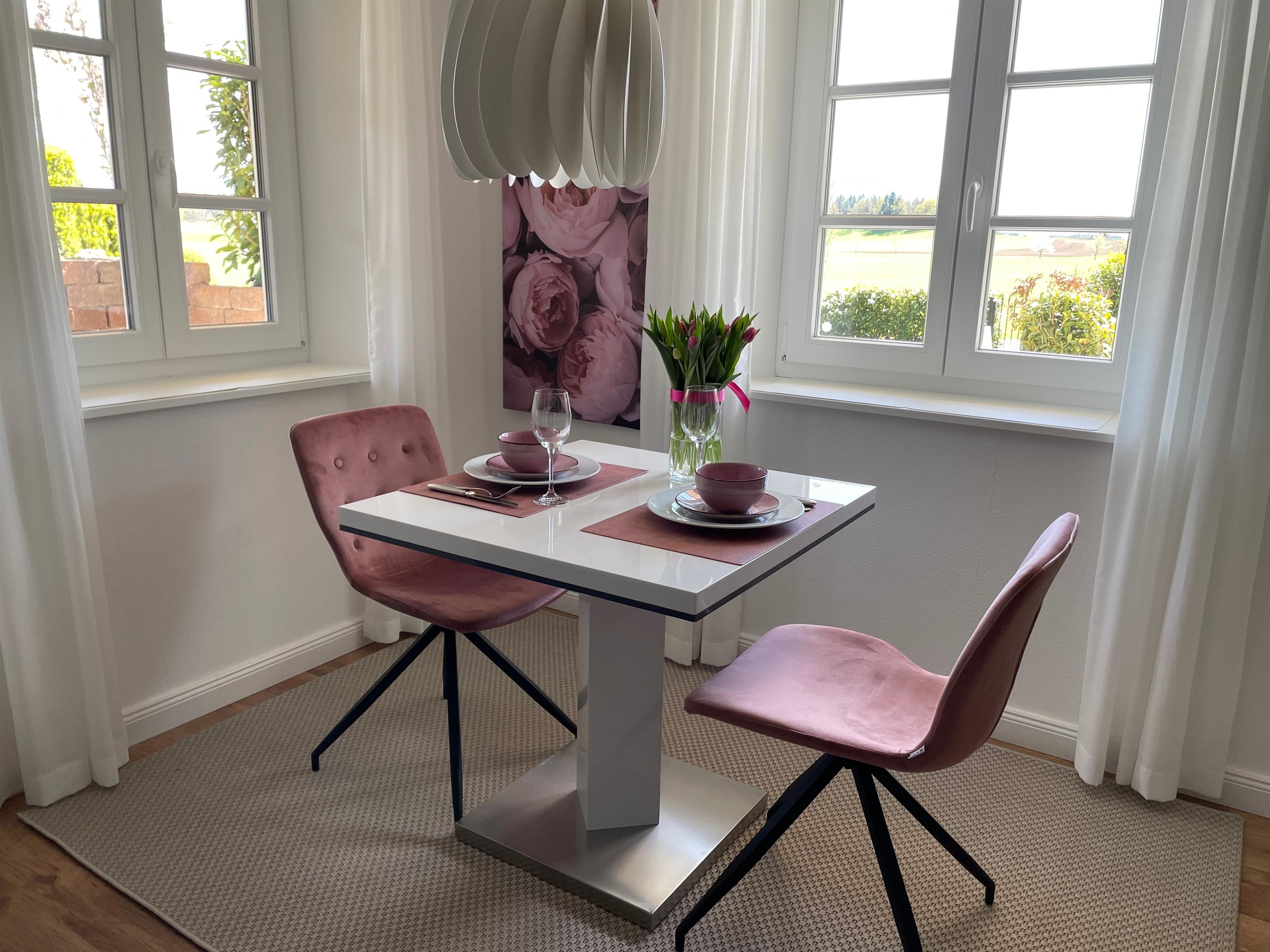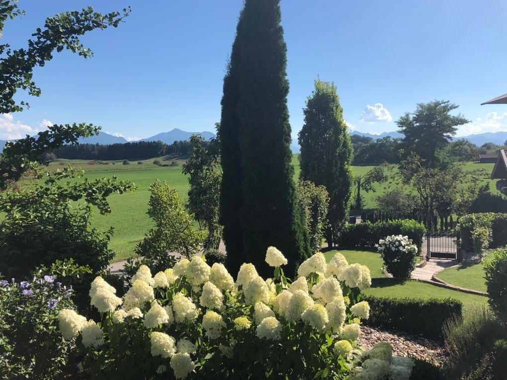 mit herrlichem Blick auf die umliegenden Berge, wie bspw. dem Wilden Kaiser, Hochgern, Hochfelln, Kampenwand und Watzmann. Je nach Wetter, Blüten-/Blätterstand können Sie dies täglich geniessen.