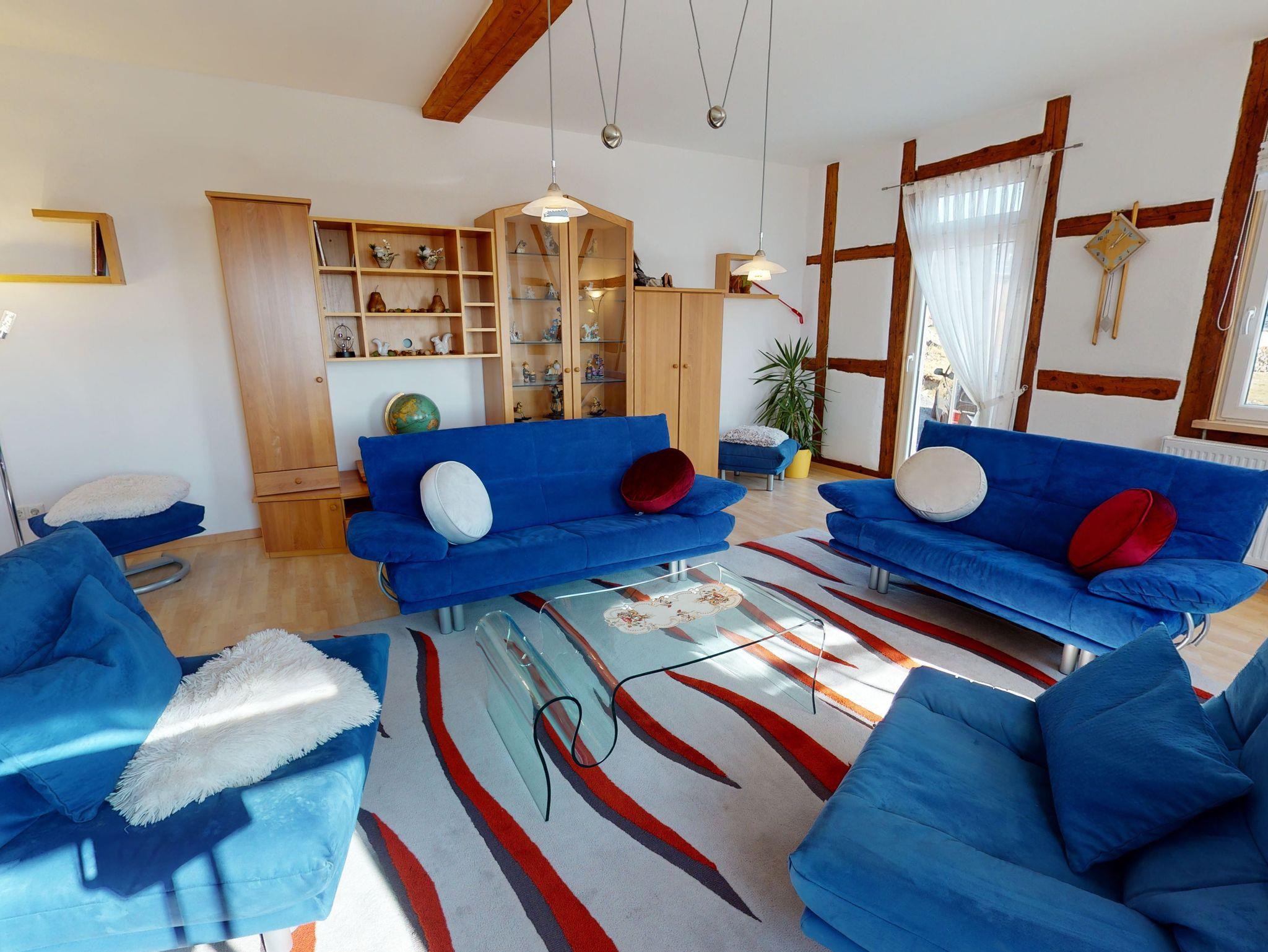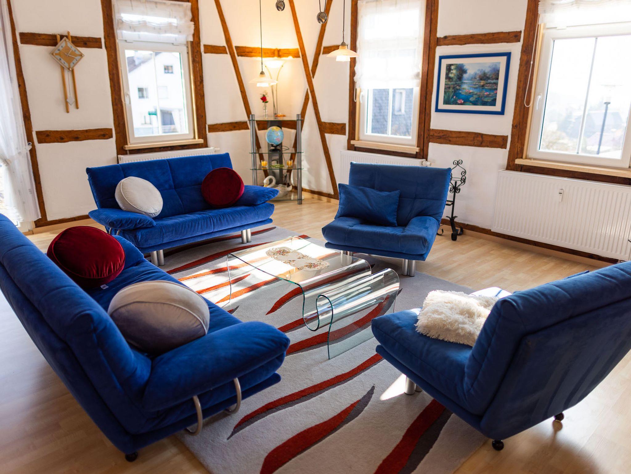 Das modern eingerichtete Wohnzimmer, mit 2 Couchen, 2 Sesseln und Designer Tisch, sowie ein Smart TV ( 65 Zoll ) und Sound Bar laden zum gemütlichen verweilen ein.