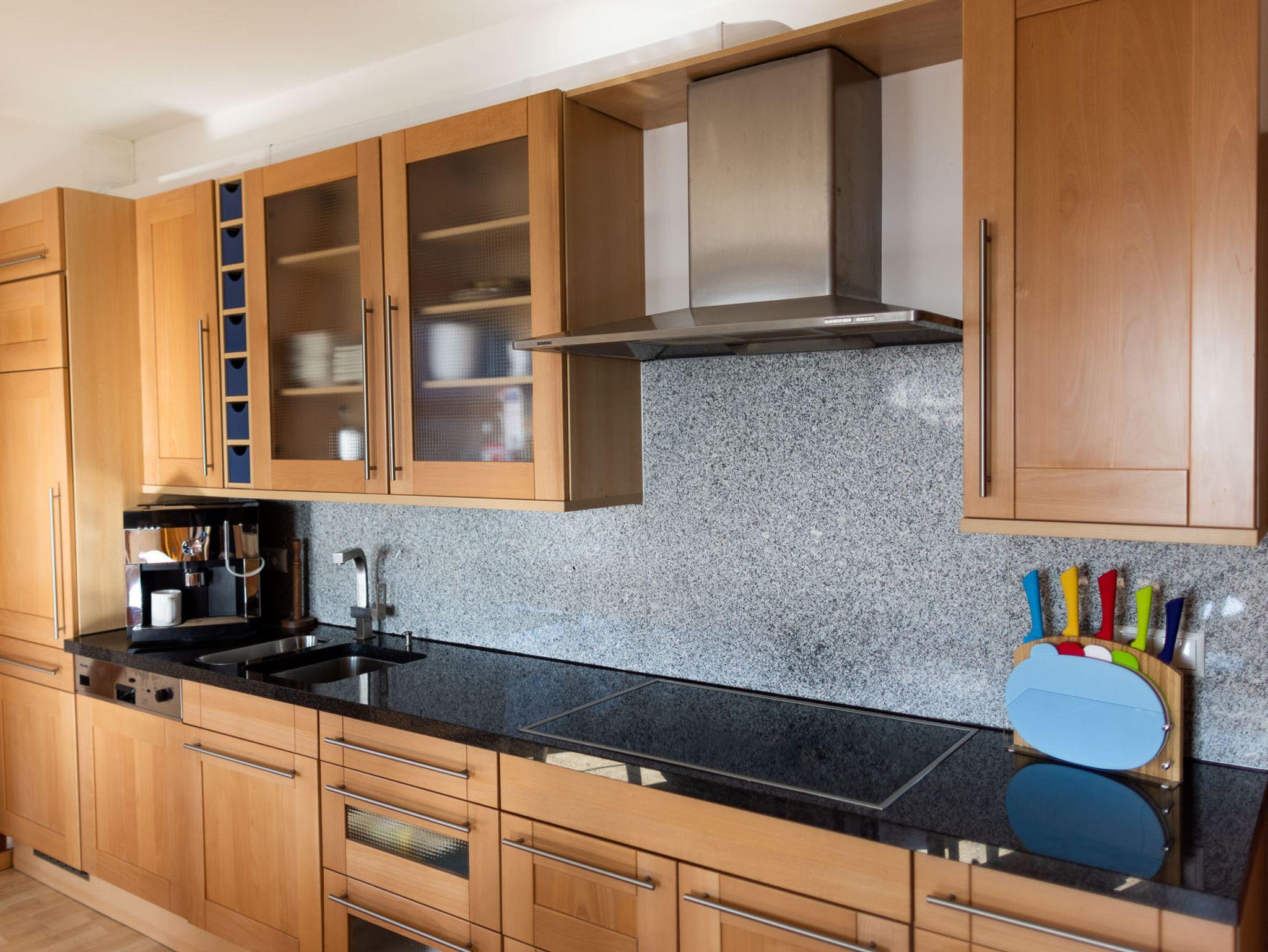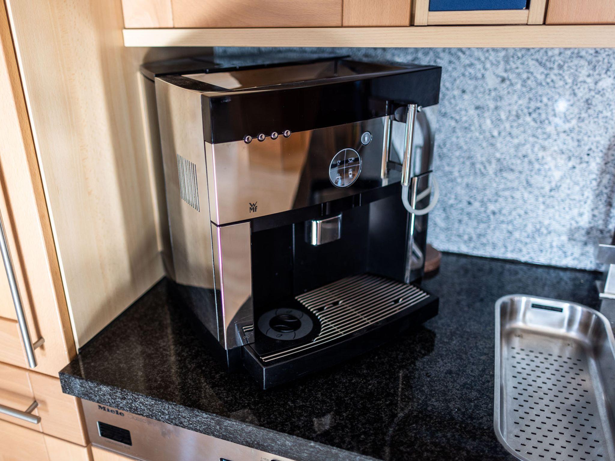 Die komplett ausgestattete Küche mit Backofen, Cerankochfeld, Mikrowelle, Kaffee-Vollautomat von WMF, Kühl-Gefrier Kombination mit separatem Flaschenkühler und Spülmaschine mit integriertem großen Essbereich läßt keine Wünsche offen.