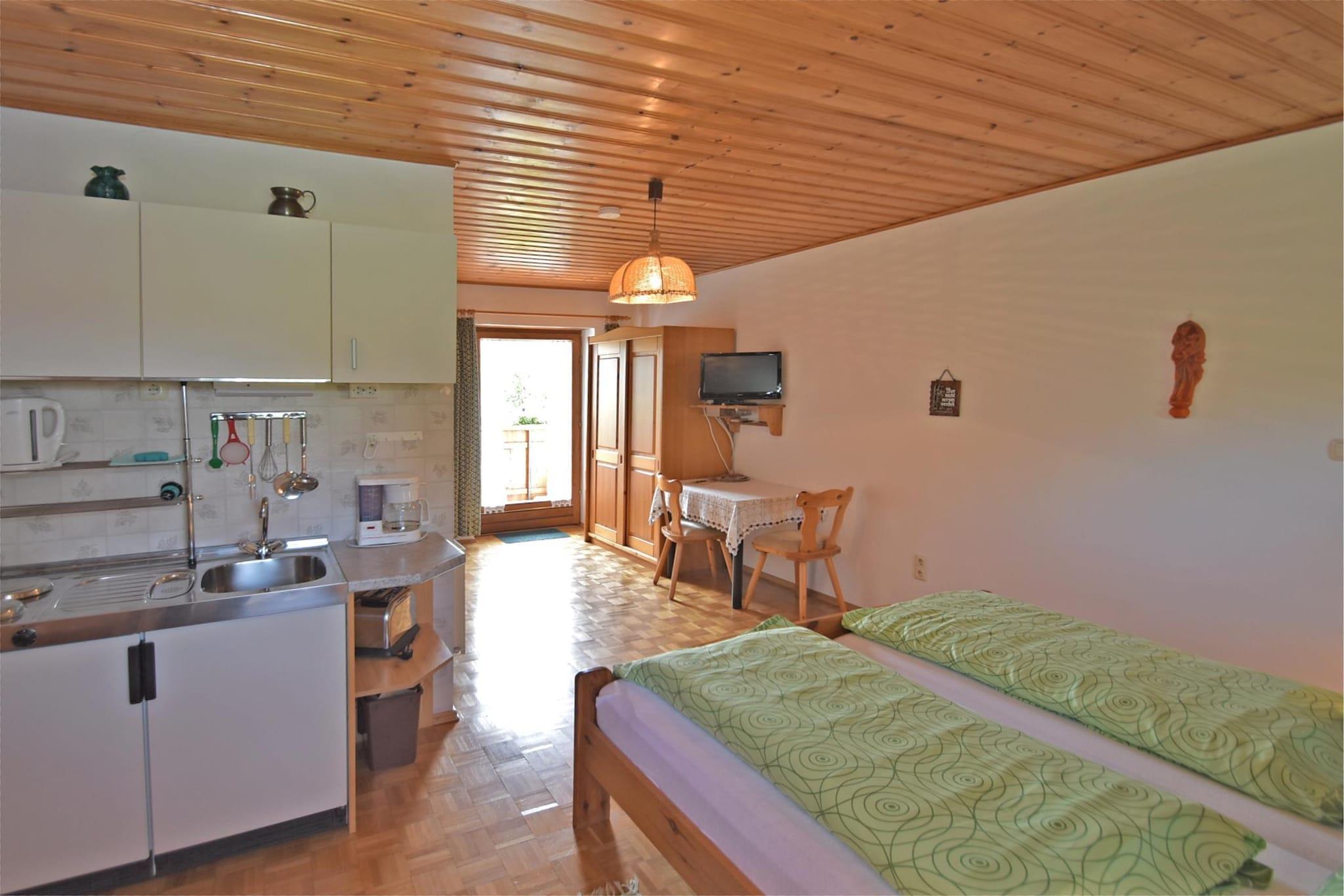 Denne kæledyrsvenlige lejlighed på første sal i Sonnen tilbyder et hyggeligt ophold for par eller små familier. Det har et soveværelse med dobbeltseng, et opholds-/soveområde med endnu en dobbeltseng, satellit-tv, spisebord og radio samt et kompakt tekøkken med to kogeplader, kaffemaskine og køleskab. Badeværelset har bruser, og en privat balkon tilføjer et fredeligt udendørs touch. Centralvarme sikrer komfort hele året rundt. Gæsterne har adgang til fælles faciliteter, herunder en have med møbler, kulgrill, dam, sandkasse og legeredskaber. Underholdningsmuligheder bugner med bordtennis, bordfodbold, billard og et fodboldmål. En barneseng, høj stol, strygebræt og fælles vaskefaciliteter tilføjer bekvemmelighed, mens privat parkering og cykelopbevaring gør det ideelt for aktive rejsende. I nærheden kan du vandre den magiske Saußbachklamm-kløft, cykle den naturskønne Adalbert-Stifter-Radweg, eller bestige Oberfrauenwald-udsigtstårnet for at få panoramaudsigt. Til spisning kan du prøve Gasthof Süss for østrigske specialiteter, Restaurant Johanns for det eksklusive tyske køkken eller Berggasthof Dreisessel for solide bayerske retter med udsigt over bjergene. Med skovstier kun 1 km væk, er denne lejlighed en perfekt base for din bayerske flugt.