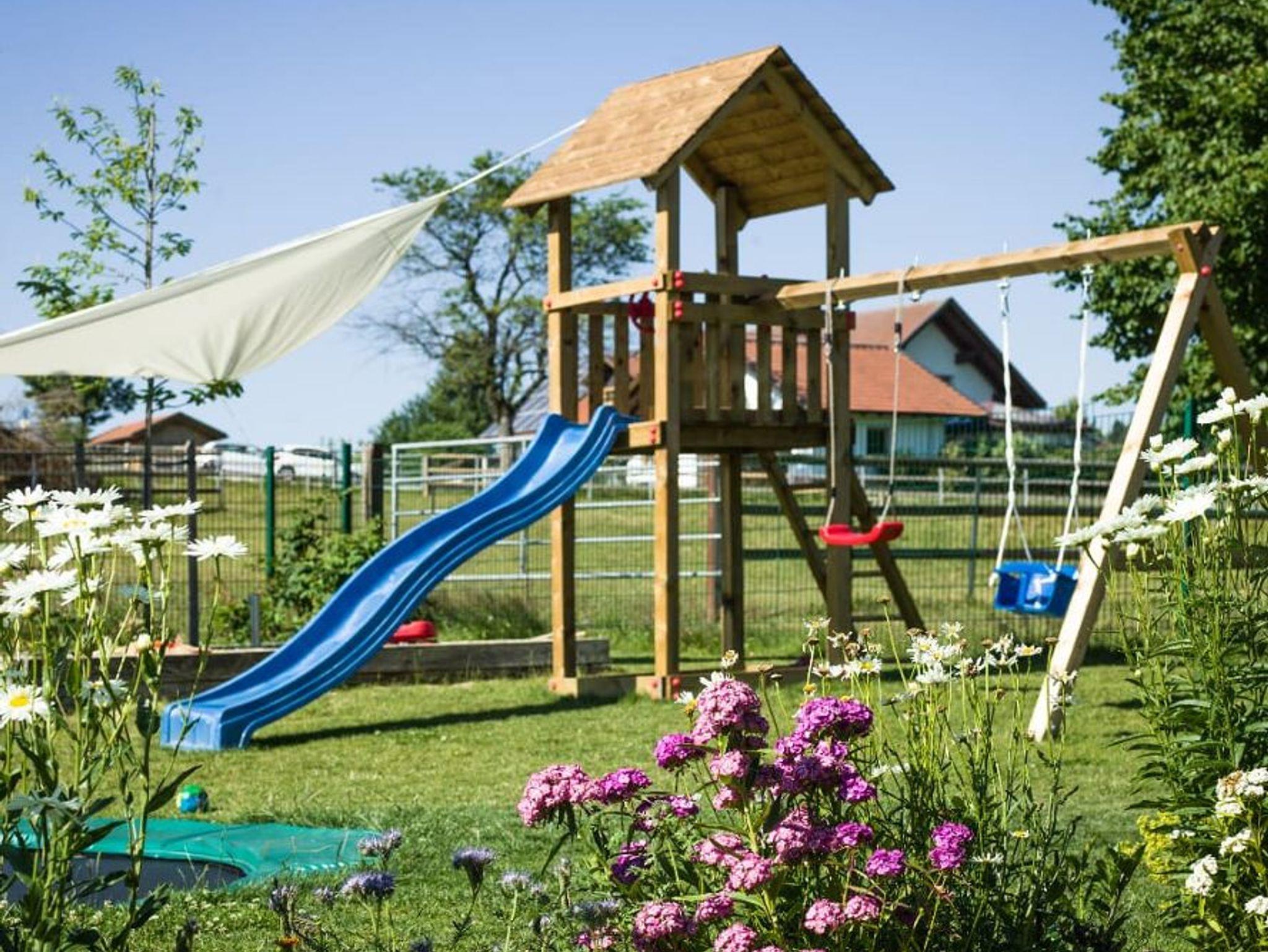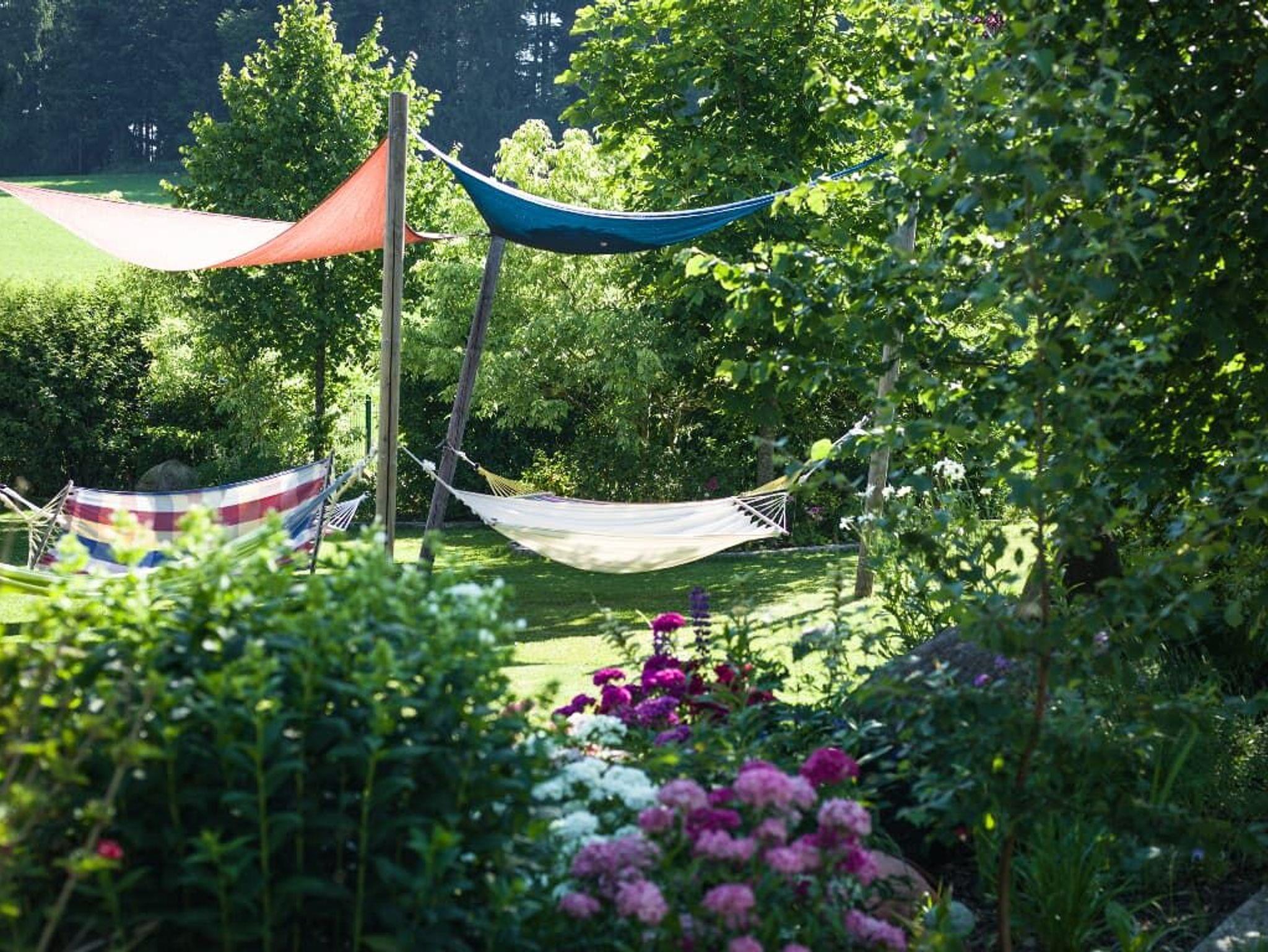 Der große Garten lädt Jung und Alt zum Spielen und Herumtollen ein. Der Kinderspielplatz mit Rutsche, Schaukel, Trampolin und unser Streichelzoo mit Reitmöglichkeit lässt alle Kinderherzen höher schlagen. Auf unsere großen Gäste warten gemütliche Liegestühle, Hängematten und eine große Liegewiese, die zum Relaxen und Sonnenbaden einladen.