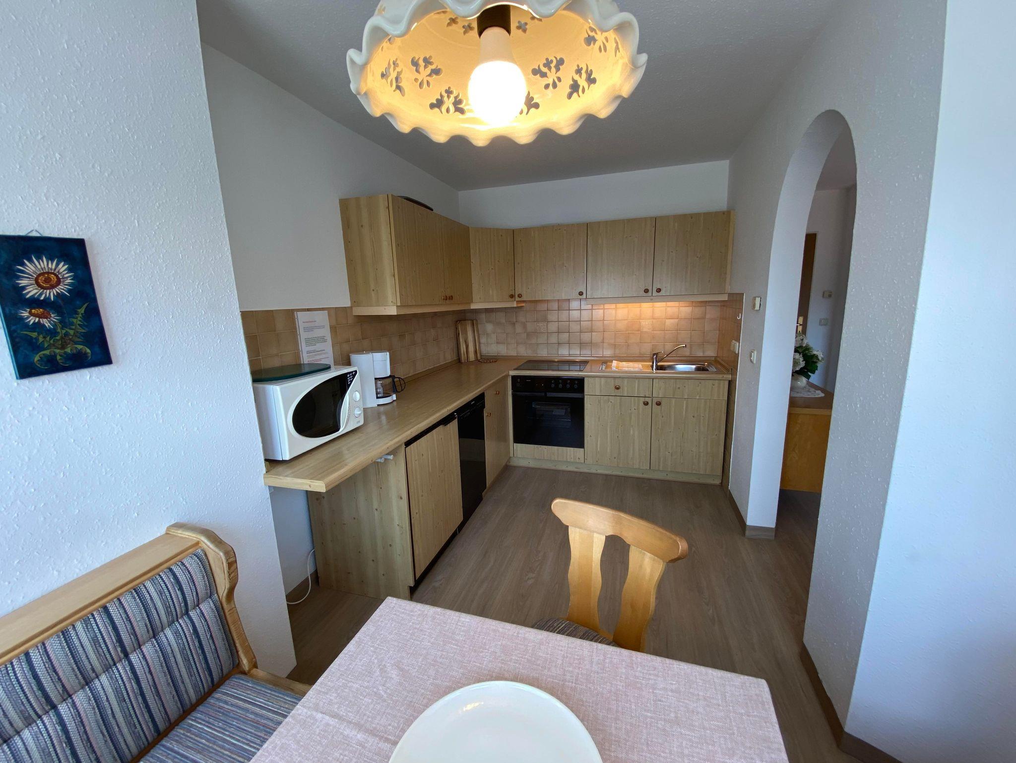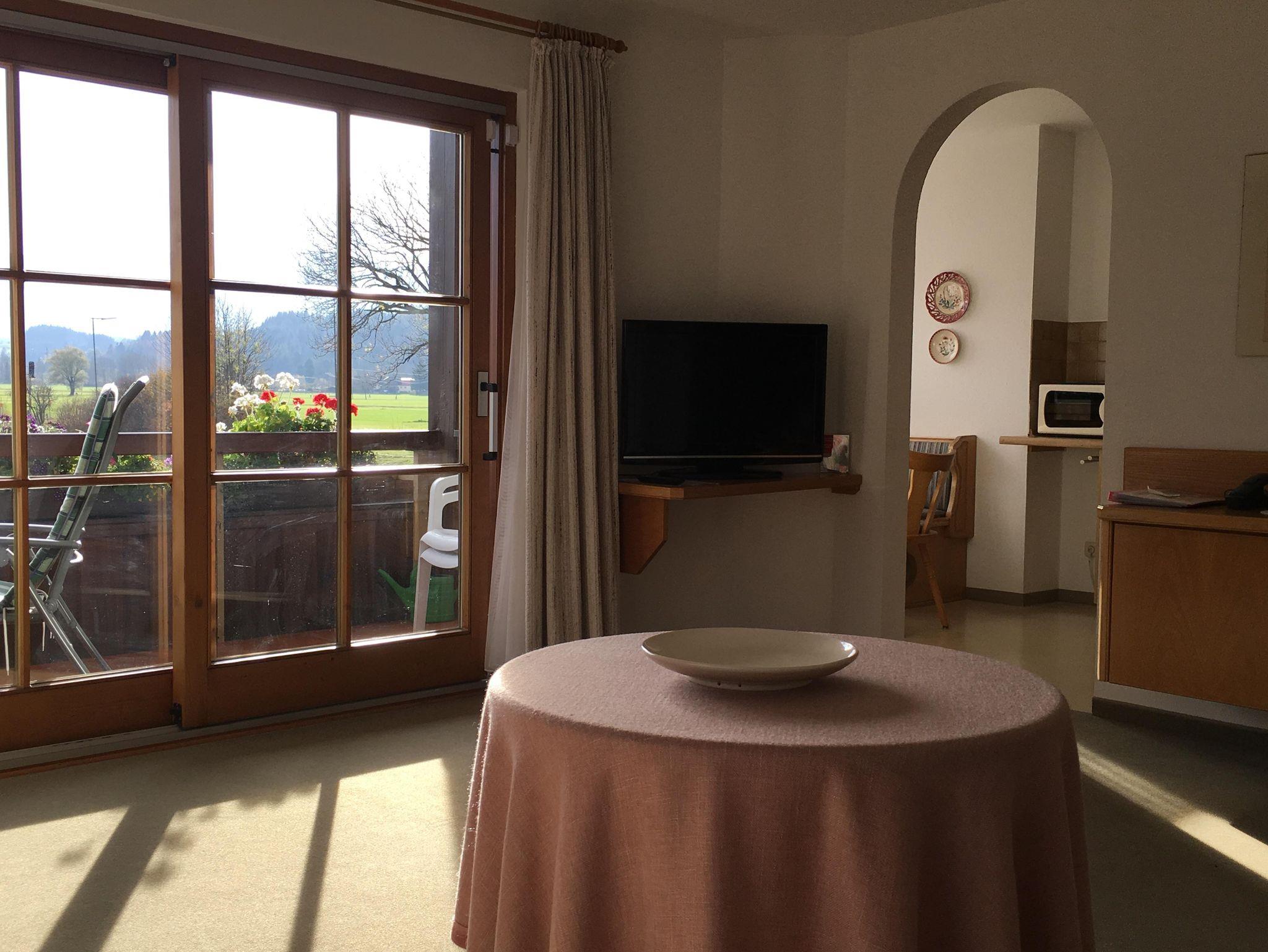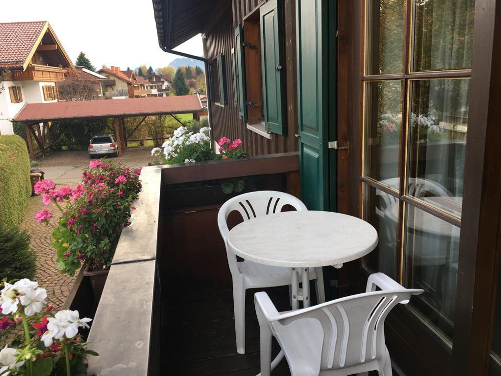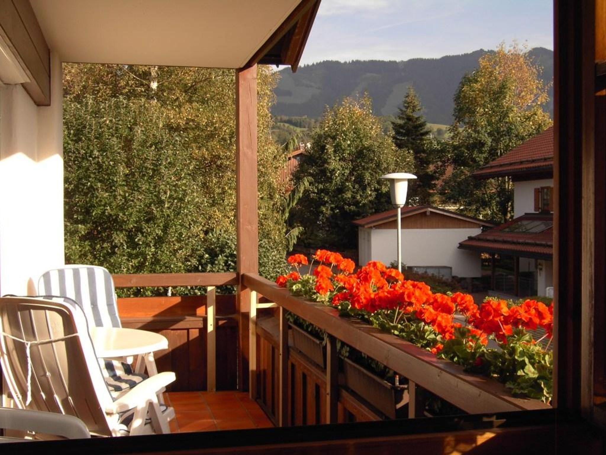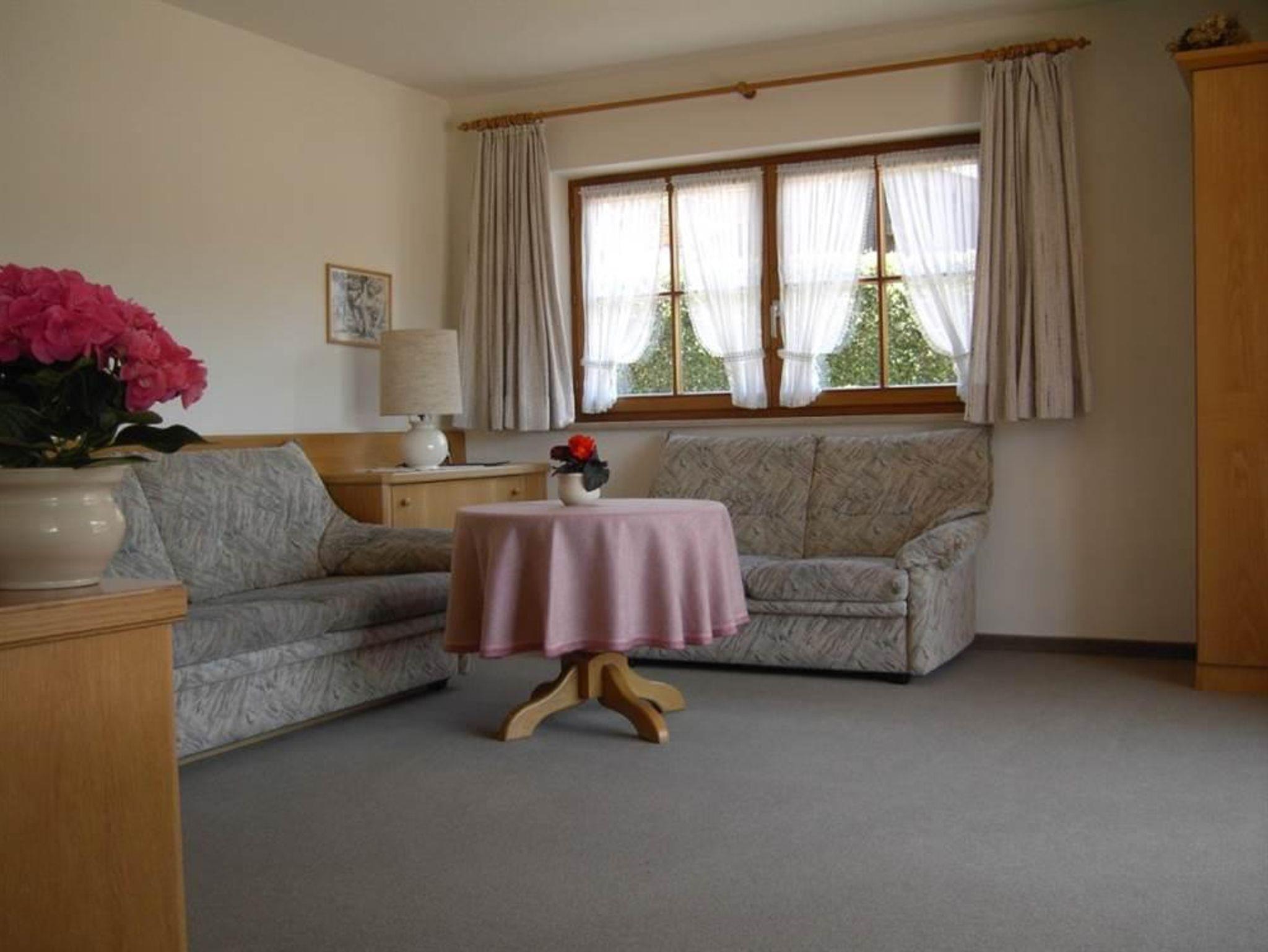 Mit traumhafter Bergsicht und urgemütlichem Südbalkon ist die schöne Wohnung, sie verfügt über ein großes Wohnzimmer mit breiter Schiebetüre zum Balkon, die Polstermöbel im Sitzbereich bestehen aus 2er Sofa und 3er-Sofa (Ausziehsofa), Tisch, Schrank und Fachbild-TV, daneben ist die Küche mit Einbauküche (Spülmaschine) und gemütlichem Erkeressbereich, das Schlafzimmer hat Doppelbetten, Kleiderschrank und Schreibtisch, im weissen Bad ist Wanne, Dusche, Waschbecken und WC, Flur mit Garderobe. In der Wohnung ist angenehme Fußbodenheizung. Die FeWo-Nr. 3 im EG ist gleich.