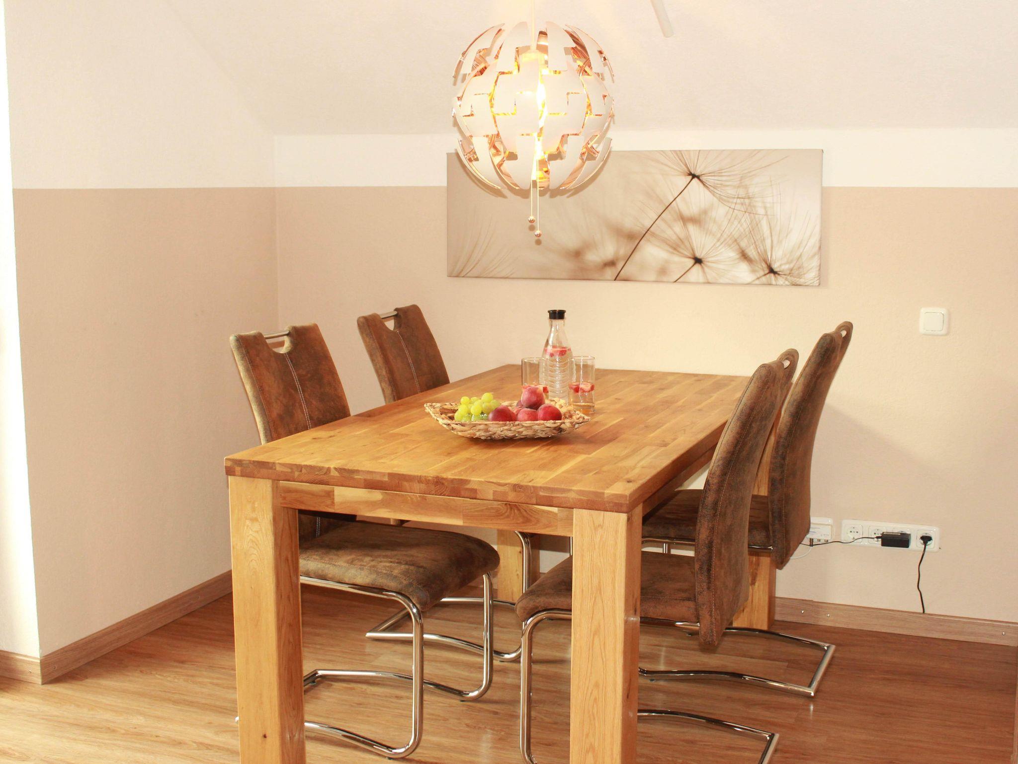 Neben einem Schlafzimmer mit Doppelbett, einem großzügigen Bad mit Dusche / WC und einer voll ausgestatteten Küche finden Sie noch ein großes Wohnzimmer mit gemütlicher Wohnlandschaft. Dazu gibt es in der Dachschräge ein kleines Kinderzimmer mit einem ausziehbaren Bett für bis zu zwei Kinder. Selbstverständlich ist unsere Ferienwohnung mit einem Flat-Screen-TV ausgestattet.
