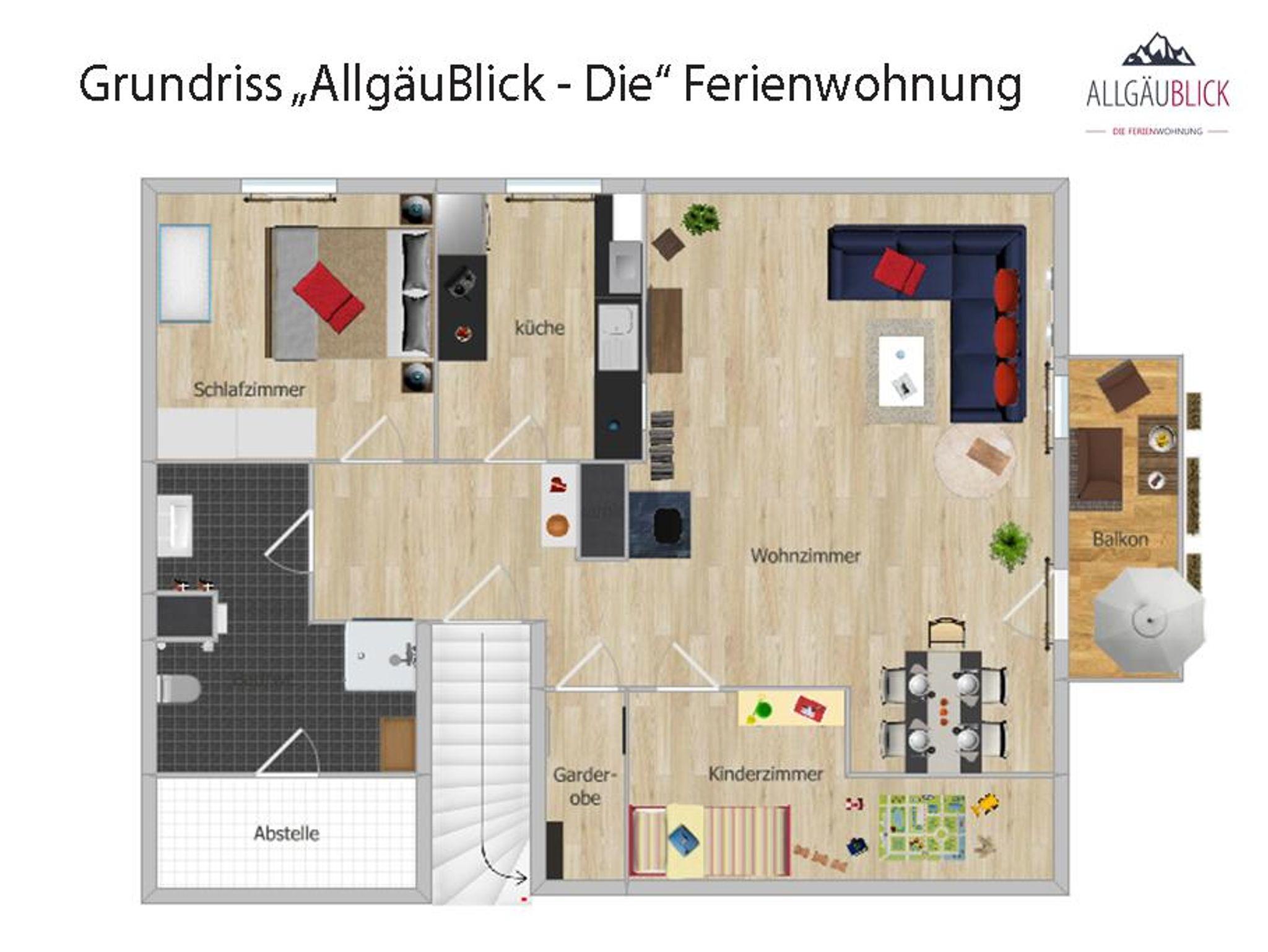 AllgäuBlick - der Name sagt alles. Unsere helle und geräumige Ferienwohnung für bis zu 4 Personen und einem Kleinkind punktet vom sonnigen Balkon mit einem sensationellen Blick in die Allgäuer Bergwelt. Sie bietet mit 79m² viel Platz und befindet sich im Dachgeschoss unseres Einfamilienhauses. Ein Parkplatz befindet sich direkt vor dem Haus.