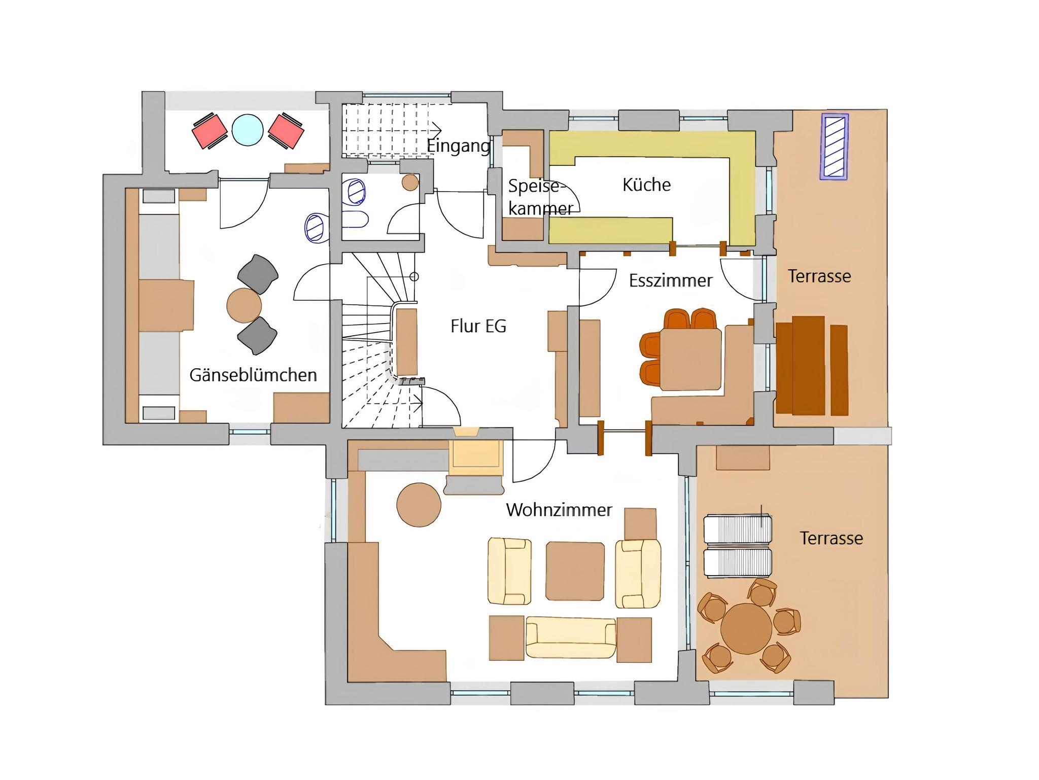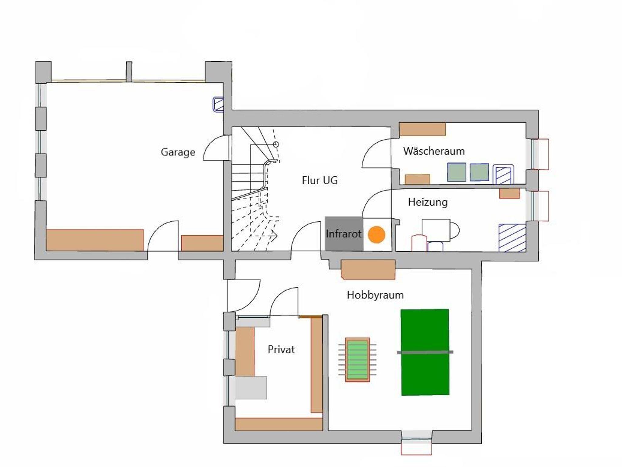 Im Keller wartet unser großer Hobbyraum auf Sie – ausgestattet mit Tischtennisplatte, Kicker und verschiedenen Spielen – ideal bei jedem Wetter. Zusätzlich stehen Waschmaschine, Trockner und eine Wärmekabine für Sie bereit.