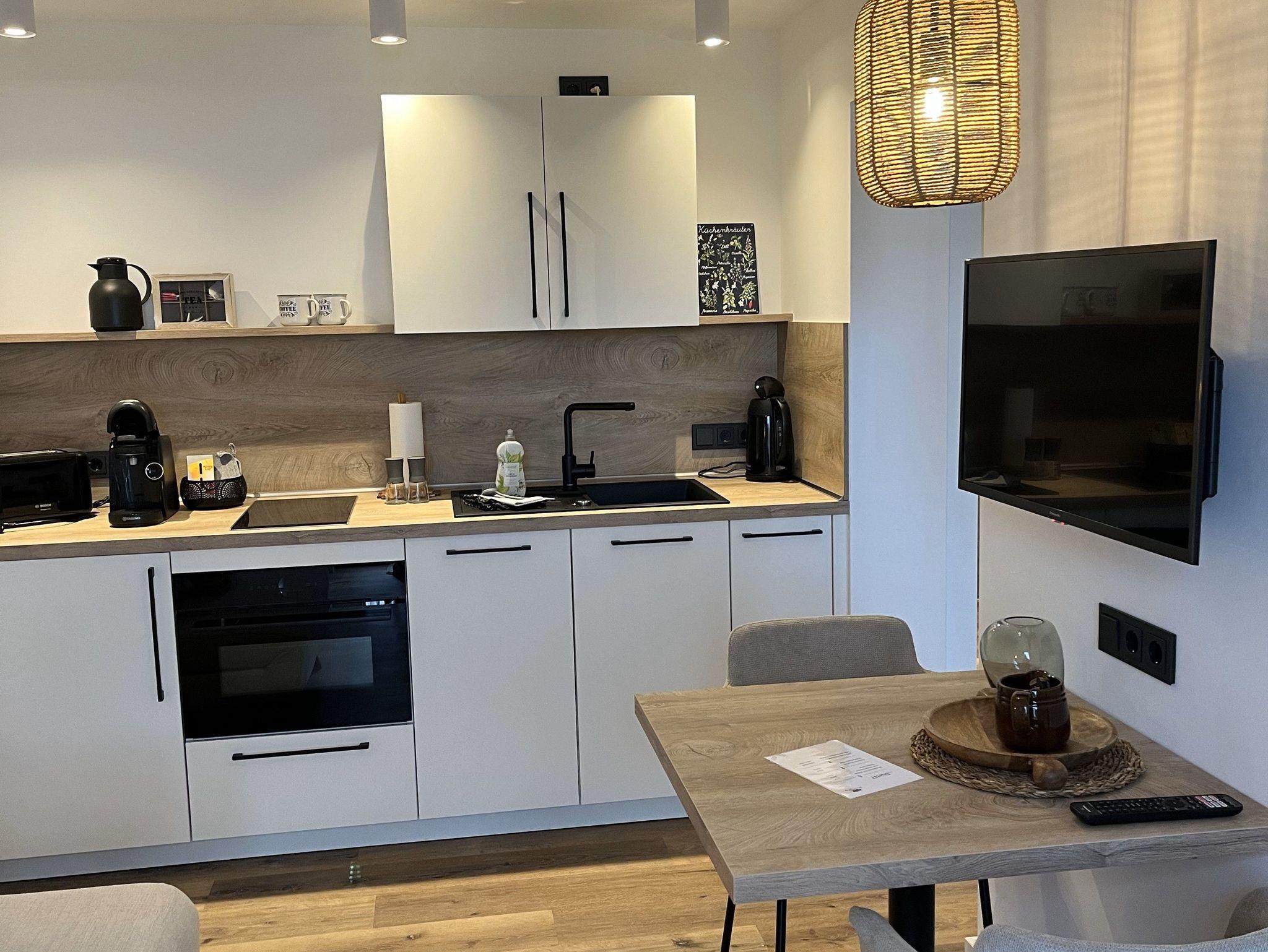 Das Dorfplatz- Appartement erwartet euch in unserem Dorfresort Wyzenborne. Das Appartement mit ca. 30 qm, barrierearm und Premium-Ausstattung: Schlafzimmer mit Boxspringbett und eingebautem Tresor. Kleine gemütliche Sitzecke mit Flat-TV und Radio, moderne Landküche mit Geschirrspüler, Bad mit Regendusche und Fön. Freies W-LAN. Terrasse vor der Wohnung. Leistungen inklusive: Bezogene Betten, Handtuchpaket, Küchenpaket (Spülmittel und Label, Tabs, Küchenrolle).
