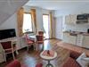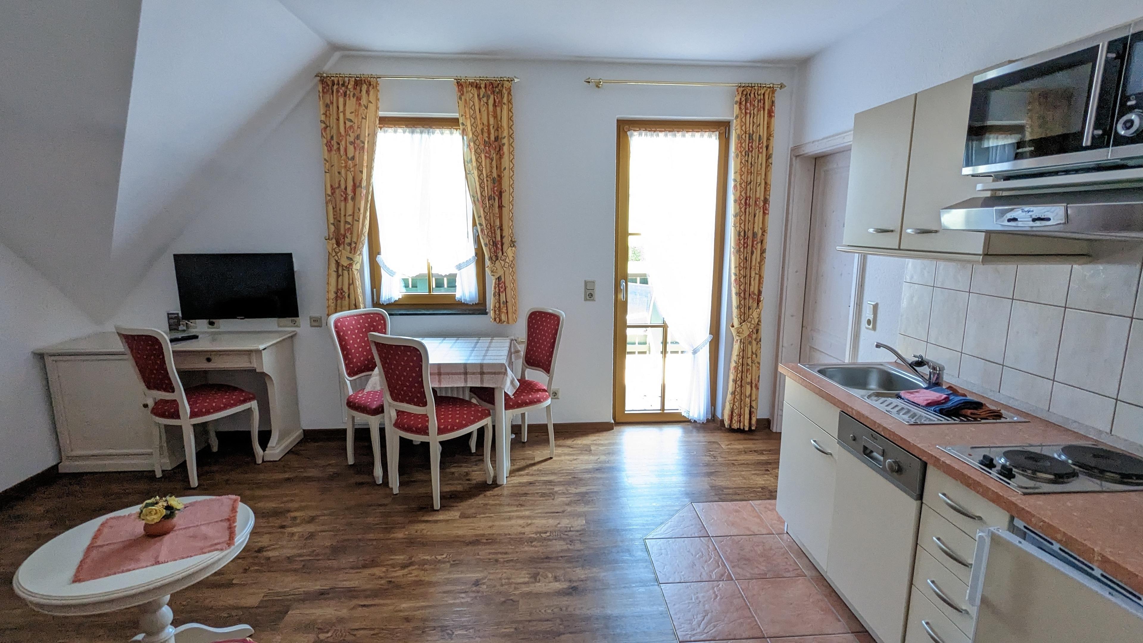 Die Wohnung "Morgen.Tau" befindet sich in der zweiten Etage. Der Wohnraum ist gemütlich im Landhausstil eingerichtet und verfügt u.a. über einen Flatscreen-TV. In der offenen Wohnküche mit Küchenzeile stehen Geschirr, Wasserkocher, Kaffeemaschine, Toaster, Geschirrspüler und ein Mikrowellenbackofen für sie bereit. Auf dem 2-flammigem Elektrokochfeld können sie sich Mahlzeiten zubereiten. Die Wohnung verfügt über zwei getrennte Schlafzimmer mit einem Doppelbett sowie einem Einzelbett.