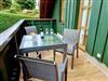 Der Balkon zeigt nach Süden und lässt einen Blick mit herrlicher Aussicht ins Tal zu. Sitzmöbel sind hier vorhanden.