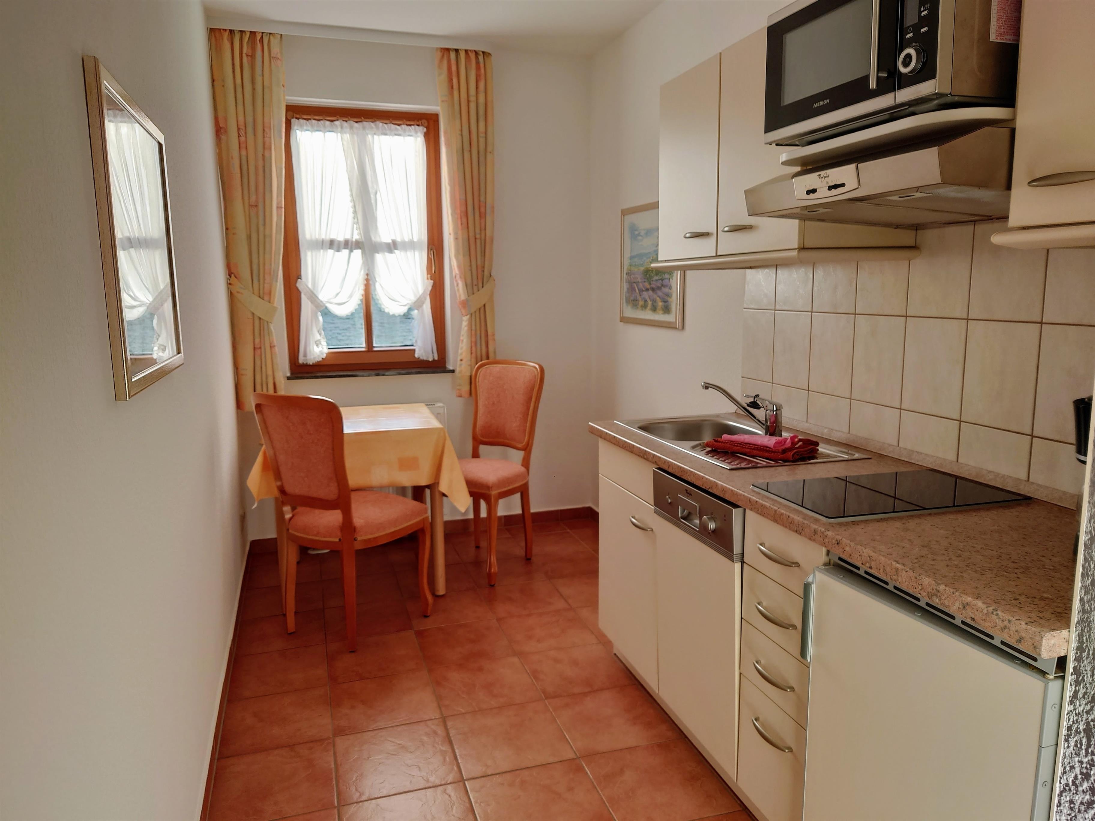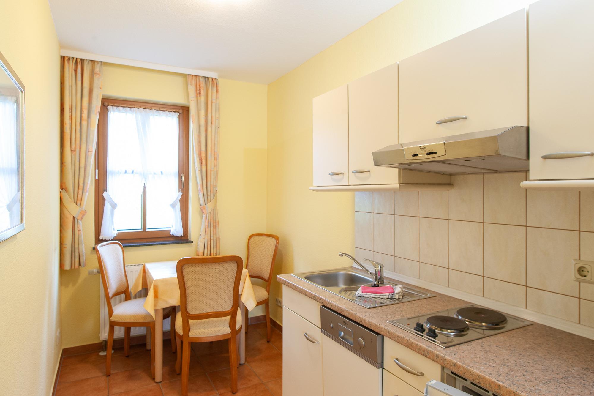 Die Wohnung "Sonnen.Tanz" befindet sich in der ersten Etage. Der Wohnraum ist gemütlich im Landhausstil eingerichtet und verfügt u.a. über einen Flatscreen-TV. In der separaten Küche mit Essecke stehen Geschirr, Wasserkocher, Kaffeemaschine, Toaster, Geschirrspüler und ein Mikrowellenbackofen für sie bereit. Auf dem 2-flammigem Elektrokochfeld können sie sich Mahlzeiten zubereiten. Im Schlafzimmer finden sie zwei Einzelbetten.